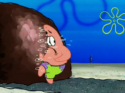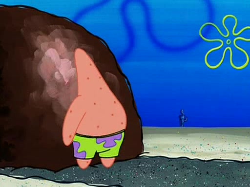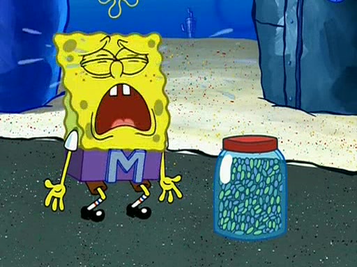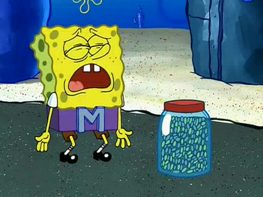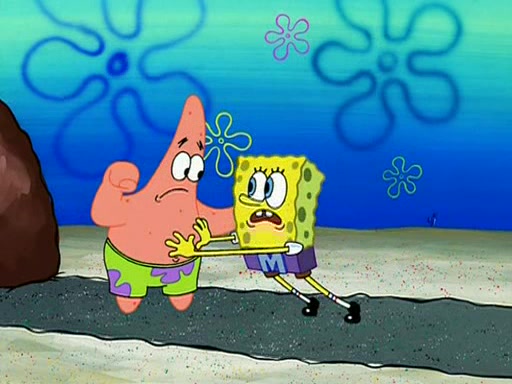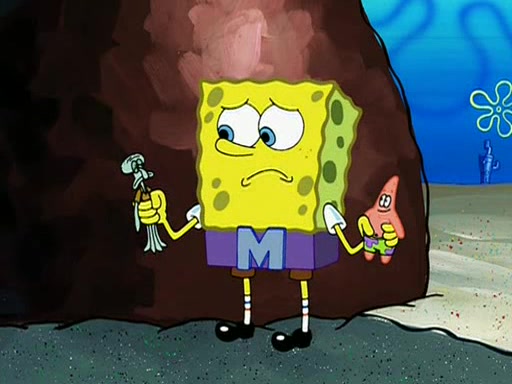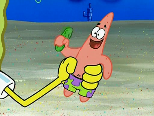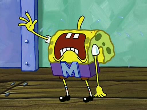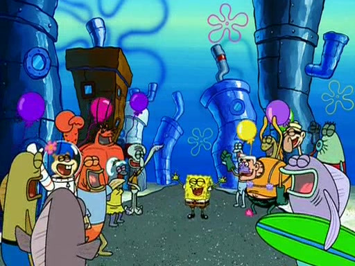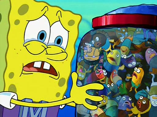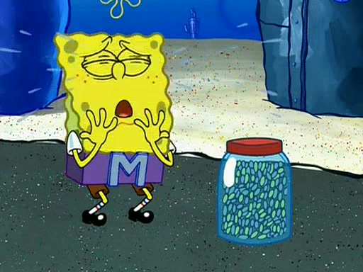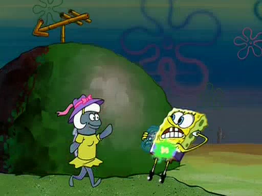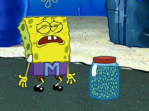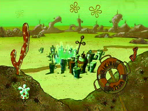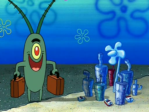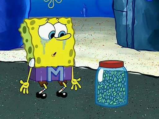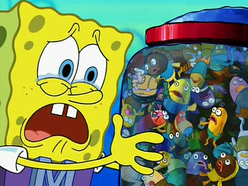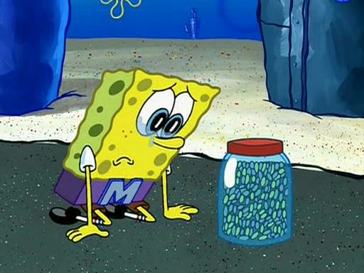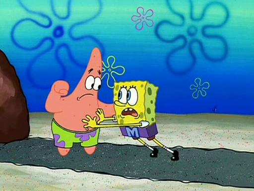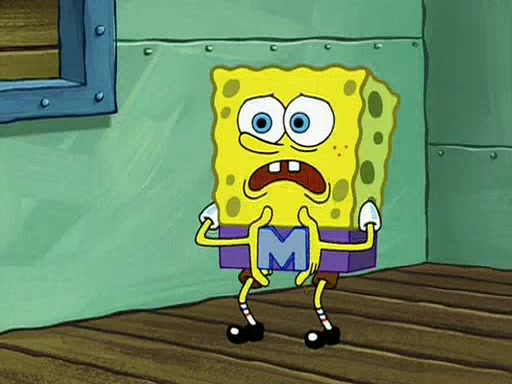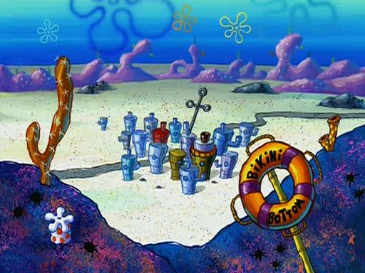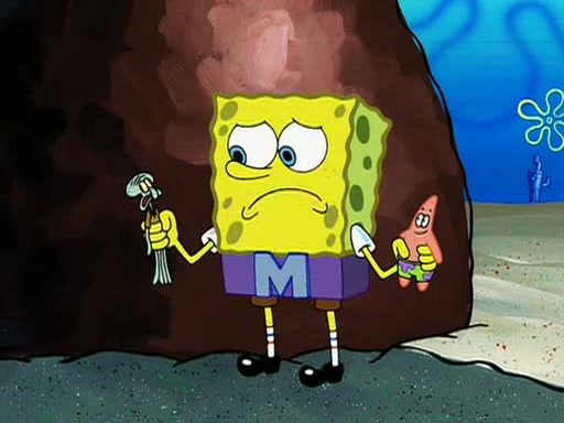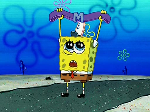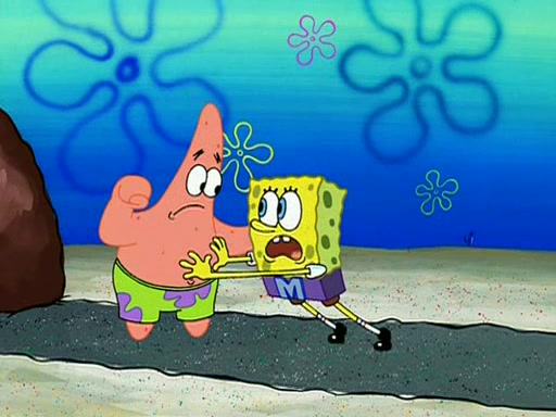 SpongeBob goes to Patrick for help, and Patrick mistakes Squidward for a "Squidward Action Figure" and starts playing with him, even after realizing that it is the real Squidward. Patrick then suggests to turn the "M" upside down, setting the belt to W for "Wumbo." SpongeBob questions the validity of this, but after Patrick responds by stating the many uses of "Wumbo," SpongeBob is convinced and tests it out, but then accidentally shrinks Patrick. Seconds later, citizens start coming and greeting to SpongeBob, making him shrink them so that they can't tell Mermaid Man. Eventually, SpongeBob has shrunken everyone (including his mother) in Bikini Bottom, and stuffs them into a jar. He then realizes that he has shrunken Mermaid Man and Barnacle Boy as well, and he asks them how to "unshrink" objects. Mermaid Man asks him if he has tried setting it to Wumbo, and upon realizing that he does not know how to unshrink them either, the people except for Mermaid Man and Barnacle Boy form a mob and get out of the jar. They go inside of SpongeBob's body and beat him up. This continues for a while until eventually everyone says that everything is too big. This gives SpongeBob the idea to shrink Bikini Bottom itself, which satisfies the people, who see no discernible difference from their previous lives in living in a miniature Bikini Bottom. Finally, SpongeBob shrinks himself, and the tiny city begins celebrating. The closing scene shows Plankton getting off a bus, returning to Bikini Bottom from a vacation. He is surprised to see that he is now taller than Bikini Bottom.