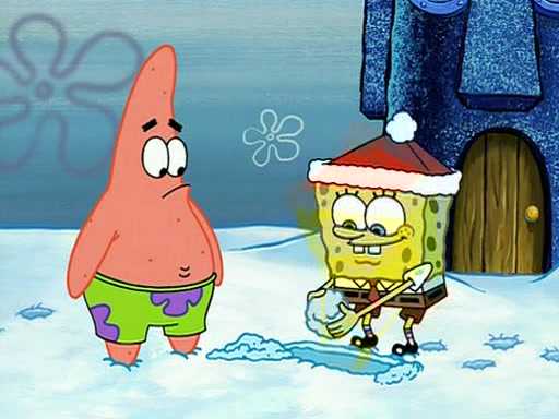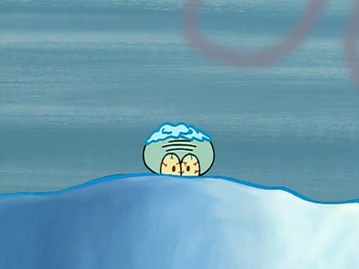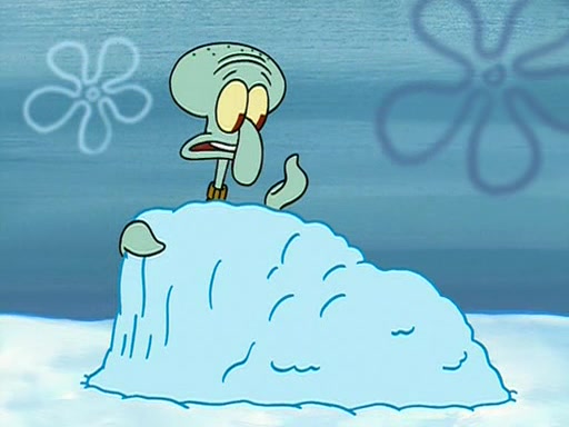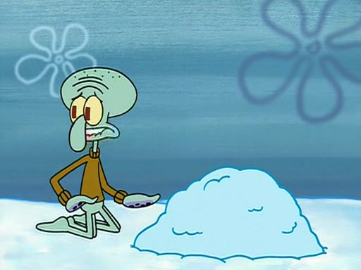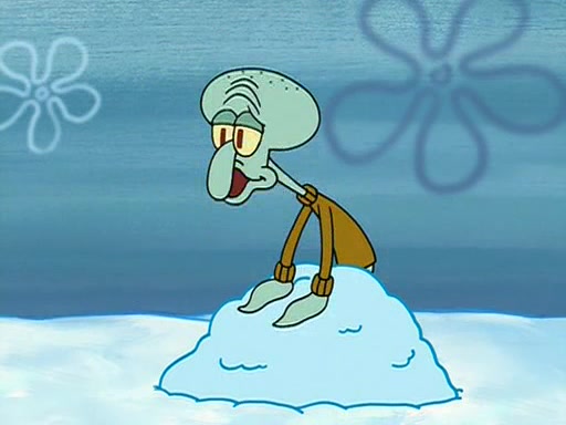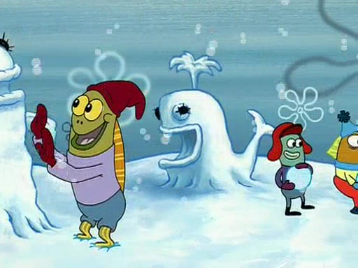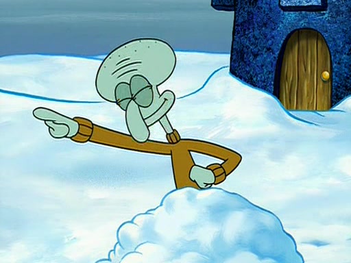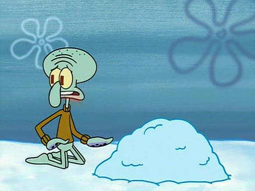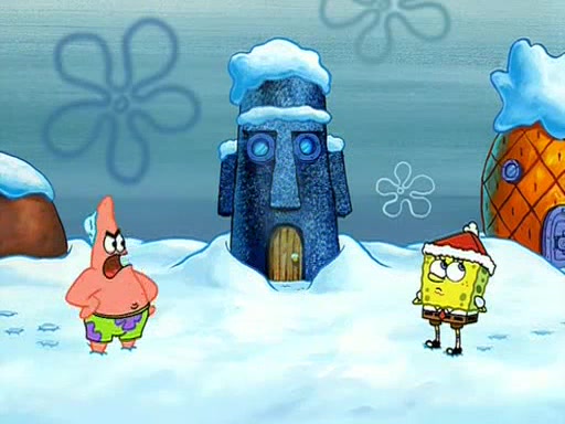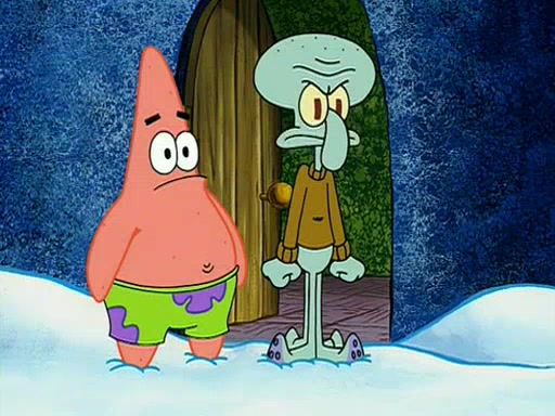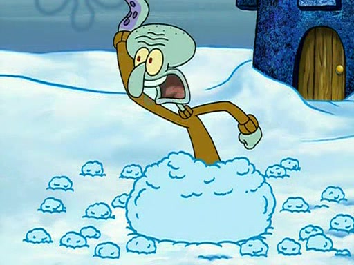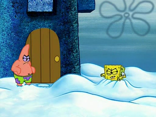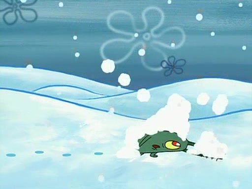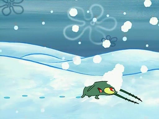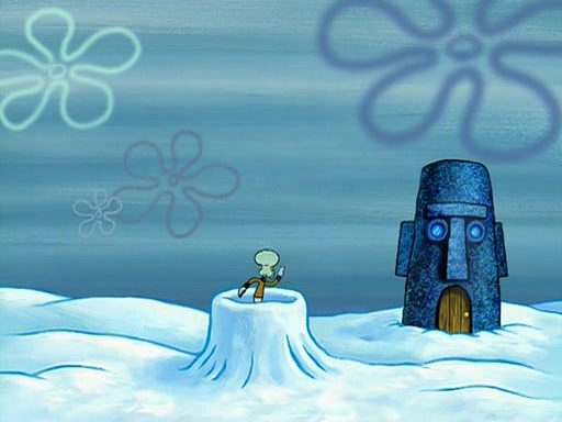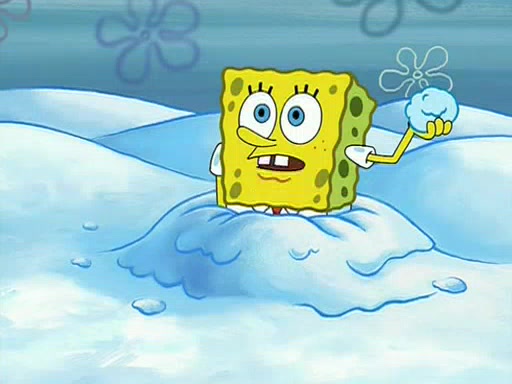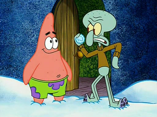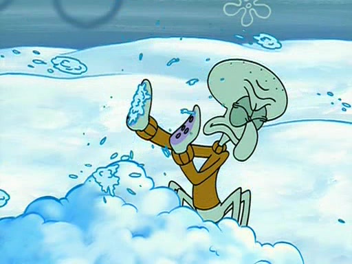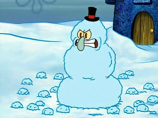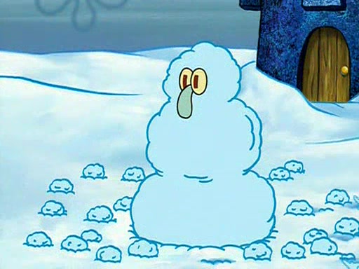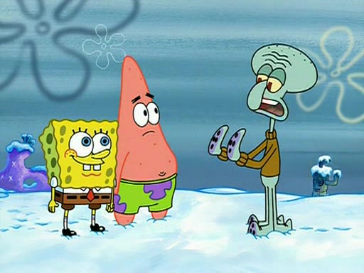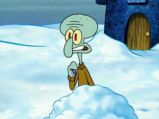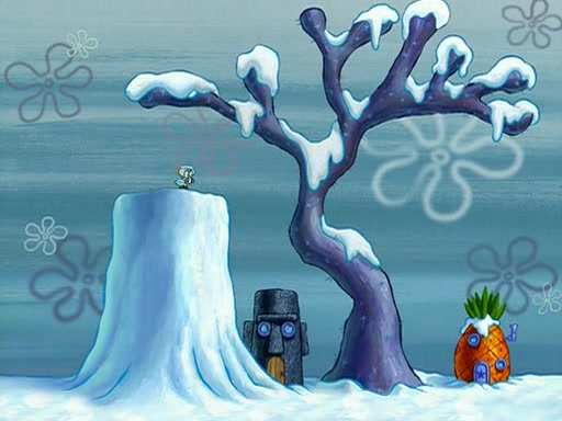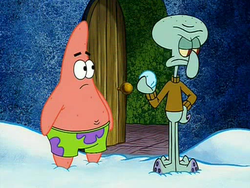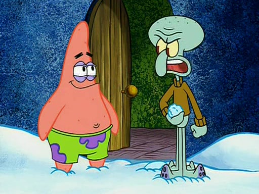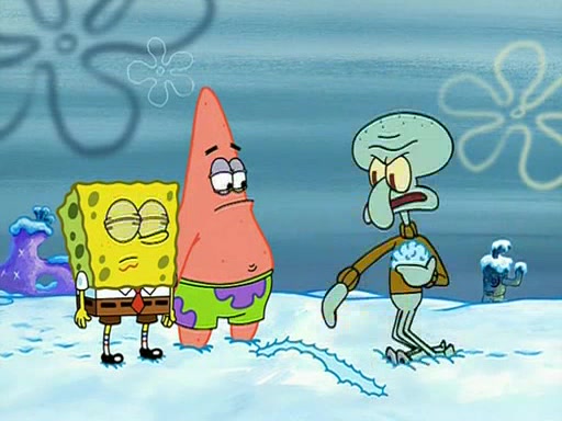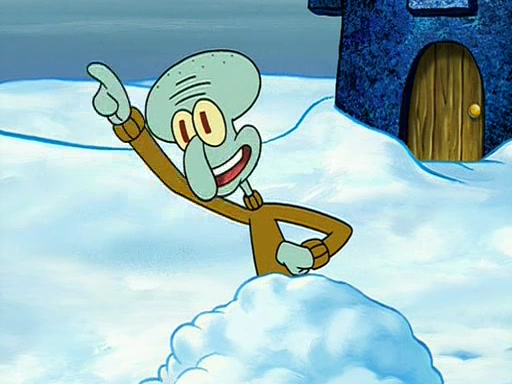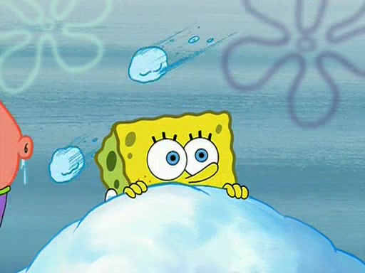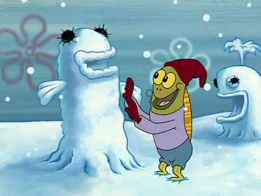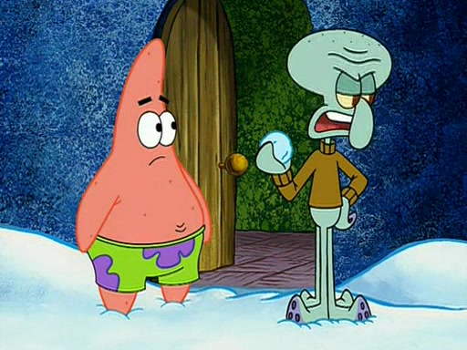 An iceberg travels across the surface of the ocean and stops over Bikini Bottom, causing it to snow underwater. Everyone is having fun in the snow, and SpongeBob and Patrick decide to have a snowball fight. Meanwhile, Squidward is relaxing at home with a cup of tea. He hears the sounds of SpongeBob and Patrick's fighting and tells them to quiet down. They try to convince him to come out and play with them, both trying to get him on their own side, but Squidward shoots both of them down.