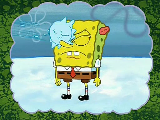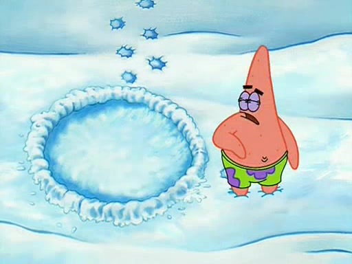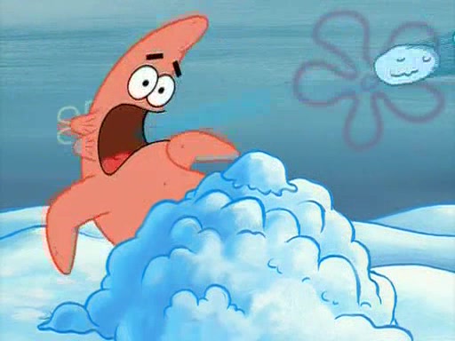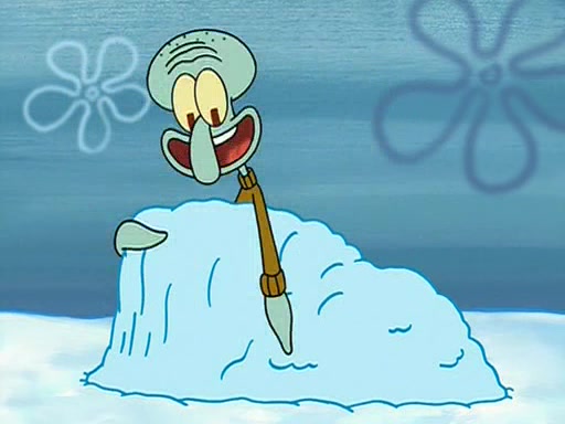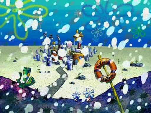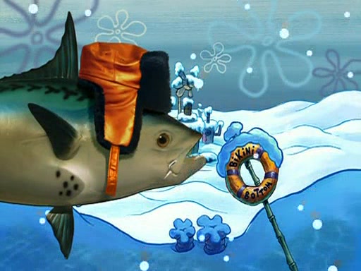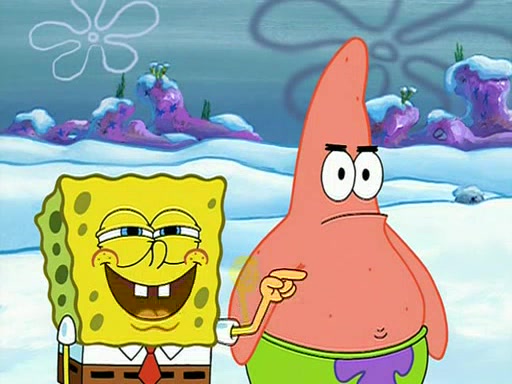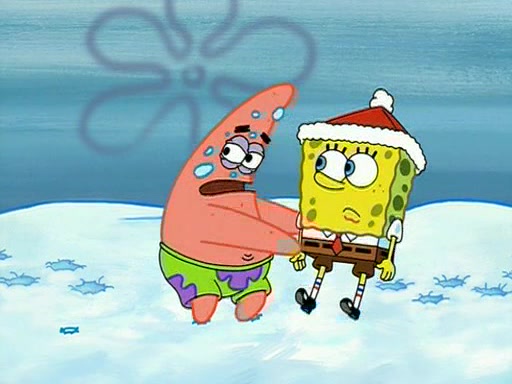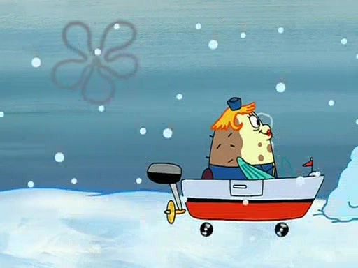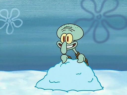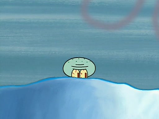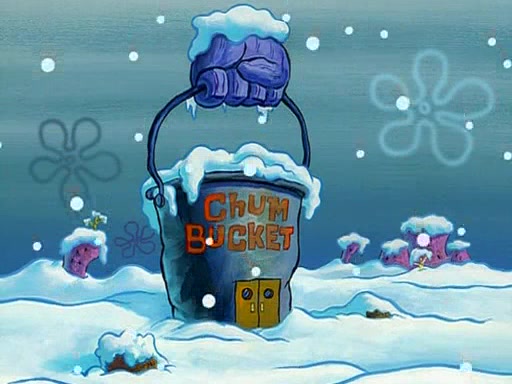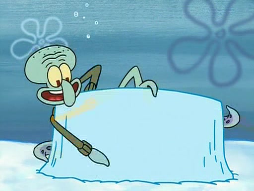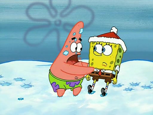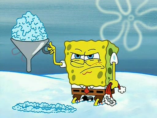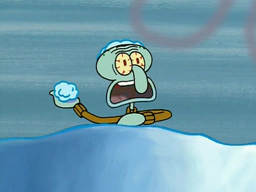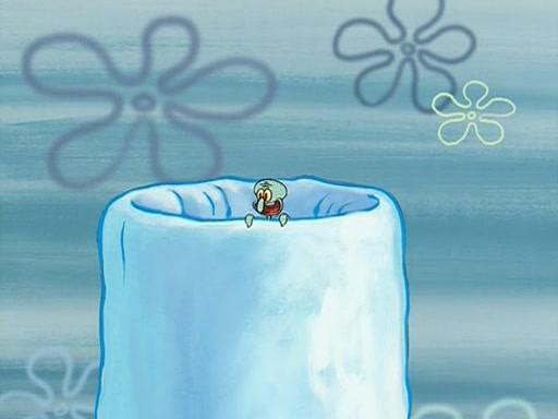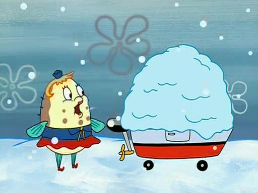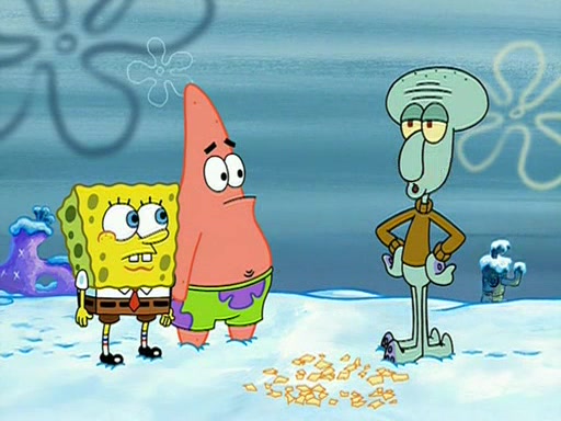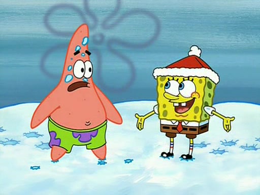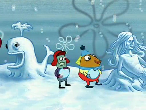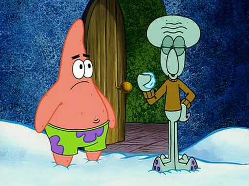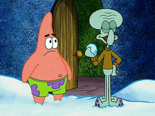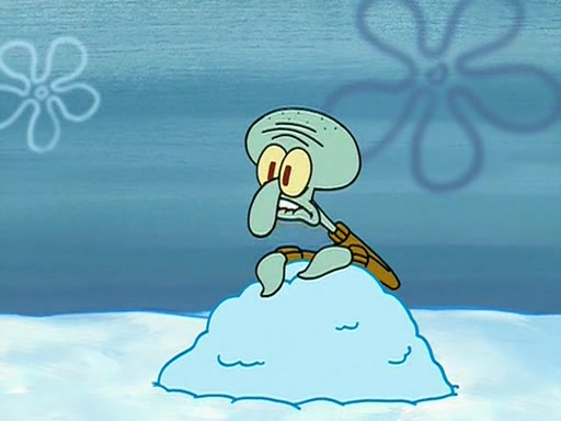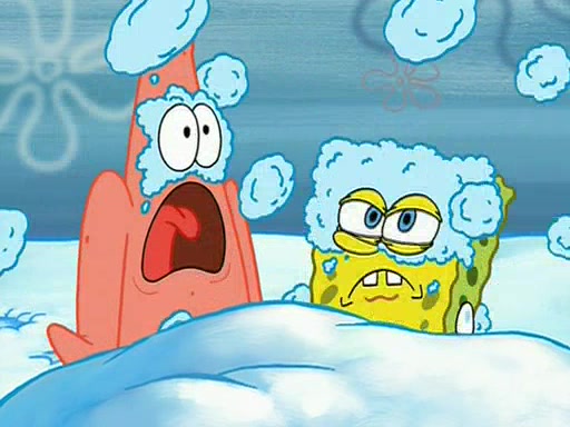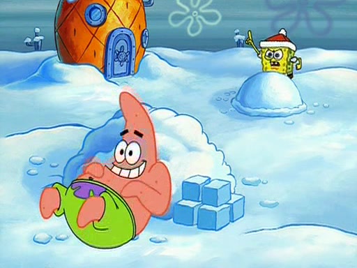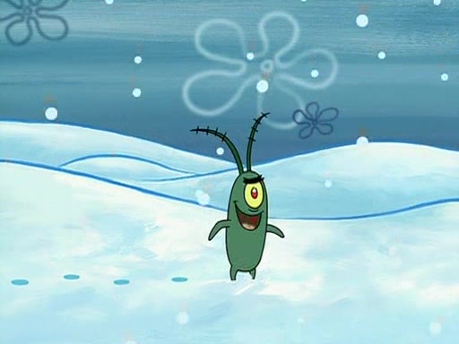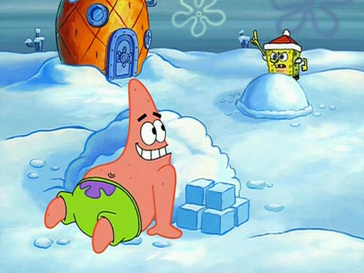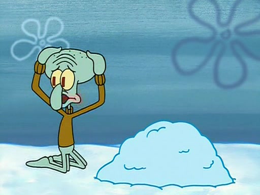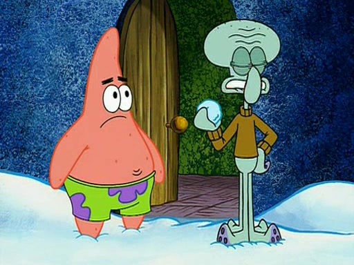 An iceberg travels across the surface of the ocean and stops over Bikini Bottom, causing it to snow underwater. Everyone is having fun in the snow, and SpongeBob and Patrick decide to have a snowball fight. Meanwhile, Squidward is relaxing at home with a cup of tea. He hears the sounds of SpongeBob and Patrick's fighting and tells them to quiet down. They try to convince him to come out and play with them, both trying to get him on their own side, but Squidward shoots both of them down.