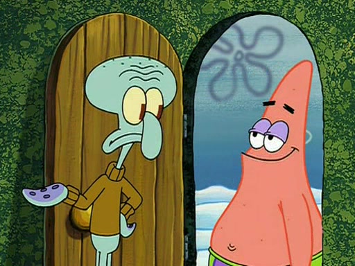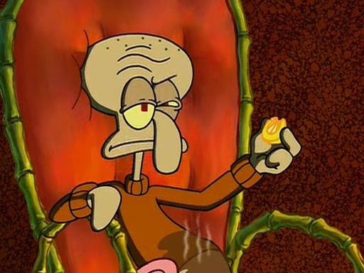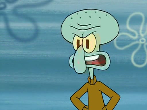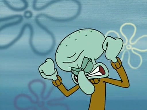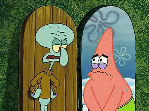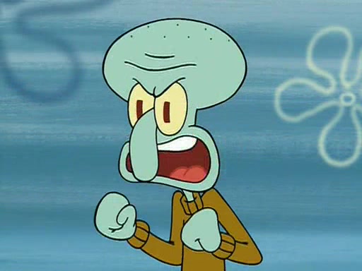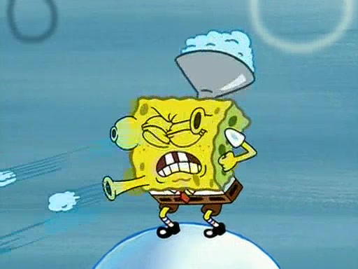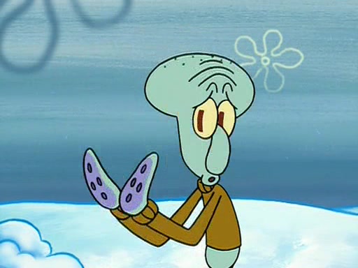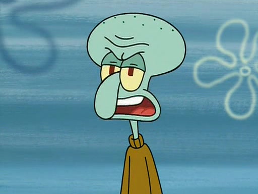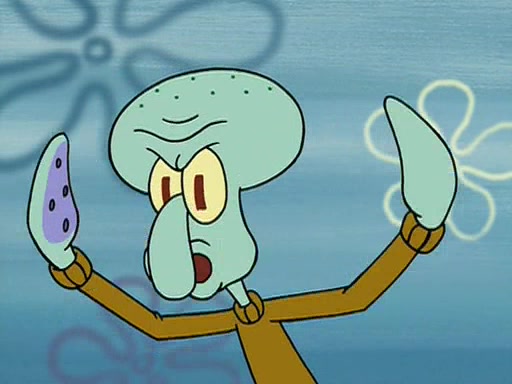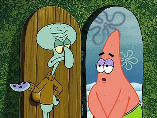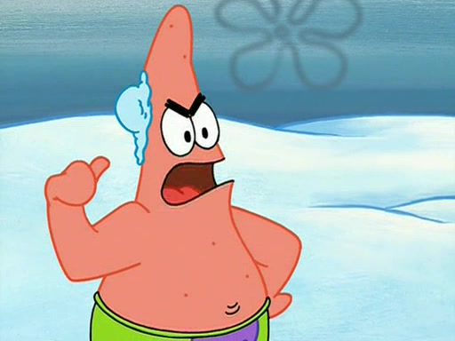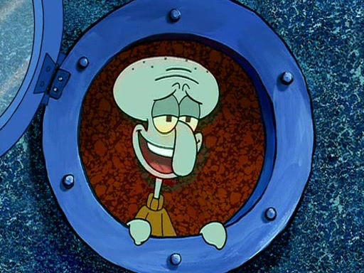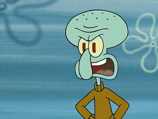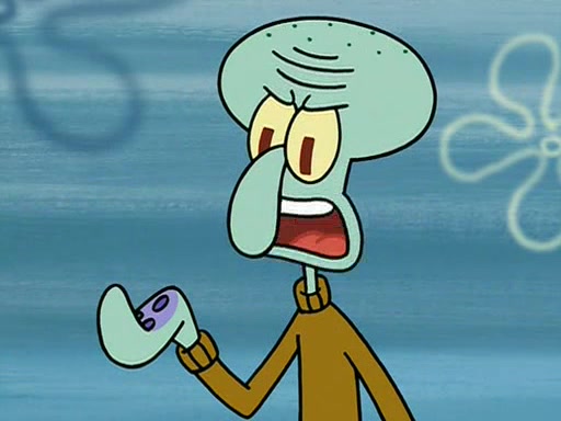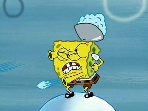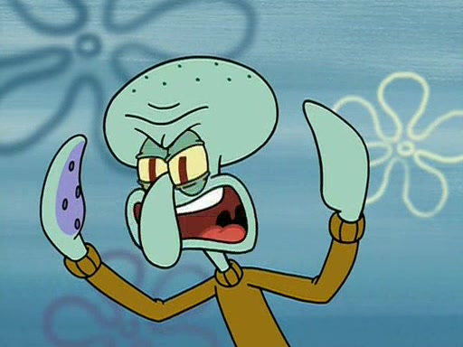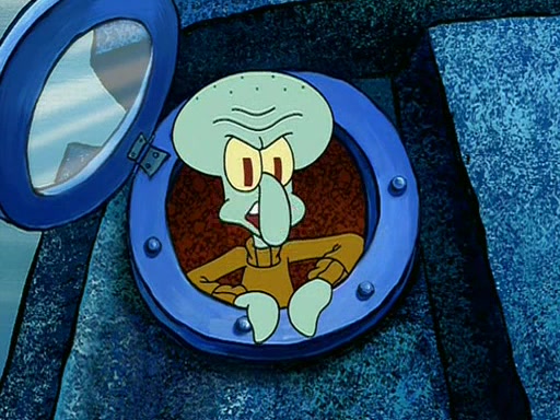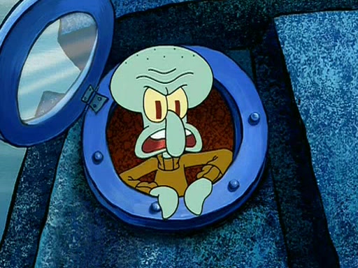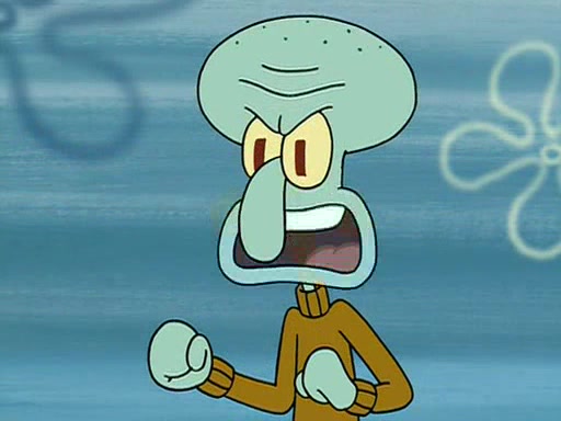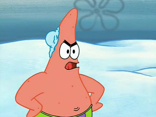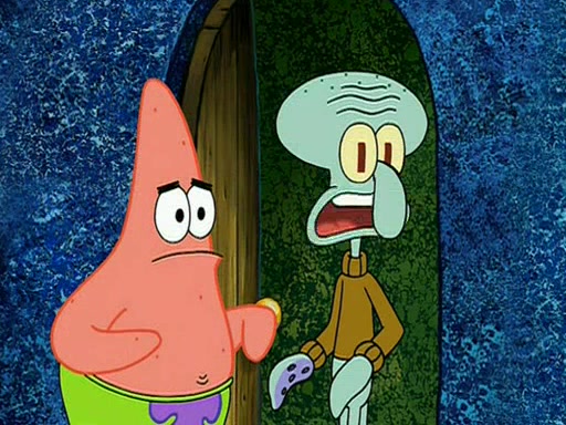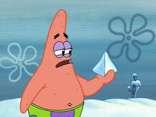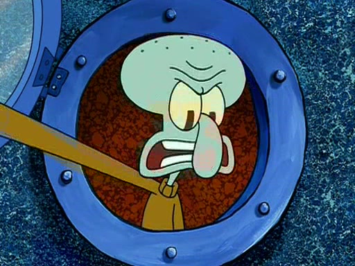 Squidward decides that, as entertainment, he will watch them fight, hoping they will get hurt. SpongeBob and Patrick realize that snowball fights are for children, and they sign a peace treaty. Squidward tries to convince them to continue, but repeatedly gets hit with a snowball by Patrick. He then decides to throw a snowball and misses. SpongeBob and Patrick then proceed to duck behind their fort and mercilessly begin to pelt Squidward with snowballs. A frustrated Squidward then proceeds to throw a snowball and hits SpongeBob right in the face. He then becomes exhilarated and begins relentlessly pelting SpongeBob and Patrick with snowballs. After being hit by a snowball containing his clarinet, SpongeBob and Patrick decide that Squidward is taking the snowball fight far too seriously and sneak off.
