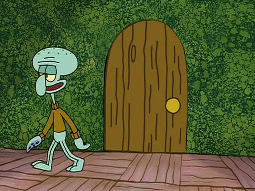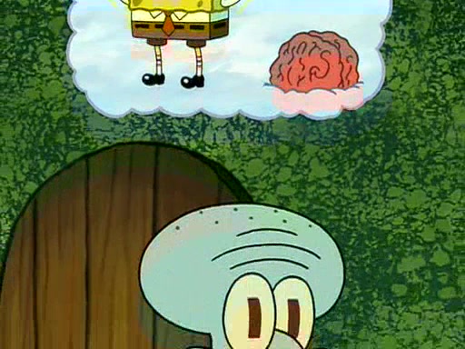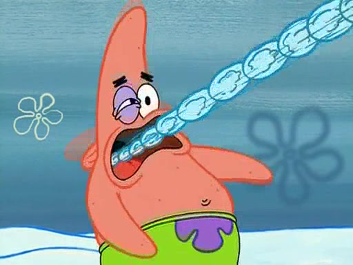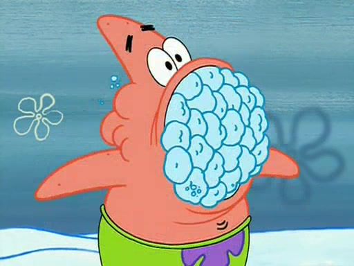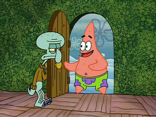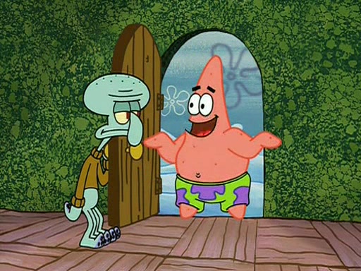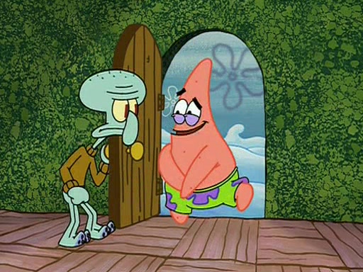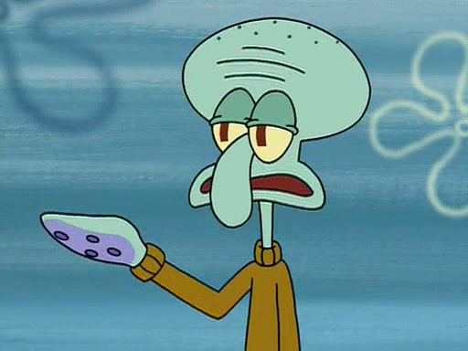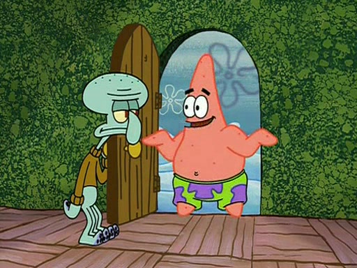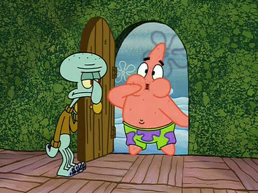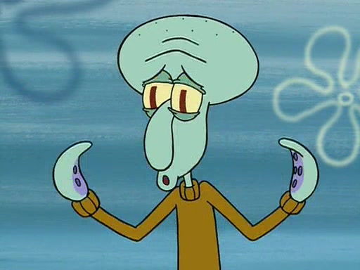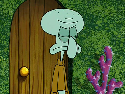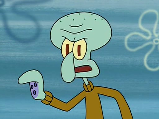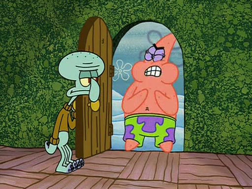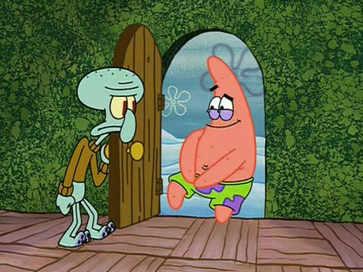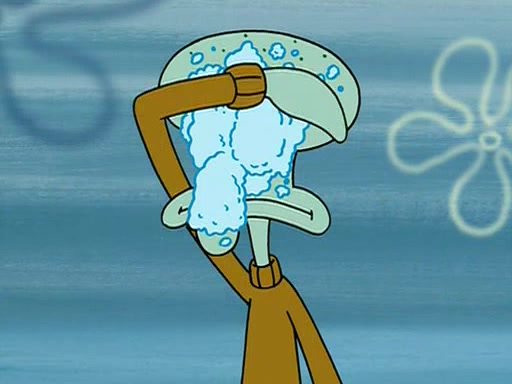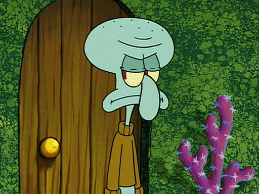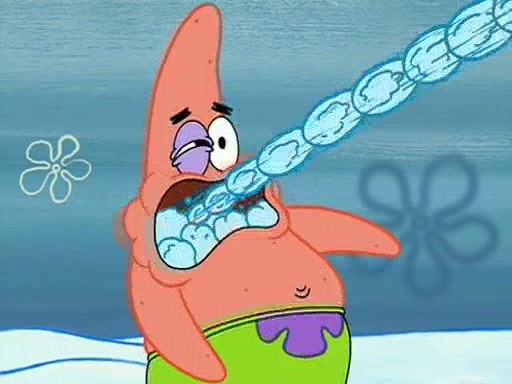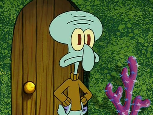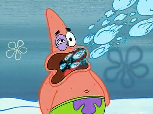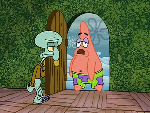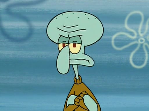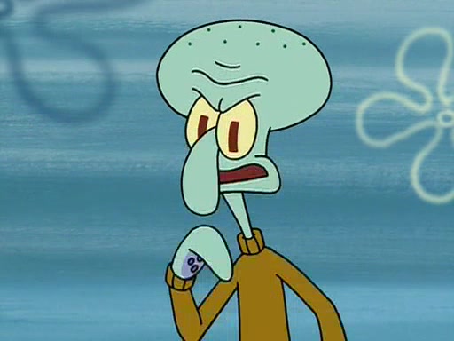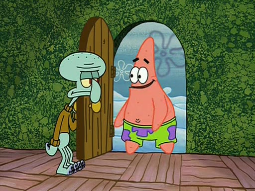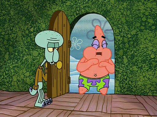 Squidward decides that, as entertainment, he will watch them fight, hoping they will get hurt. SpongeBob and Patrick realize that snowball fights are for children, and they sign a peace treaty. Squidward tries to convince them to continue, but repeatedly gets hit with a snowball by Patrick. He then decides to throw a snowball and misses. SpongeBob and Patrick then proceed to duck behind their fort and mercilessly begin to pelt Squidward with snowballs. A frustrated Squidward then proceeds to throw a snowball and hits SpongeBob right in the face. He then becomes exhilarated and begins relentlessly pelting SpongeBob and Patrick with snowballs. After being hit by a snowball containing his clarinet, SpongeBob and Patrick decide that Squidward is taking the snowball fight far too seriously and sneak off.
