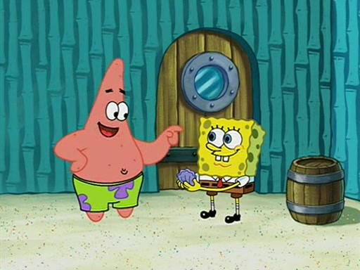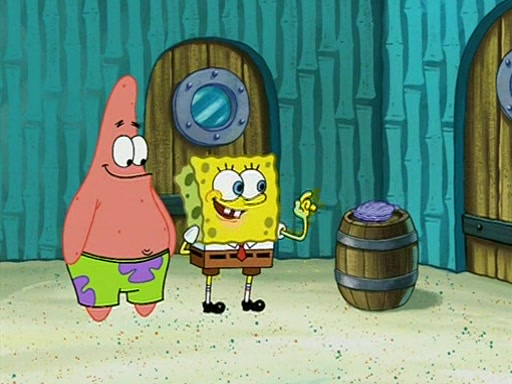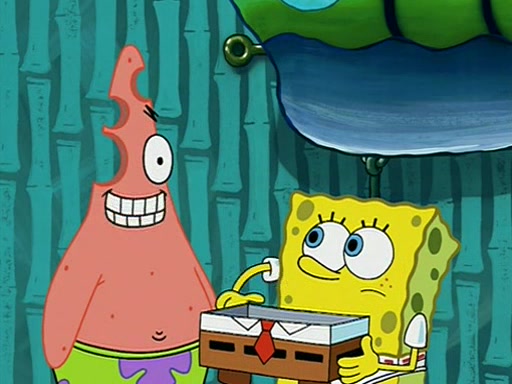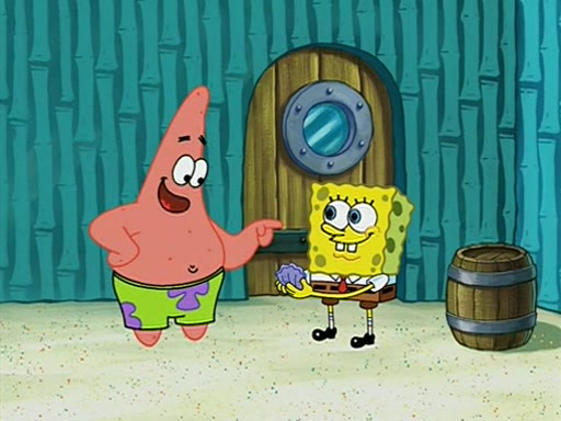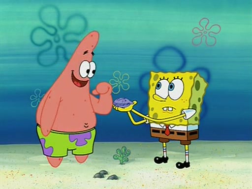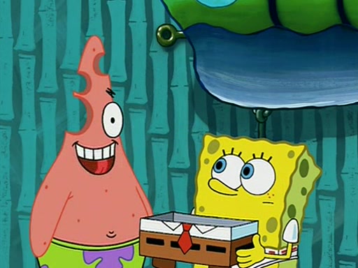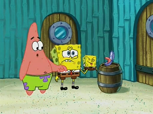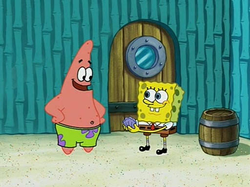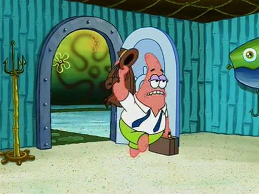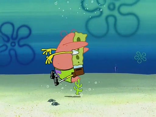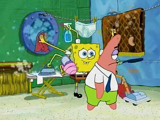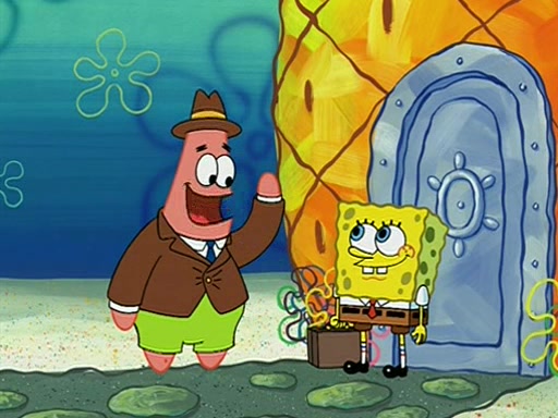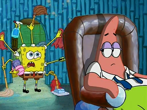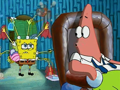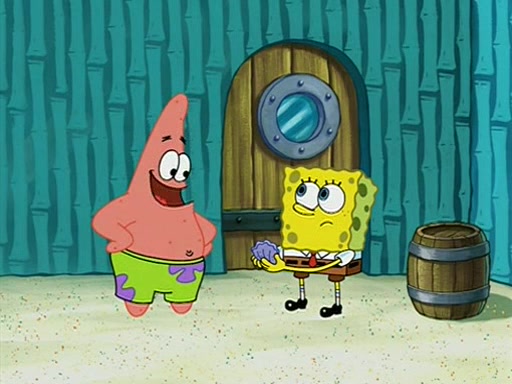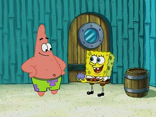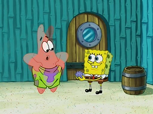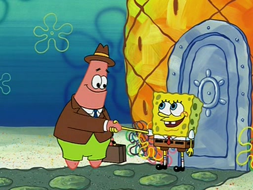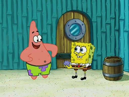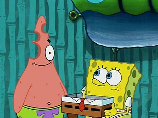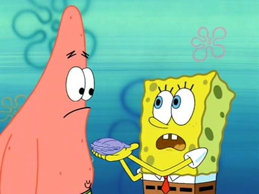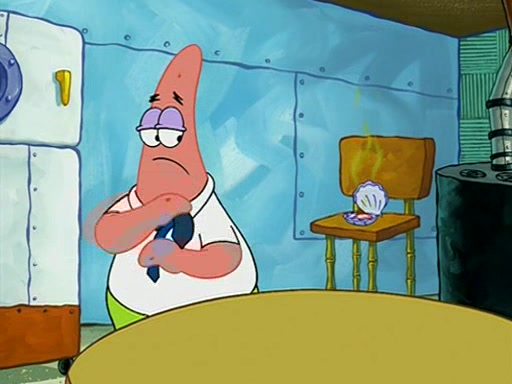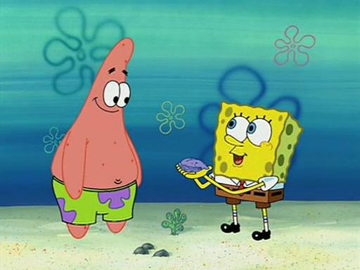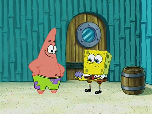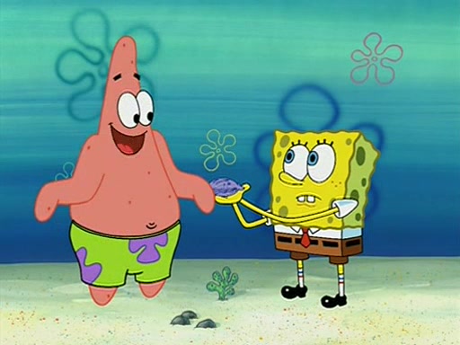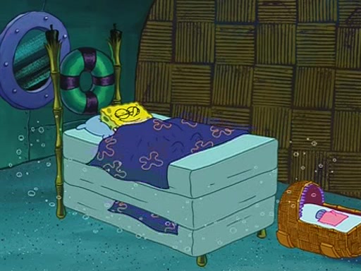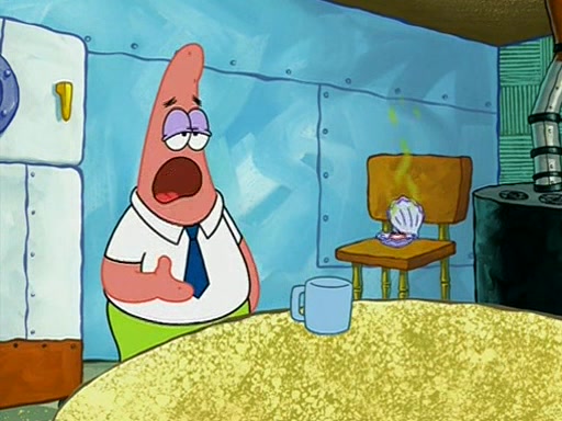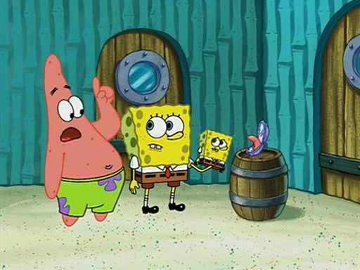 SpongeBob and Patrick are playing with the rubber bands from their newspapers. They then hear chirping and both say they didn't make the noise. They spot a baby scallop in a coral tree who was making the noise. They name him "Junior" and decide to adopt, with SpongeBob as the Mom and Patrick as the Dad. However, the next day Patrick eats breakfast and then explains that he has to go to work as he is the dad thus leaving SpongeBob to do all the house work. He promises to give SpongeBob a break when he gets home. He eventually returns home only to be exhausted from work, and then decides to sit on the chair and watch TV for the rest of the night. This goes on for several days until SpongeBob can't take it anymore. Eventually, SpongeBob angrily lashes out at Patrick. He then shows all the diapers that junior used. Patrick then realized the error of his ways and promised to come home at 6:00 and give SpongeBob the whole night off. However he returns at 12:00 Midnight from a party at work. SpongeBob isn't happy and follows Patrick only to find out that "work" consists of Patrick watching television under his rock. He explains that it isn't as easy at it seems; sometimes he has to move the antenna, sometimes he loses the remote, and sometimes he has an itchy butt. SpongeBob doesn't buy it and then opens up Patrick's briefcase and dumps ice cream and donuts all over Patrick. Patrick then reveals that he wasn't home by 6:00 as he decided to "work" overtime. Angered, SpongeBob yells "OVERTIME?!" Then the two begin to fight, until they see Junior jumping out a two story window. They try to catch him, but fail and begin crying for him, believing him to be no longer alive and proclaiming themselves "bad parents." However, then they realize that Junior's alive and well, and has learned to fly. After Junior kisses SpongeBob and flies away, Patrick asks "Hey! what about Daddy?" Junior drops a coconut on Patrick's head to get back at him for his laziness but still gives him a kiss, and he responds "That's my boy." After the parents say goodbye to their son, Patrick says "Let's have another," and SpongeBob makes a shocked face as the episode ends.