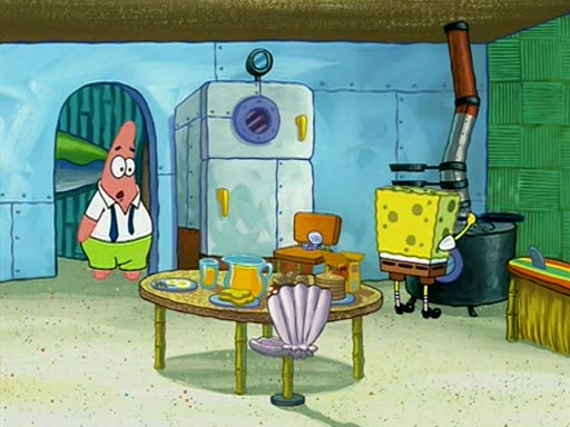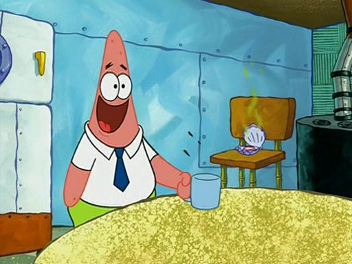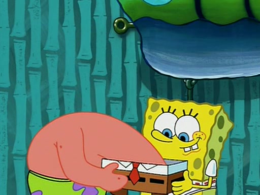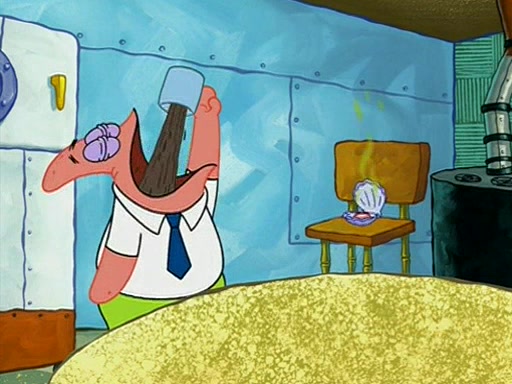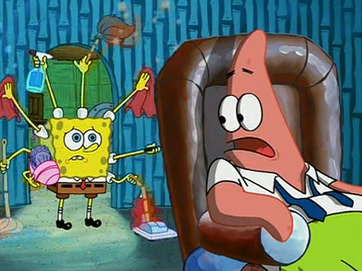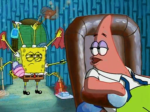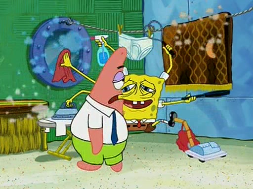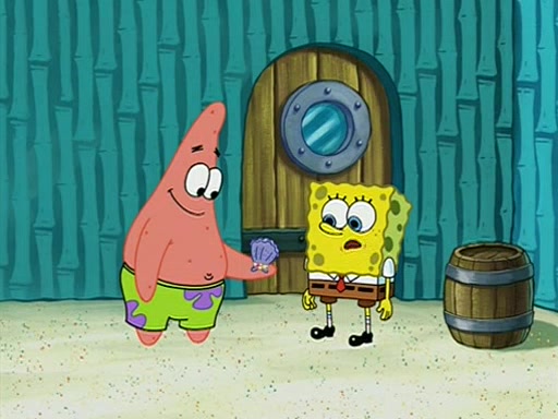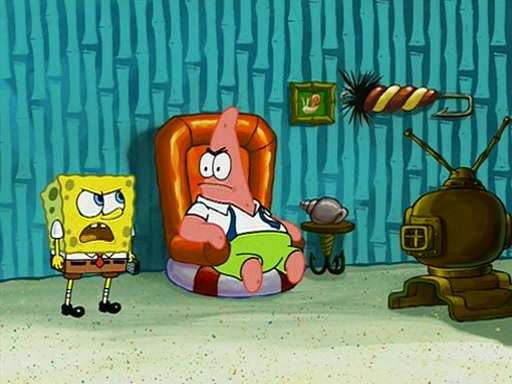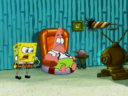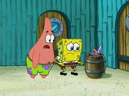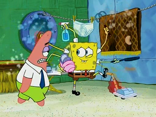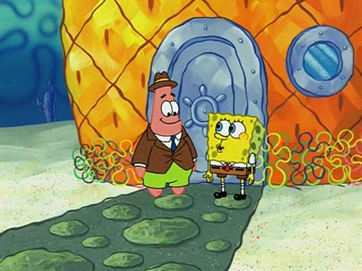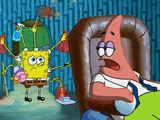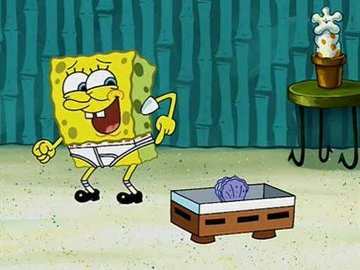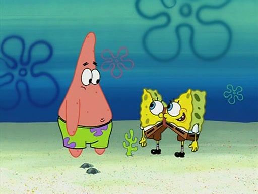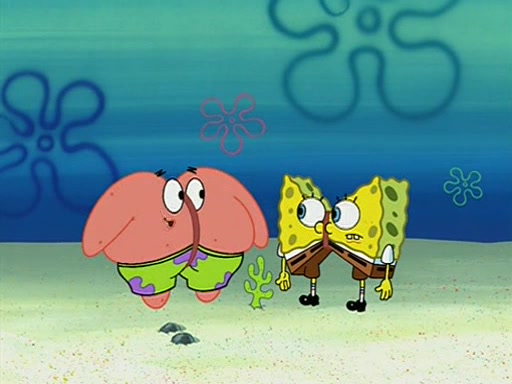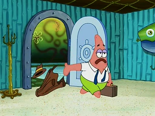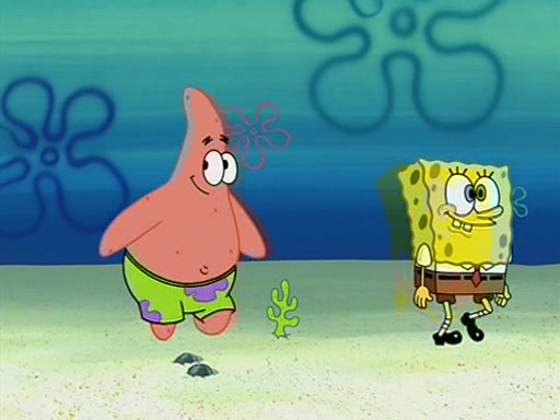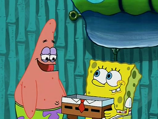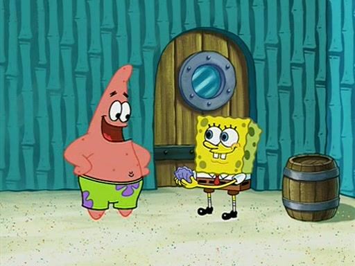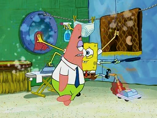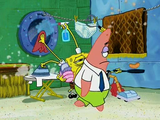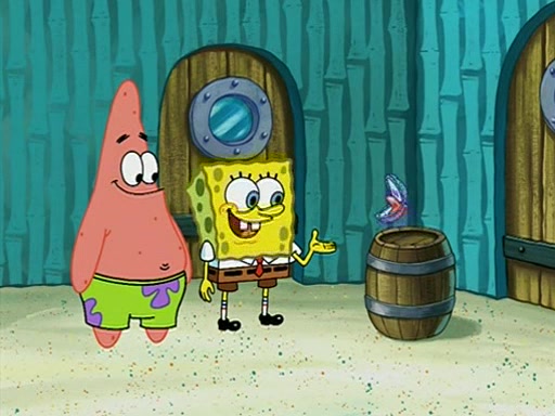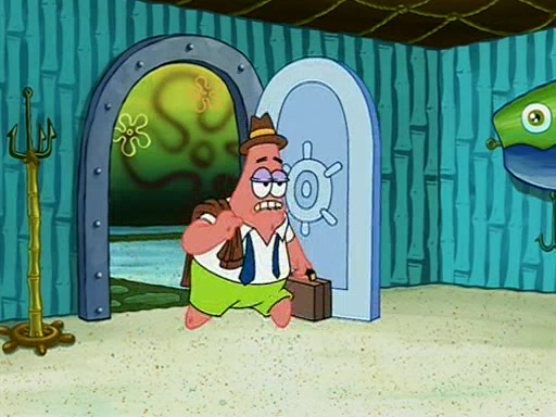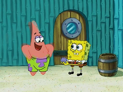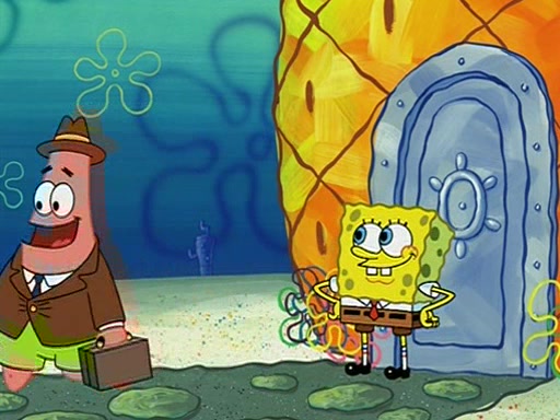 SpongeBob and Patrick are playing with the rubber bands from their newspapers. They then hear chirping and both say they didn't make the noise. They spot a baby scallop in a coral tree who was making the noise. They name him "Junior" and decide to adopt, with SpongeBob as the Mom and Patrick as the Dad. However, the next day Patrick eats breakfast and then explains that he has to go to work as he is the dad thus leaving SpongeBob to do all the house work. He promises to give SpongeBob a break when he gets home. He eventually returns home only to be exhausted from work, and then decides to sit on the chair and watch TV for the rest of the night. This goes on for several days until SpongeBob can't take it anymore. Eventually, SpongeBob angrily lashes out at Patrick. He then shows all the diapers that junior used. Patrick then realized the error of his ways and promised to come home at 6:00 and give SpongeBob the whole night off. However he returns at 12:00 Midnight from a party at work. SpongeBob isn't happy and follows Patrick only to find out that "work" consists of Patrick watching television under his rock. He explains that it isn't as easy at it seems; sometimes he has to move the antenna, sometimes he loses the remote, and sometimes he has an itchy butt. SpongeBob doesn't buy it and then opens up Patrick's briefcase and dumps ice cream and donuts all over Patrick. Patrick then reveals that he wasn't home by 6:00 as he decided to "work" overtime. Angered, SpongeBob yells "OVERTIME?!" Then the two begin to fight, until they see Junior jumping out a two story window. They try to catch him, but fail and begin crying for him, believing him to be no longer alive and proclaiming themselves "bad parents." However, then they realize that Junior's alive and well, and has learned to fly. After Junior kisses SpongeBob and flies away, Patrick asks "Hey! what about Daddy?" Junior drops a coconut on Patrick's head to get back at him for his laziness but still gives him a kiss, and he responds "That's my boy." After the parents say goodbye to their son, Patrick says "Let's have another," and SpongeBob makes a shocked face as the episode ends.
