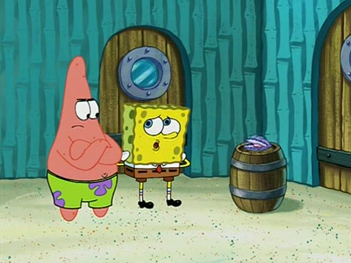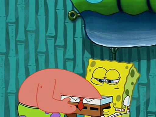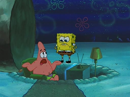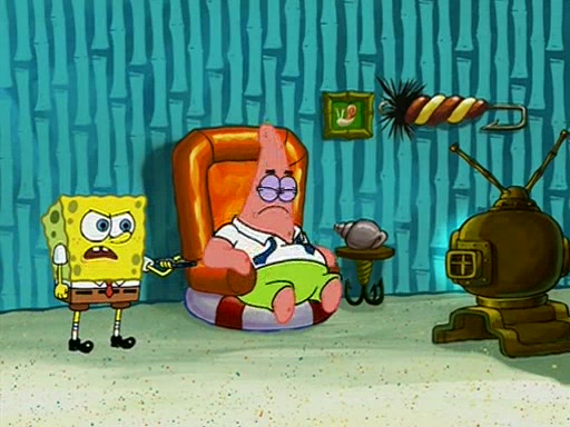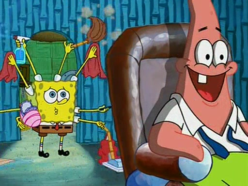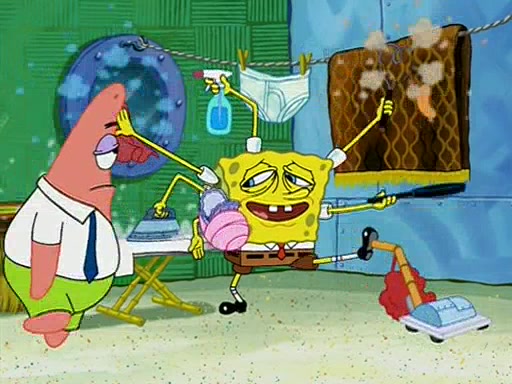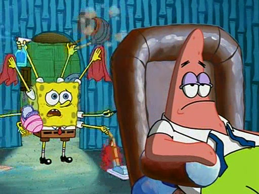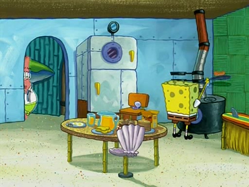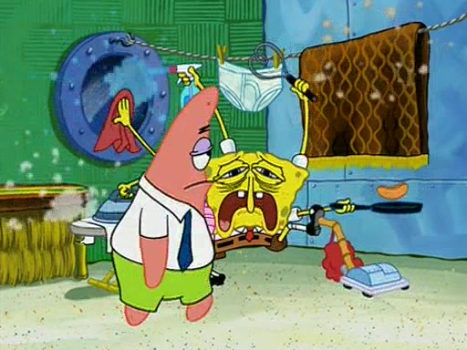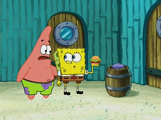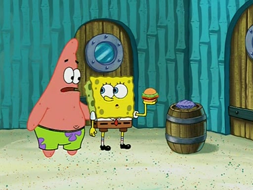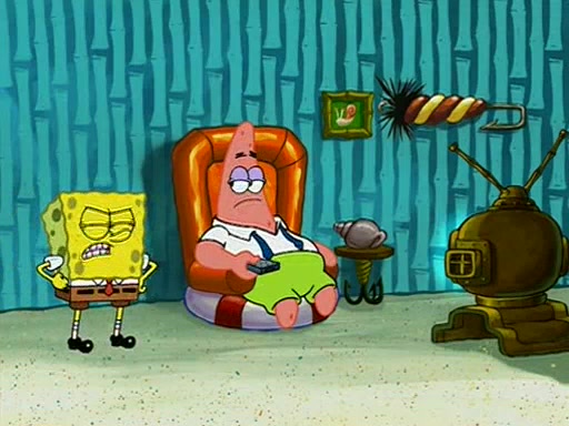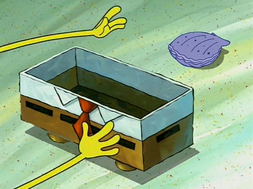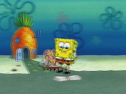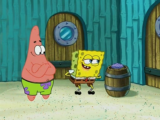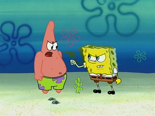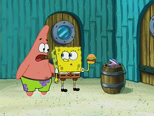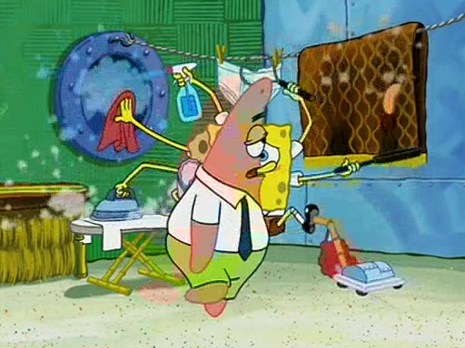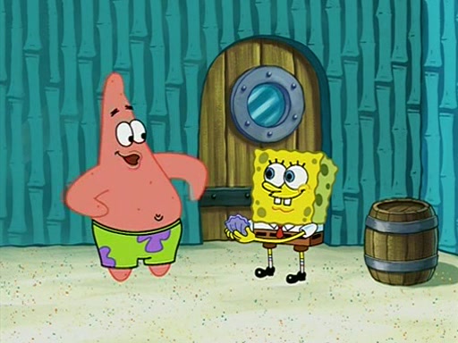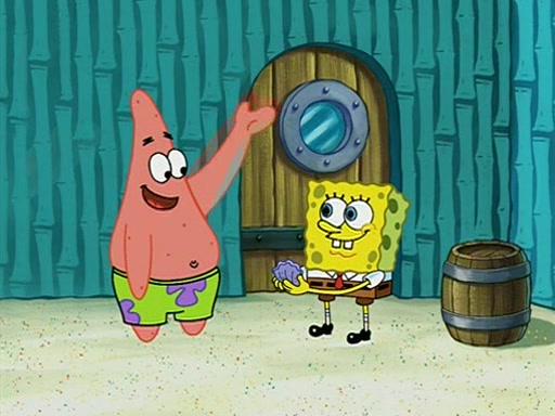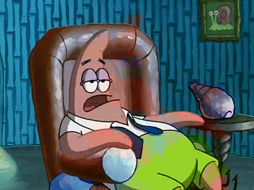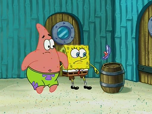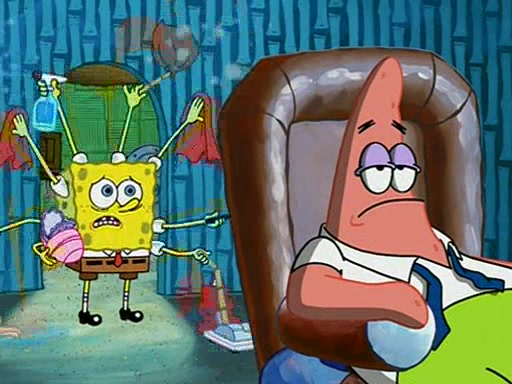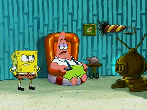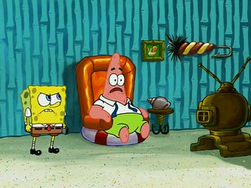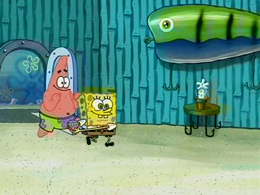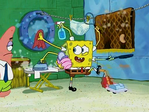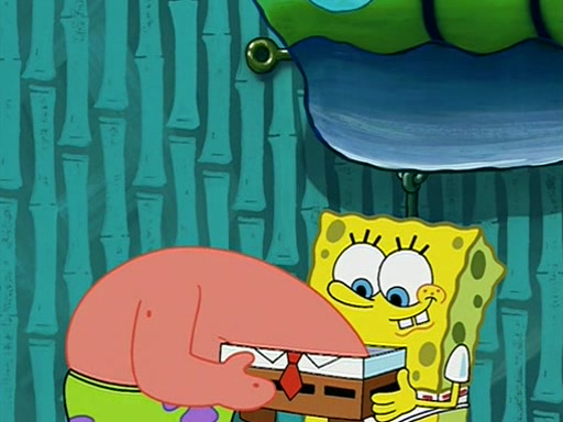 SpongeBob and Patrick are playing with the rubber bands from their newspapers. They then hear chirping and both say they didn't make the noise. They spot a baby scallop in a coral tree who was making the noise. They name him "Junior" and decide to adopt, with SpongeBob as the Mom and Patrick as the Dad. However, the next day Patrick eats breakfast and then explains that he has to go to work as he is the dad thus leaving SpongeBob to do all the house work. He promises to give SpongeBob a break when he gets home. He eventually returns home only to be exhausted from work, and then decides to sit on the chair and watch TV for the rest of the night. This goes on for several days until SpongeBob can't take it anymore. Eventually, SpongeBob angrily lashes out at Patrick. He then shows all the diapers that junior used. Patrick then realized the error of his ways and promised to come home at 6:00 and give SpongeBob the whole night off. However he returns at 12:00 Midnight from a party at work. SpongeBob isn't happy and follows Patrick only to find out that "work" consists of Patrick watching television under his rock. He explains that it isn't as easy at it seems; sometimes he has to move the antenna, sometimes he loses the remote, and sometimes he has an itchy butt. SpongeBob doesn't buy it and then opens up Patrick's briefcase and dumps ice cream and donuts all over Patrick. Patrick then reveals that he wasn't home by 6:00 as he decided to "work" overtime. Angered, SpongeBob yells "OVERTIME?!" Then the two begin to fight, until they see Junior jumping out a two story window. They try to catch him, but fail and begin crying for him, believing him to be no longer alive and proclaiming themselves "bad parents." However, then they realize that Junior's alive and well, and has learned to fly. After Junior kisses SpongeBob and flies away, Patrick asks "Hey! what about Daddy?" Junior drops a coconut on Patrick's head to get back at him for his laziness but still gives him a kiss, and he responds "That's my boy." After the parents say goodbye to their son, Patrick says "Let's have another," and SpongeBob makes a shocked face as the episode ends.