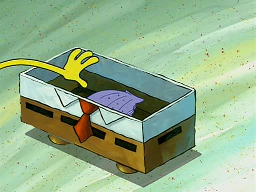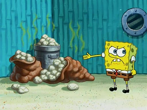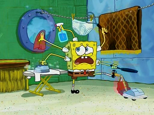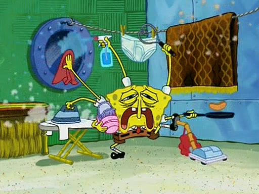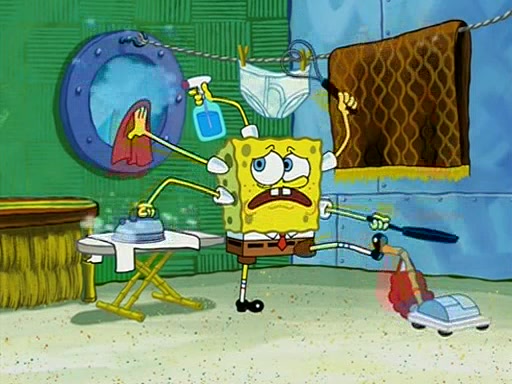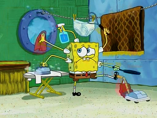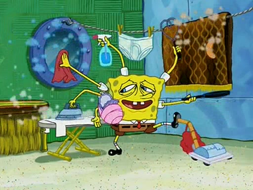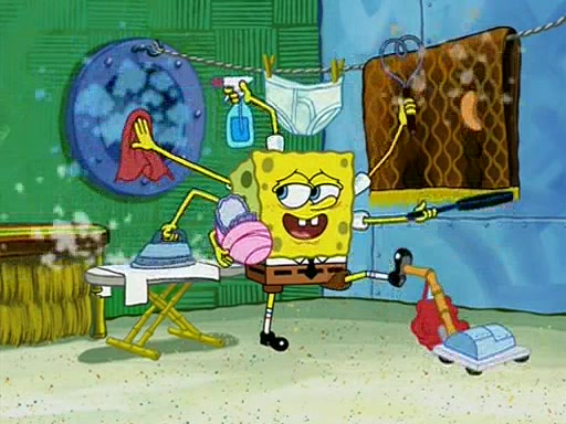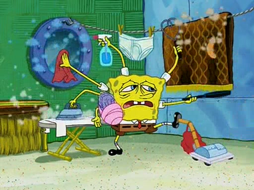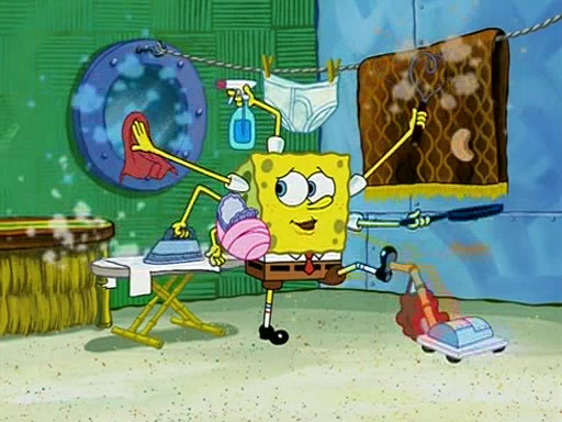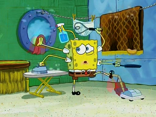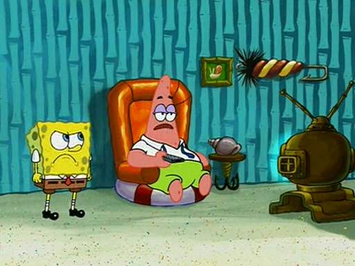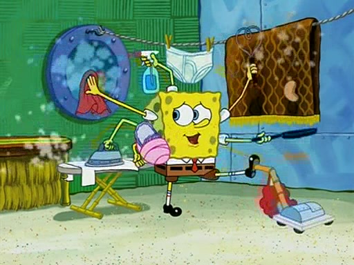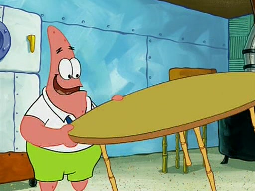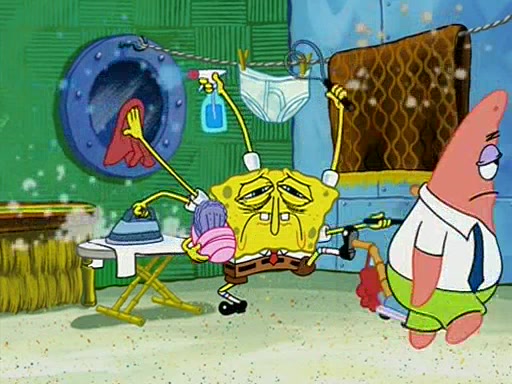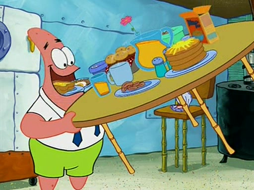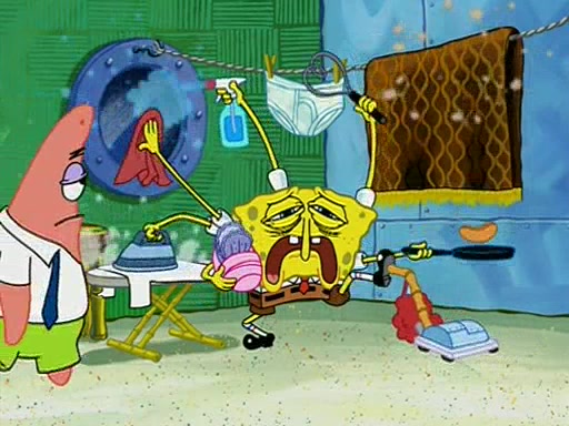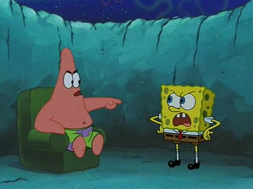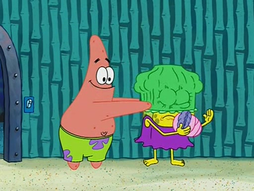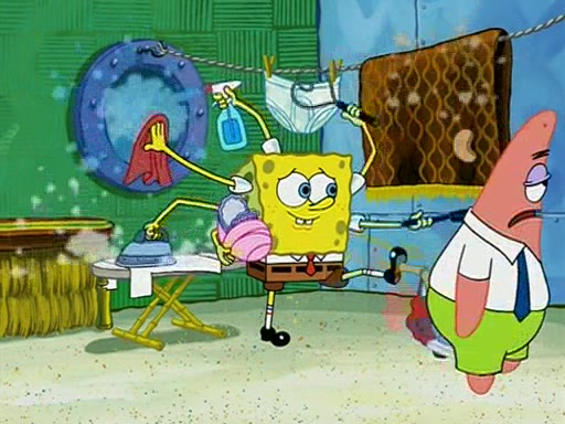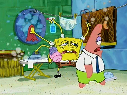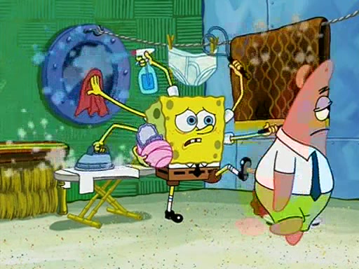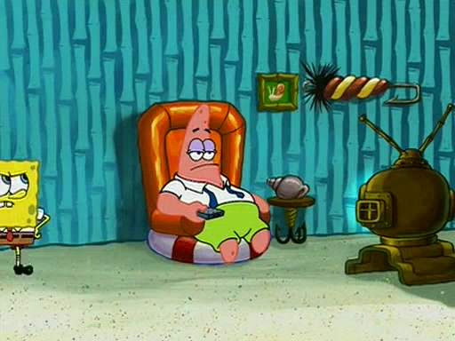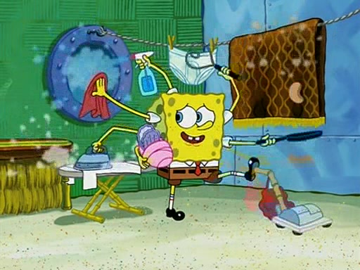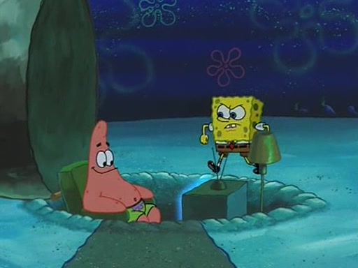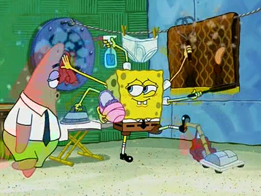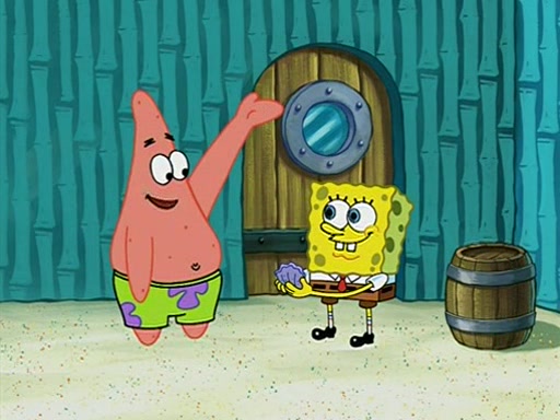 SpongeBob and Patrick are playing with the rubber bands from their newspapers. They then hear chirping and both say they didn't make the noise. They spot a baby scallop in a coral tree who was making the noise. They name him "Junior" and decide to adopt, with SpongeBob as the Mom and Patrick as the Dad. However, the next day Patrick eats breakfast and then explains that he has to go to work as he is the dad thus leaving SpongeBob to do all the house work. He promises to give SpongeBob a break when he gets home. He eventually returns home only to be exhausted from work, and then decides to sit on the chair and watch TV for the rest of the night. This goes on for several days until SpongeBob can't take it anymore. Eventually, SpongeBob angrily lashes out at Patrick. He then shows all the diapers that junior used. Patrick then realized the error of his ways and promised to come home at 6:00 and give SpongeBob the whole night off. However he returns at 12:00 Midnight from a party at work. SpongeBob isn't happy and follows Patrick only to find out that "work" consists of Patrick watching television under his rock. He explains that it isn't as easy at it seems; sometimes he has to move the antenna, sometimes he loses the remote, and sometimes he has an itchy butt. SpongeBob doesn't buy it and then opens up Patrick's briefcase and dumps ice cream and donuts all over Patrick. Patrick then reveals that he wasn't home by 6:00 as he decided to "work" overtime. Angered, SpongeBob yells "OVERTIME?!" Then the two begin to fight, until they see Junior jumping out a two story window. They try to catch him, but fail and begin crying for him, believing him to be no longer alive and proclaiming themselves "bad parents." However, then they realize that Junior's alive and well, and has learned to fly. After Junior kisses SpongeBob and flies away, Patrick asks "Hey! what about Daddy?" Junior drops a coconut on Patrick's head to get back at him for his laziness but still gives him a kiss, and he responds "That's my boy." After the parents say goodbye to their son, Patrick says "Let's have another," and SpongeBob makes a shocked face as the episode ends.