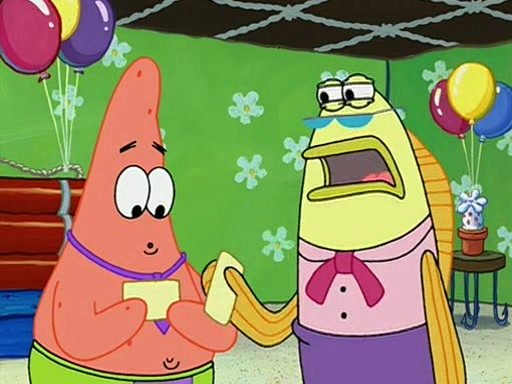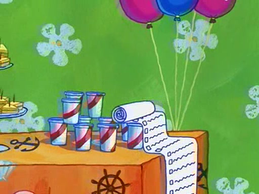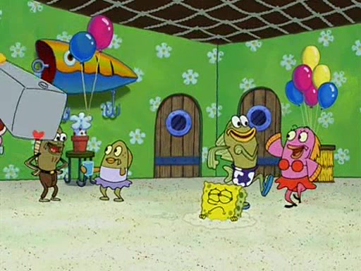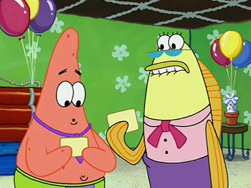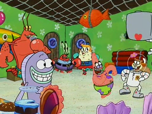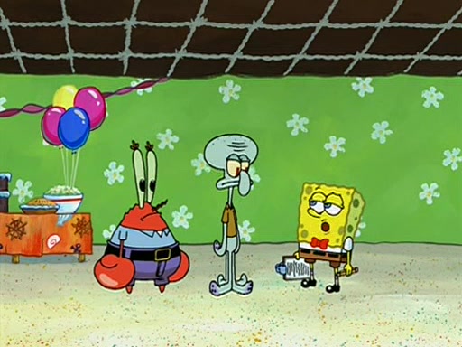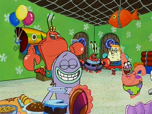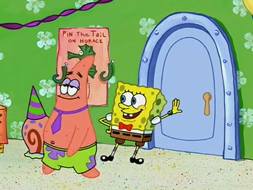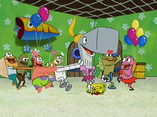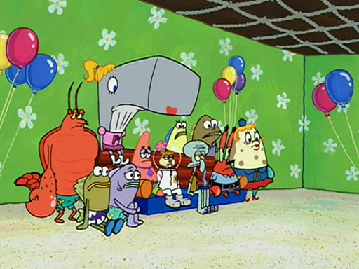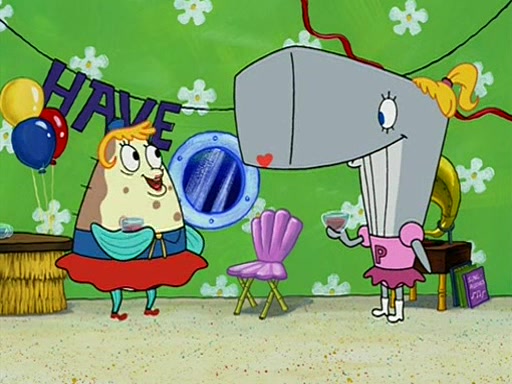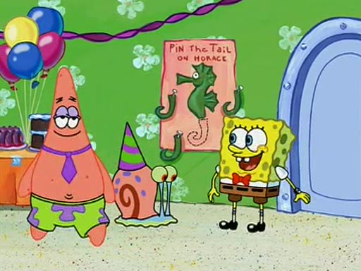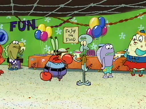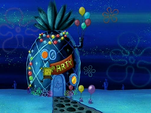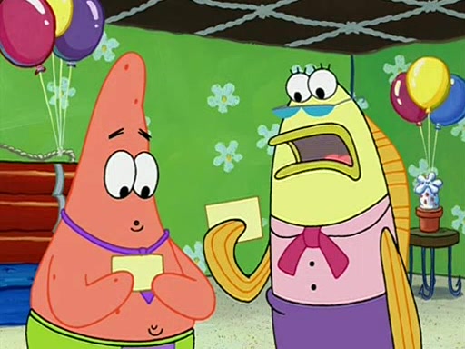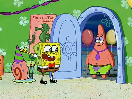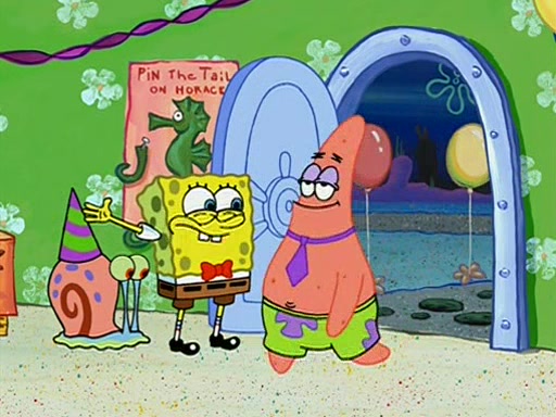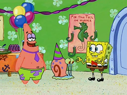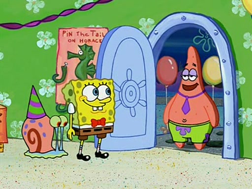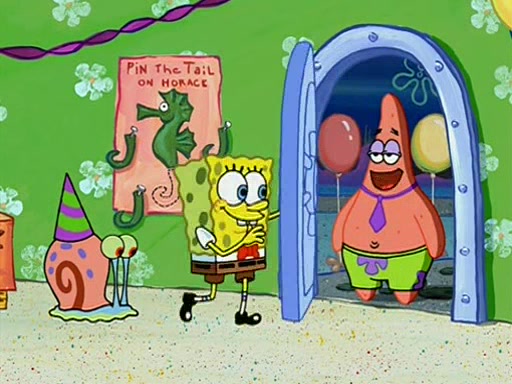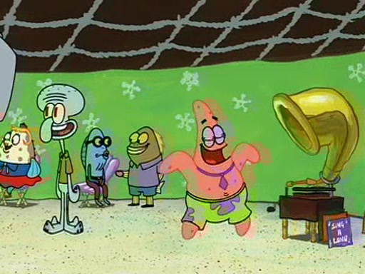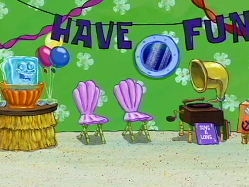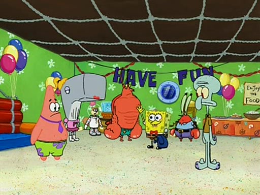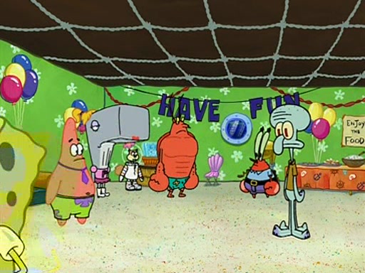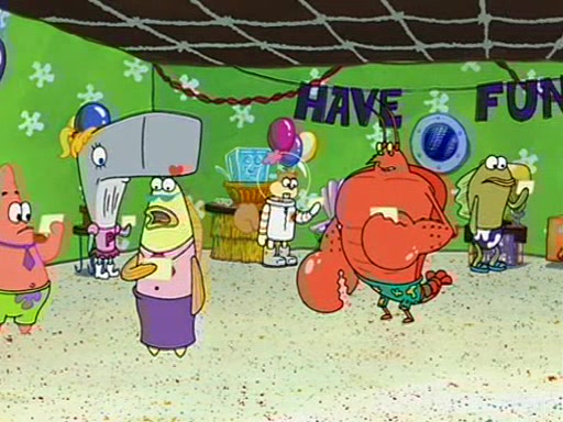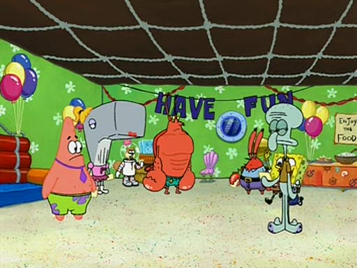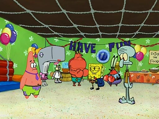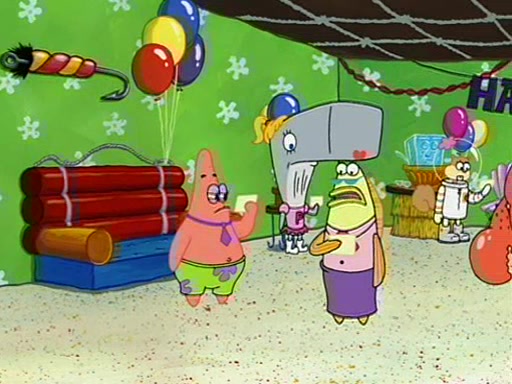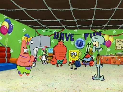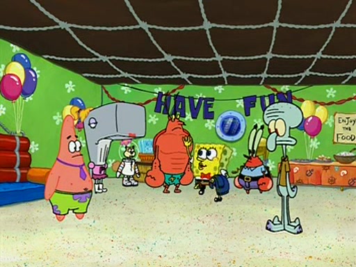 Patchy organizes a house party, and all the guests come except for SpongeBob himself, who can't understand what's written on the invitation because it was destroyed by the water. So they throw it in fire. Potty invites The Birdbrains, a band consisting of birds. Patchy attempts to remedy the music situation by performing his own (horrible) song, and Potty tells Patchy that it's time for his flute solo. Patchy starts playing, but soon realizes that he plays a fife, not a flute, and that the "flute" is actually dynamite. It explodes, leaving only his head intact. The Birdbrains then have the opportunity to play music, singing "Underwater Sun." After they finish, Patchy returns to end the show, with a barrel for a body being kissed by girl parrots.
