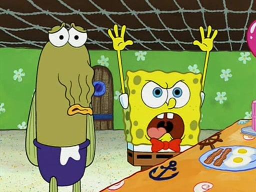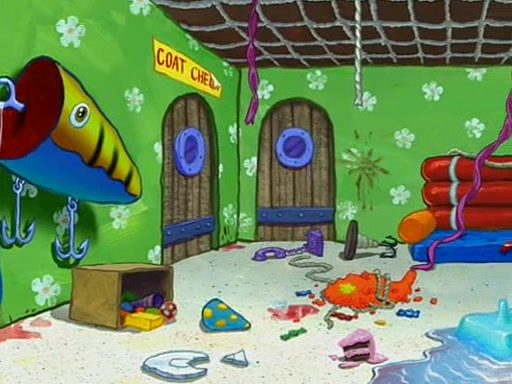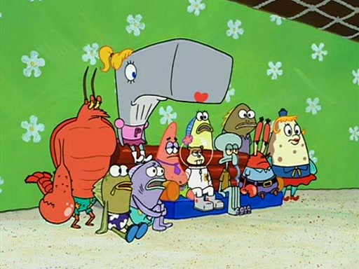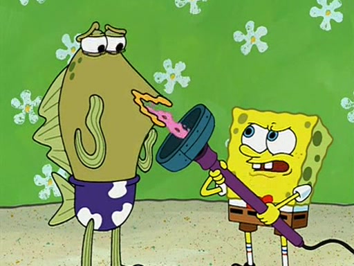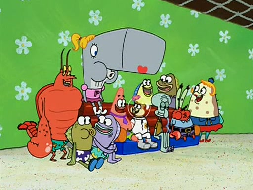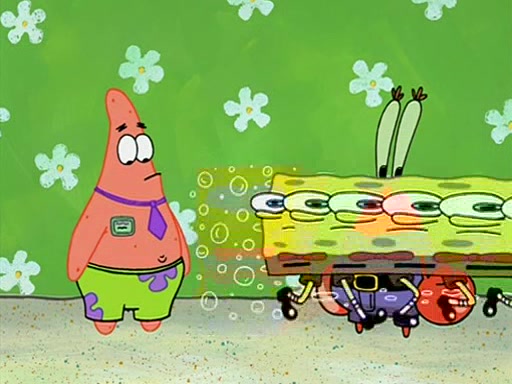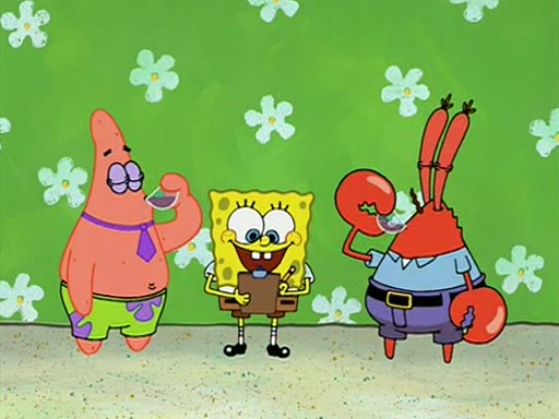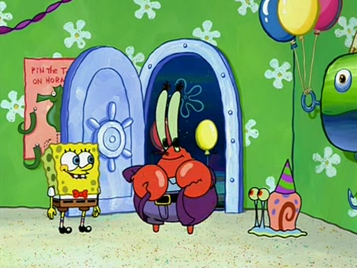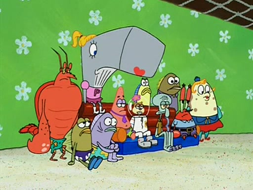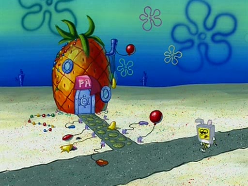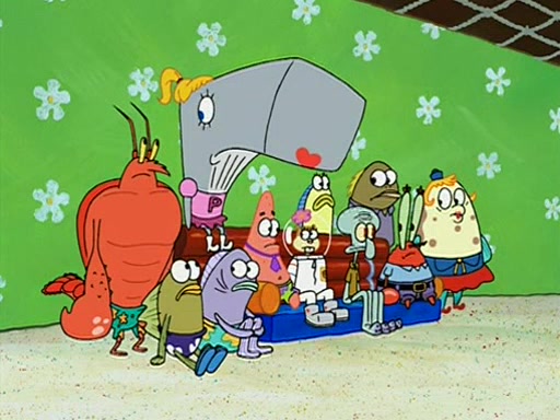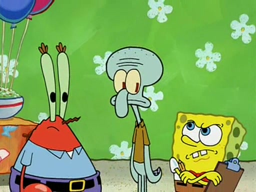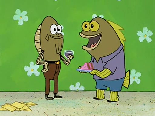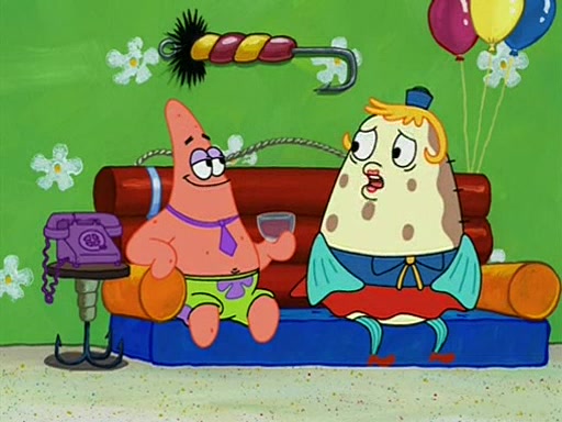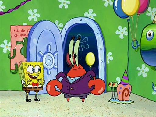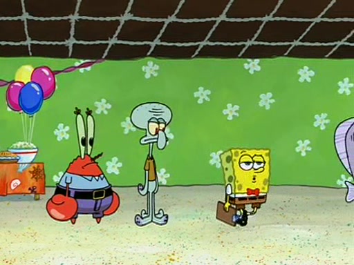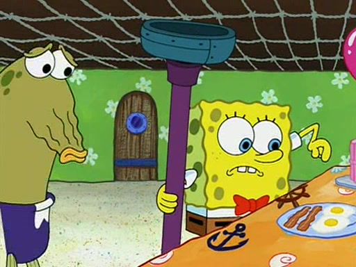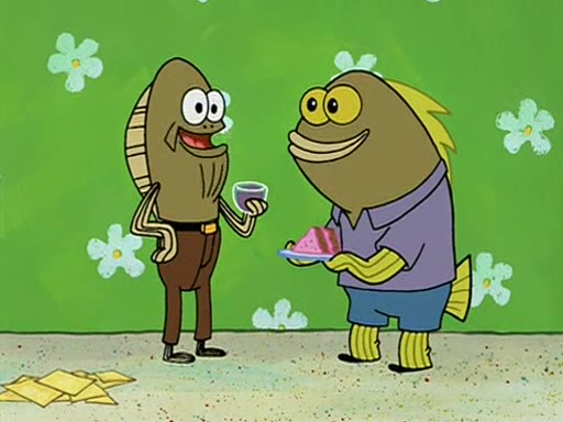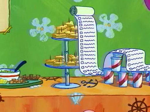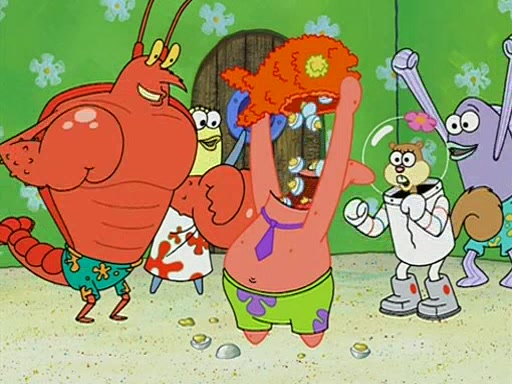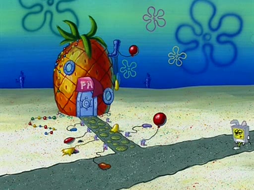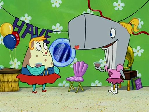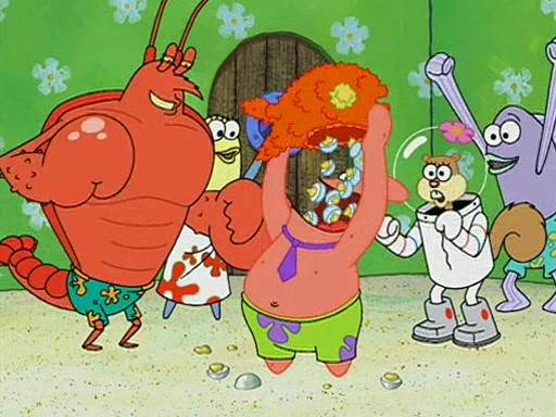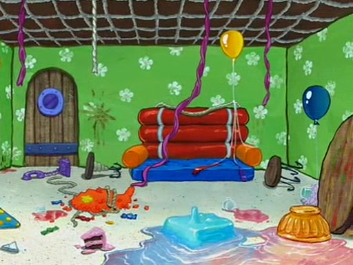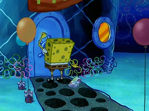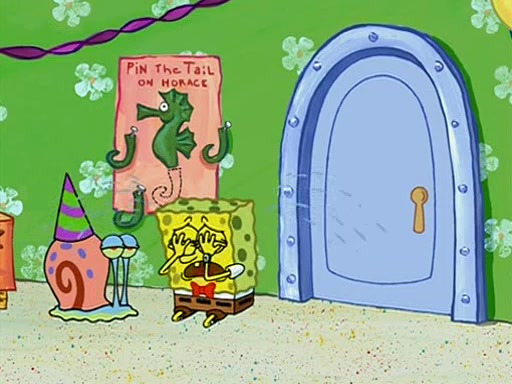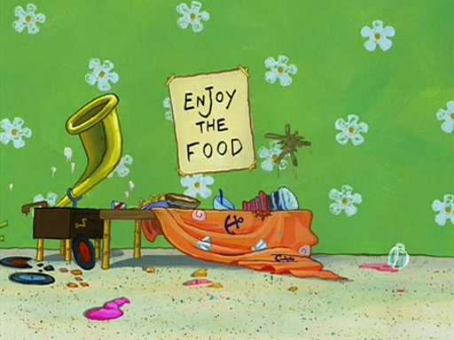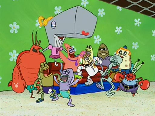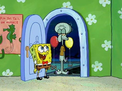 Patchy organizes a house party, and all the guests come except for SpongeBob himself, who can't understand what's written on the invitation because it was destroyed by the water. So they throw it in fire. Potty invites The Birdbrains, a band consisting of birds. Patchy attempts to remedy the music situation by performing his own (horrible) song, and Potty tells Patchy that it's time for his flute solo. Patchy starts playing, but soon realizes that he plays a fife, not a flute, and that the "flute" is actually dynamite. It explodes, leaving only his head intact. The Birdbrains then have the opportunity to play music, singing "Underwater Sun." After they finish, Patchy returns to end the show, with a barrel for a body being kissed by girl parrots.