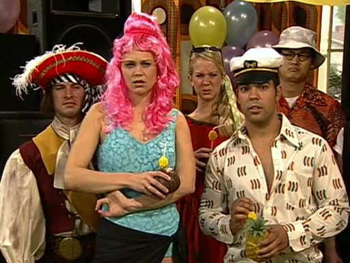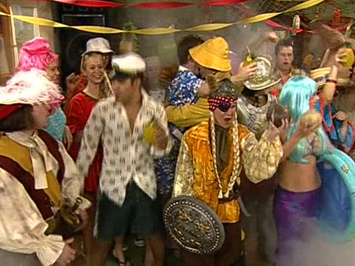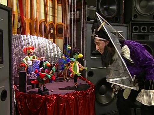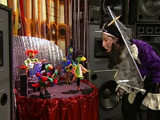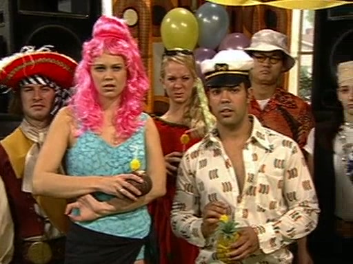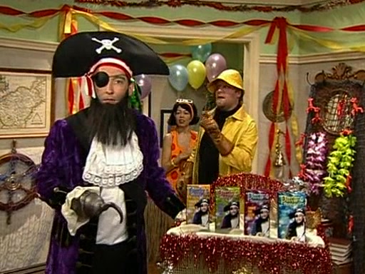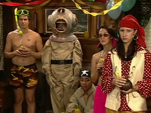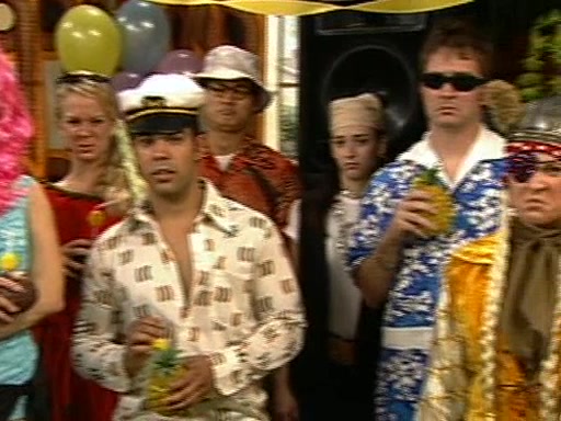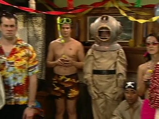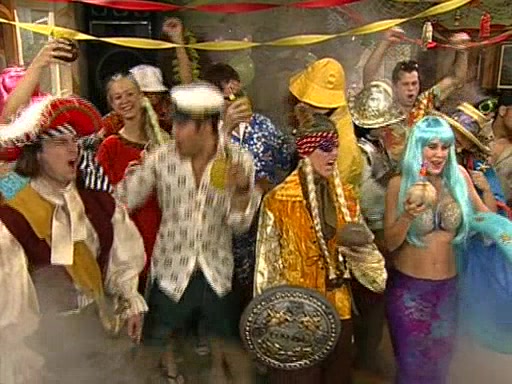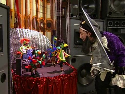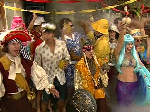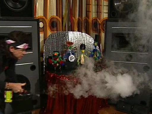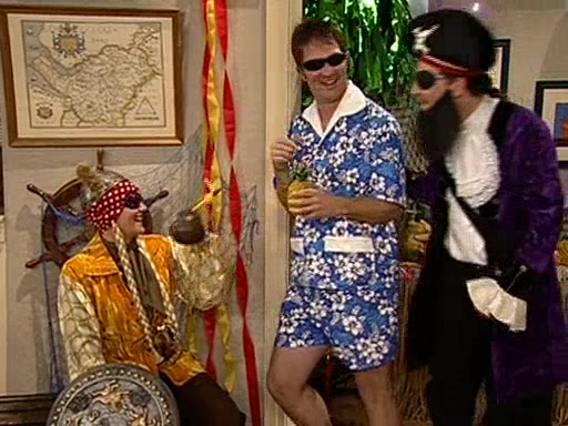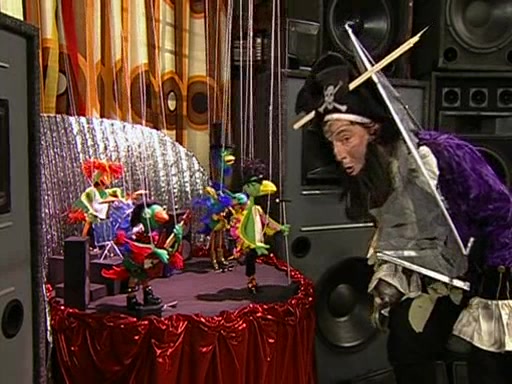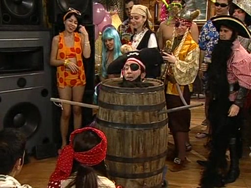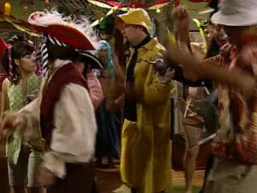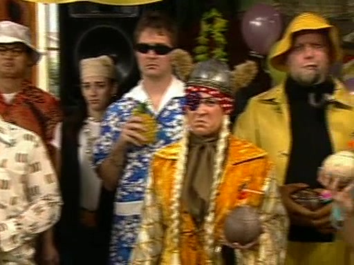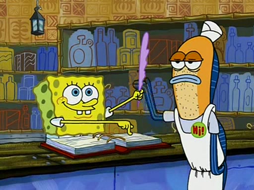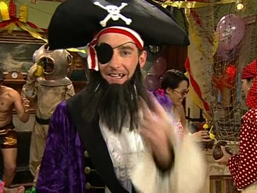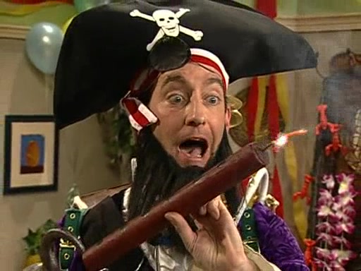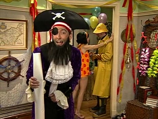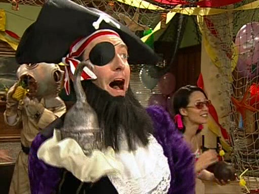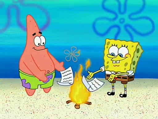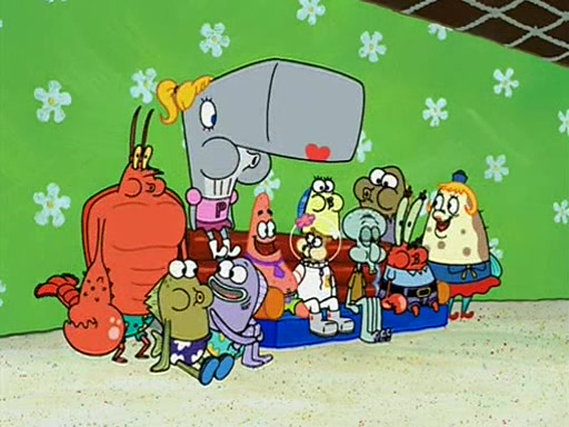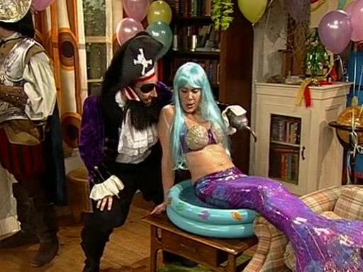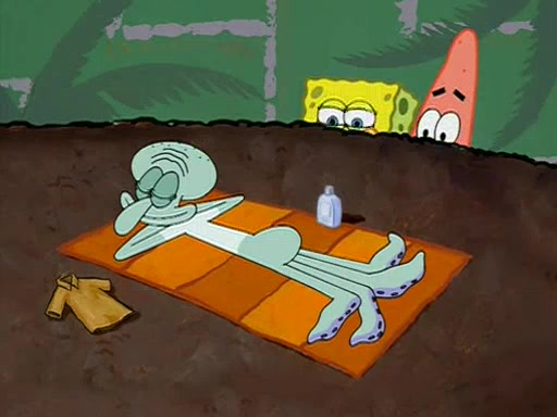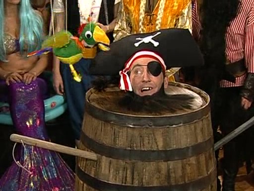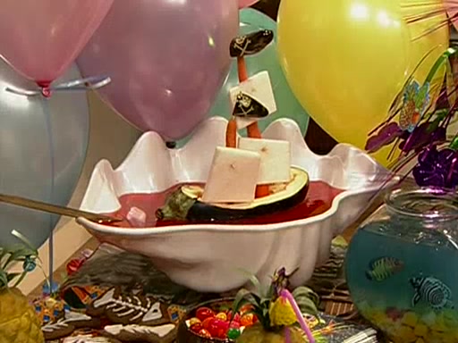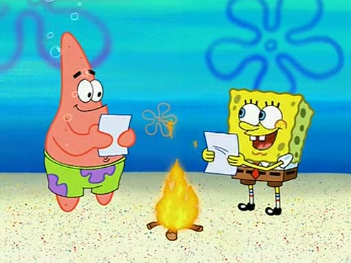 Patchy organizes a house party, and all the guests come except for SpongeBob himself, who can't understand what's written on the invitation because it was destroyed by the water. So they throw it in fire. Potty invites The Birdbrains, a band consisting of birds. Patchy attempts to remedy the music situation by performing his own (horrible) song, and Potty tells Patchy that it's time for his flute solo. Patchy starts playing, but soon realizes that he plays a fife, not a flute, and that the "flute" is actually dynamite. It explodes, leaving only his head intact. The Birdbrains then have the opportunity to play music, singing "Underwater Sun." After they finish, Patchy returns to end the show, with a barrel for a body being kissed by girl parrots.