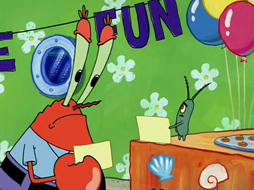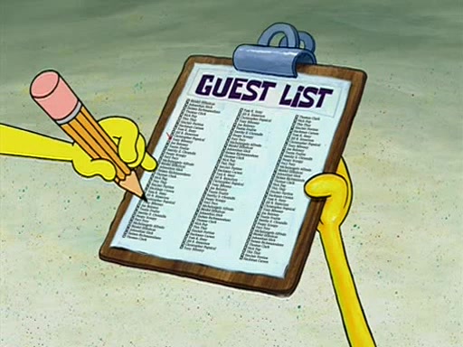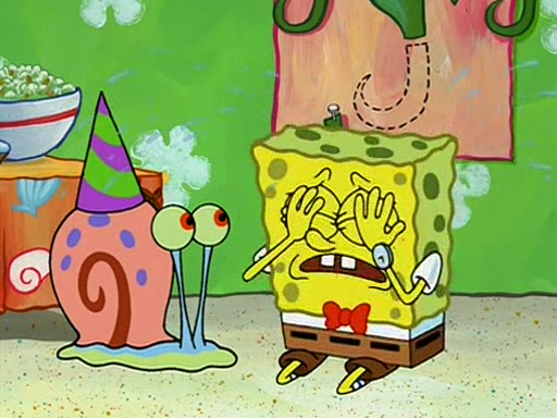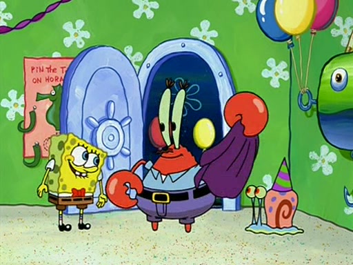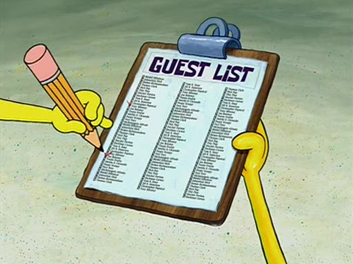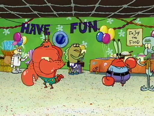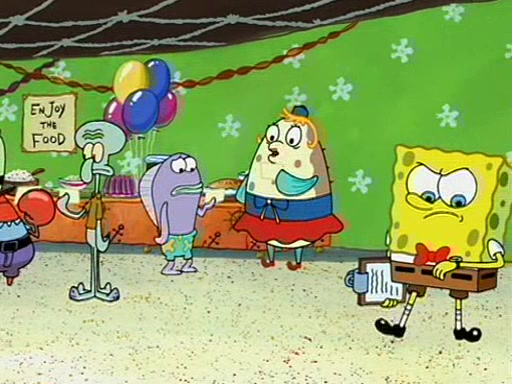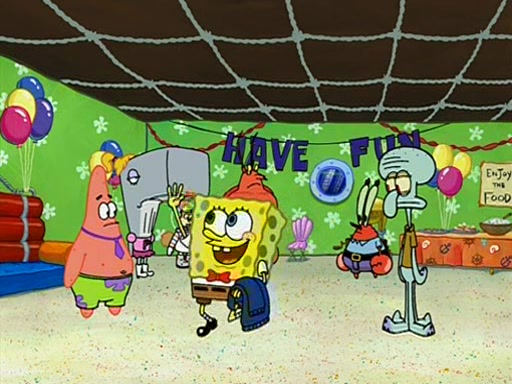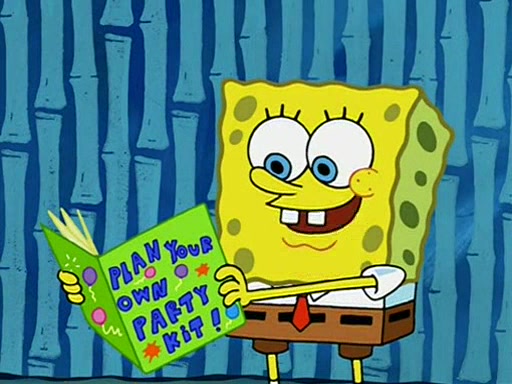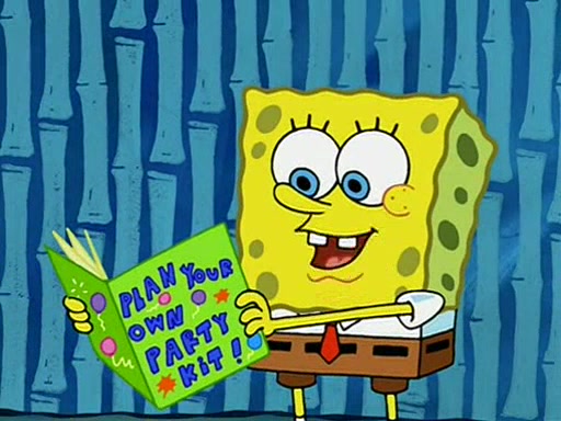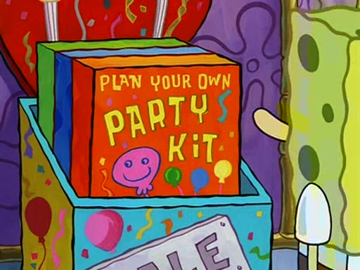While shopping at the Barg 'N-Mart, SpongeBob finds a "Plan Your Own Party Kit," and decides to throw a party using the kit. Despite the kit advising to invite "only your closest friends", SpongeBob invites nearly everyone in Bikini Bottom. When all his guests arrive and start partying, SpongeBob stops them from doing what they want and forces them to follow a very elaborate and specific schedule of events that he planned. These include discussion cards and reading newspaper comics to his guests. SpongeBob accidentally locks himself out of his house because he got the wrong newspaper, allowing the guests to have fun. After continually trying to get into his house using different methods, he grabs a pickax and attempts to break in while dressed as a bunny. The police find him and place him under arrest, but when SpongeBob explains everything, they don't arrest him. However, the police attempts to make him miss the party by arresting him for not inviting them. When he gets back, he is depressed because his party failed, until Patrick comes and tells him that it was the greatest party all of them has ever been to, and that he should do exactly the same thing next weekend. SpongeBob smiles gladly and becomes proud and finds Gary wearing a lamp. The episode ends as SpongeBob turns off the lamp.