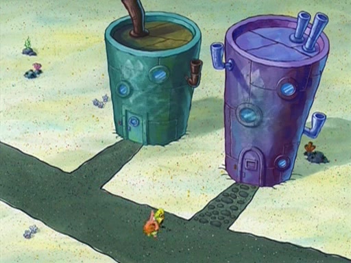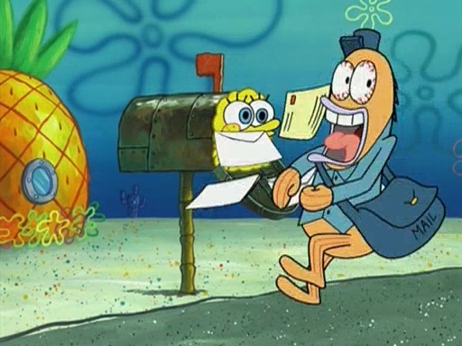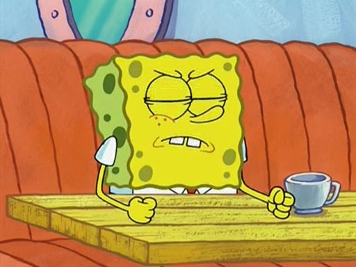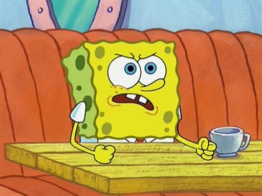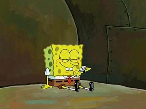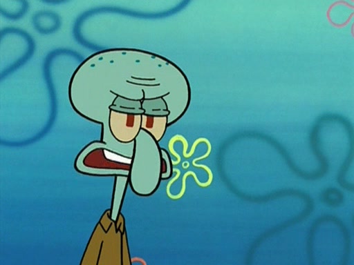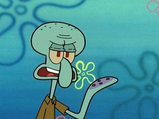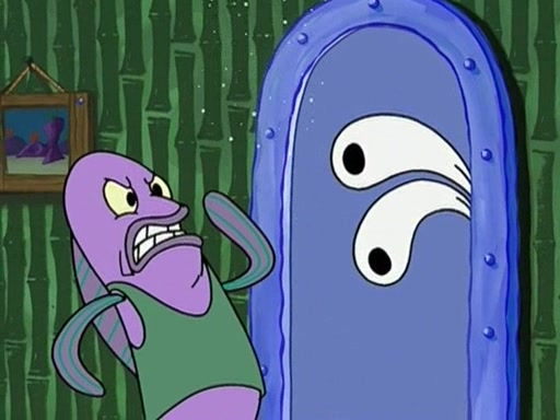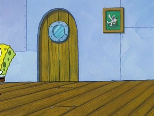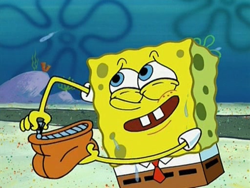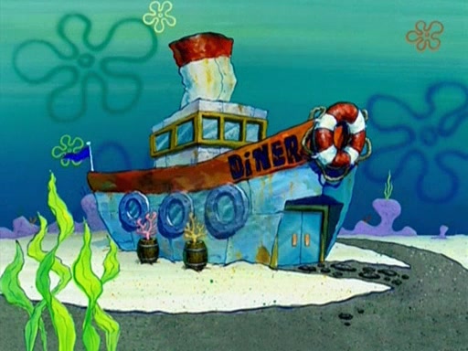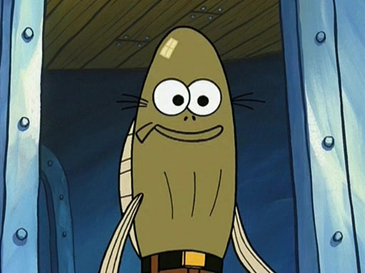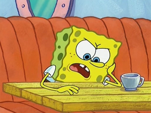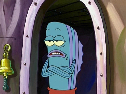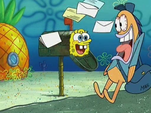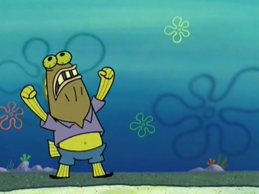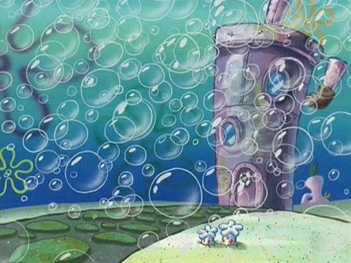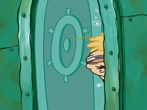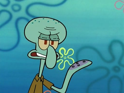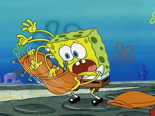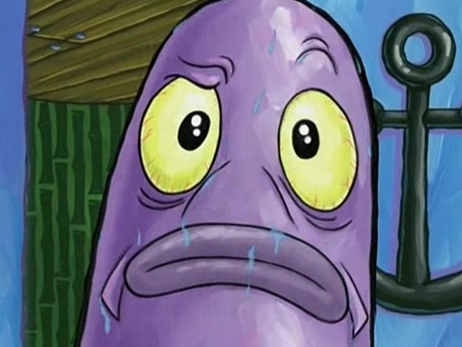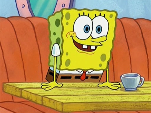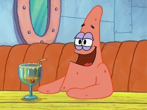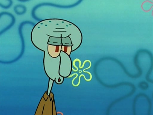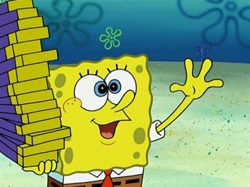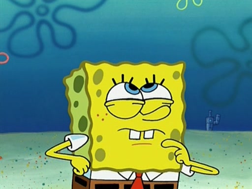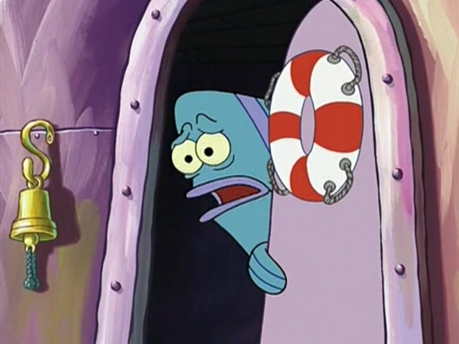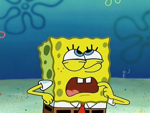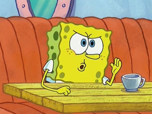 Along the way, SpongeBob and Patrick are also convinced to purchase candy bar carrying bags by a con artist who is only known as The Con Man. He later scams them again, selling them "candy bar bag carrying bags." The next person was Sadie, but SpongeBob couldn't find her candy bar, which made her impatient and slam the door in their faces. After running away from Tom again, they sit in the diner and think about a new approach. Patrick says "Let's get naked," but SpongeBob says they should save that strategy for when they're selling real estate, then decides to be nice. Patrick says "I love you" to the first guy they try this on, but he slams the door in disgust. They try again, but the customer refuses to buy chocolate since it made him obese as a teenager and shows a picture as proof, which Patrick buys. SpongeBob figures that they are too easily distracted and need to stay focused on selling. Patrick takes this literally and freaks out their next customer by focusing on him with his eyes. Eventually, after seeing an advertisement for "Barnacle Chips," SpongeBob and Patrick decide to increase the appeal of their product by "stretching" the truth. The first customers they use this tactic on are an old lady and her very old mother (The mother is so old she is only a shriveled up spine). They claim that the chocolate will make one immortal by rubbing it on their skin, which the extremely old mother is delighted by to her daughter's dismay.