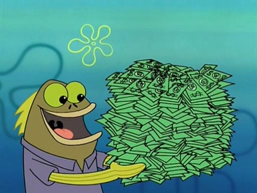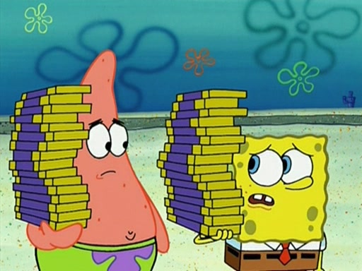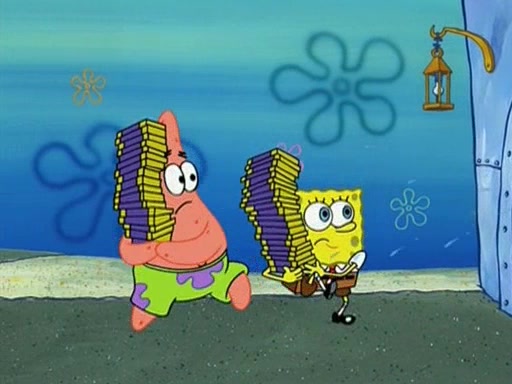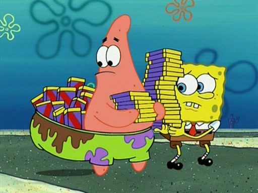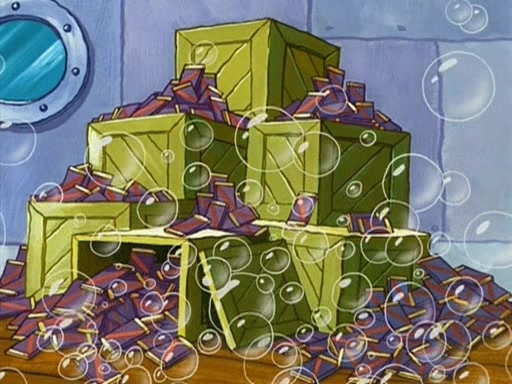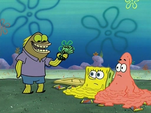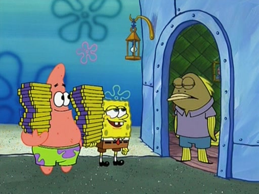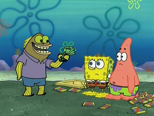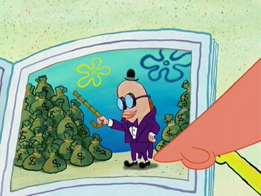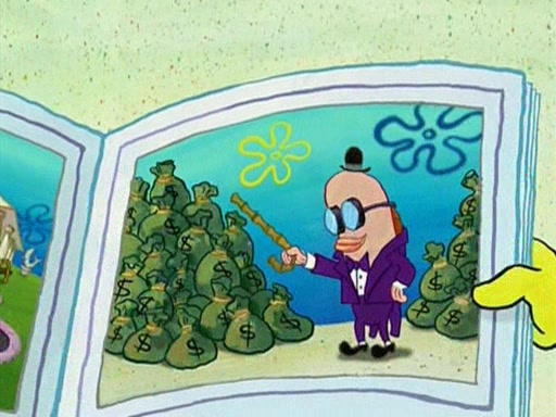 SpongeBob finds a magazine called Fancy Living Digest in his mail, which depicts the lifestyles of the extremely wealthy. Squidward shows up and takes the magazine, which was actually for him, and SpongeBob and Patrick ask him how people can get so rich. SpongeBob then decides to sell chocolate bars to raise money in hopes of achieving the fancy lifestyle.