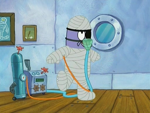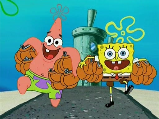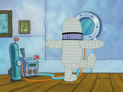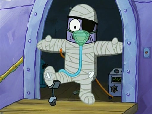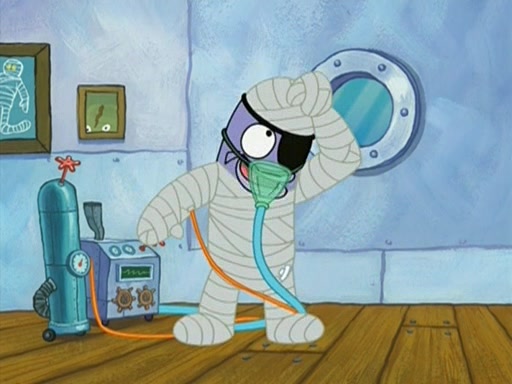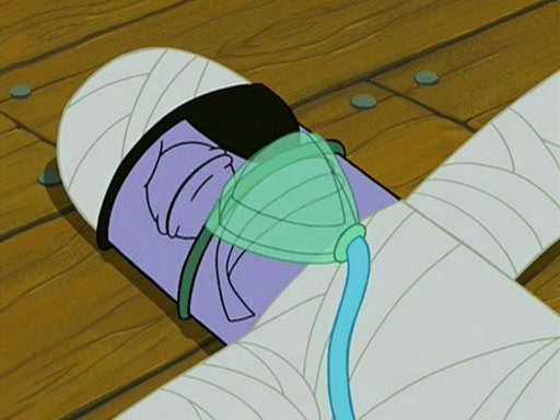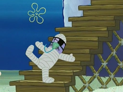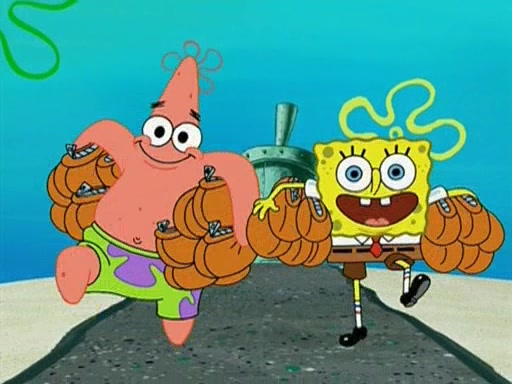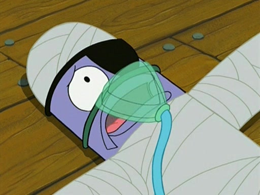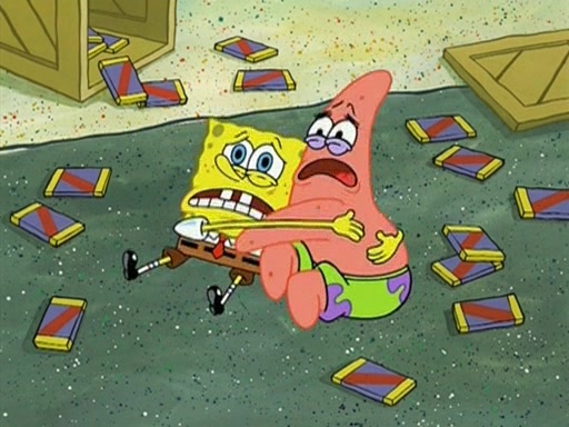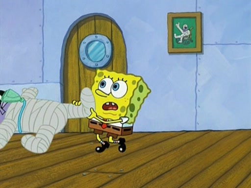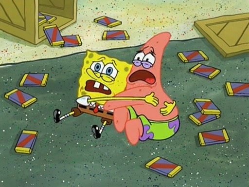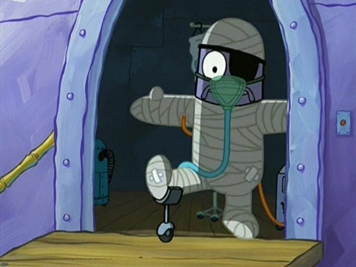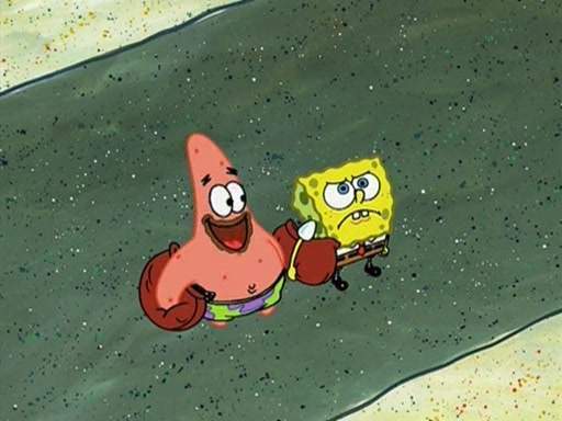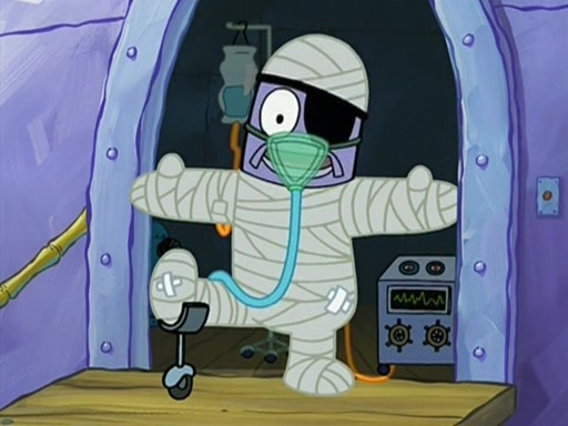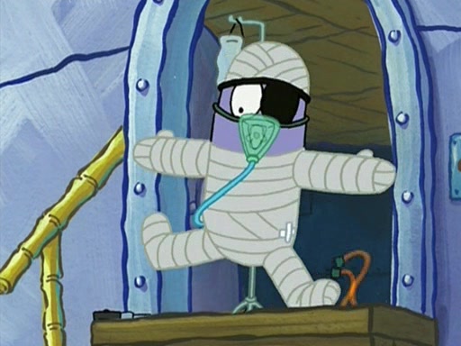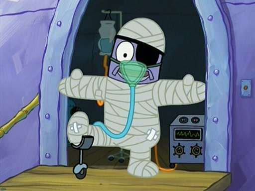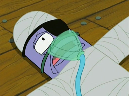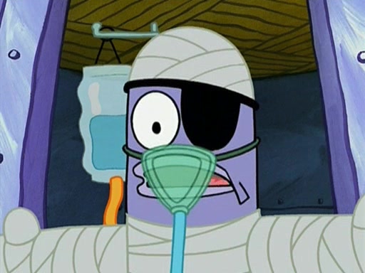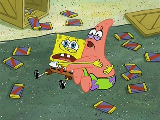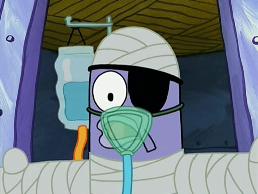 The duo continue this strategy, making several absurd promises about the chocolate. Their lies culminate in them dressing in bandages and pretending to be badly injured and in need of an operation. However, the customer they go to is himself in far worse shape than they claim to be, and must sell chocolate to pay his medical bills. Feeling extreme sympathy for the man, SpongeBob and Patrick buy a huge amount of chocolate from him with all the money they had just made. However, the man is then revealed to be the same con artist who had scammed them twice before.