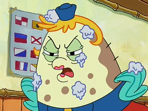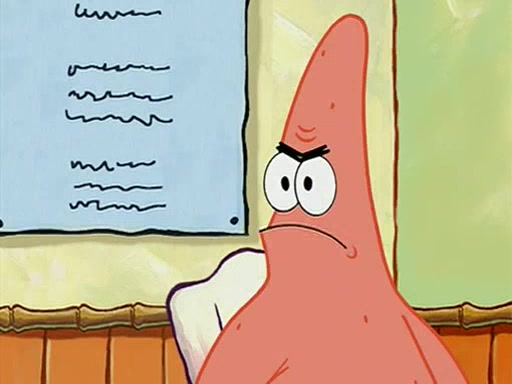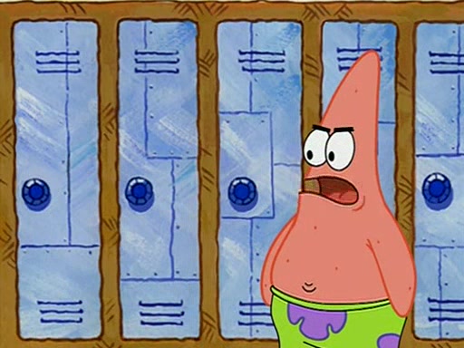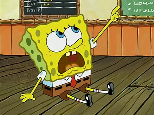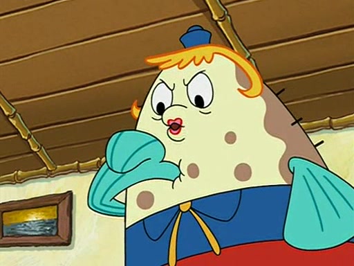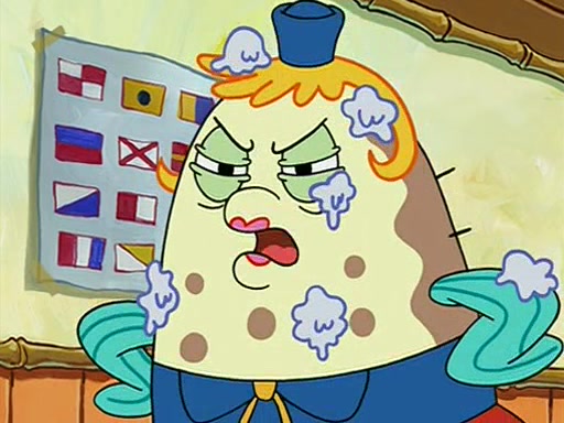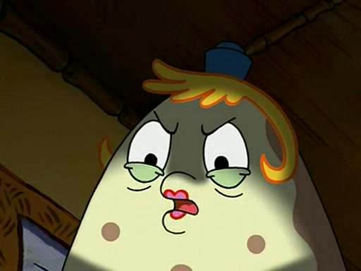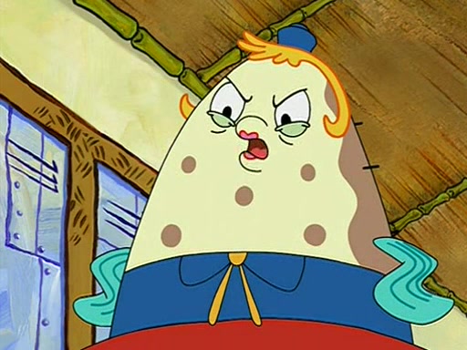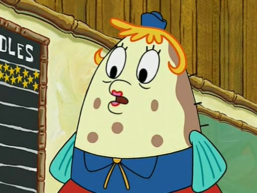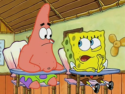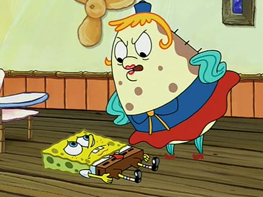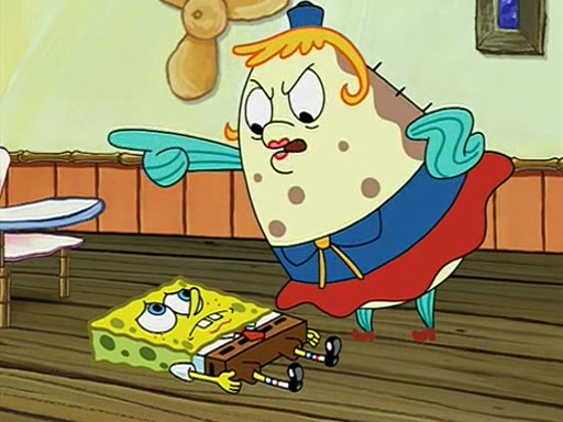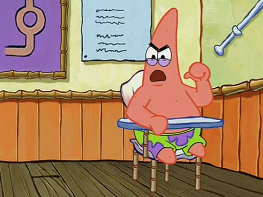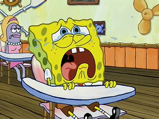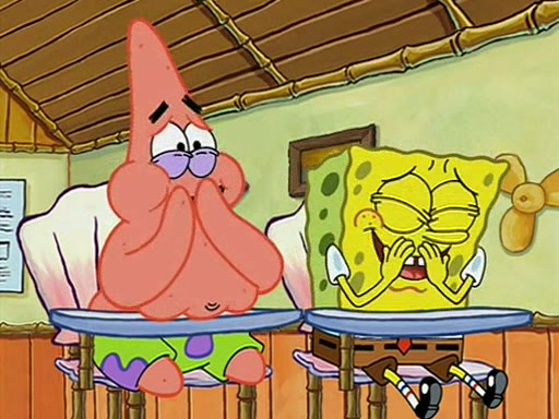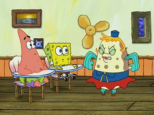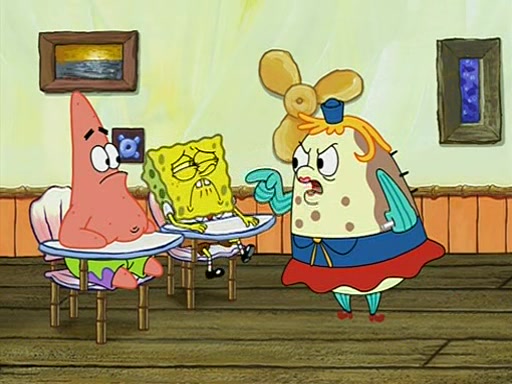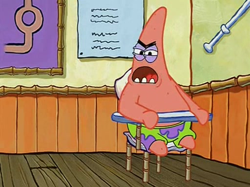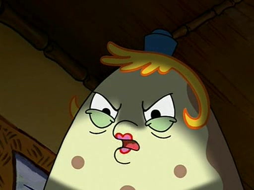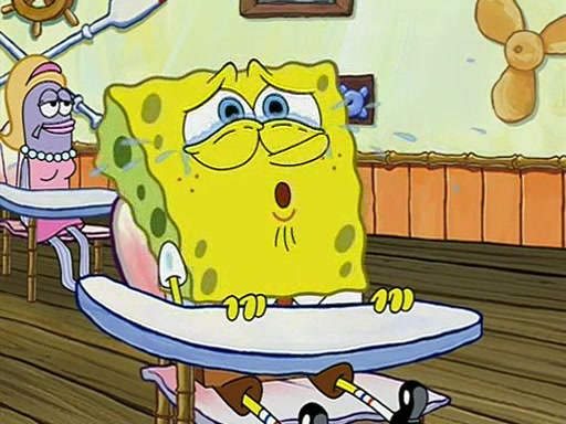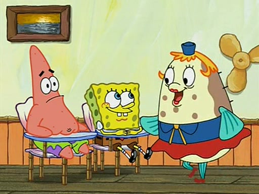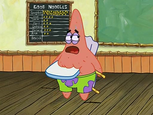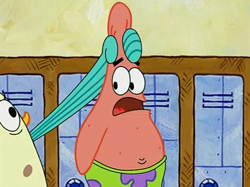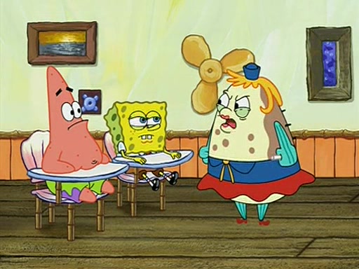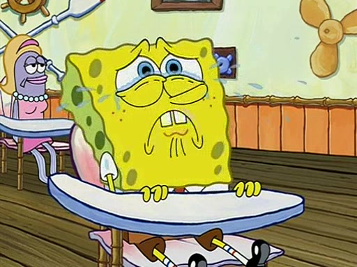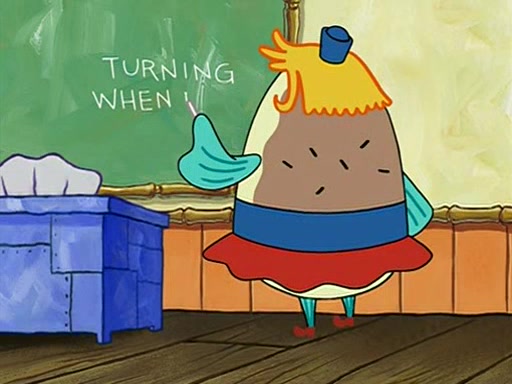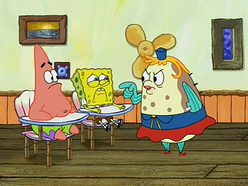 When class starts, Mrs. Puff sees the new student and asks him his name, Patrick gets nervous and replies with "twenty-four," and the whole class laughs at. At their desks, SpongeBob and Patrick laugh among each other about the what comes after number "twenty-four, SpongeBob said "twenty-five," and Mrs. Puff warns them to pay attention. Later, Patrick draws an ugly picture of Mrs. Puff, which she believes was made by SpongeBob. "Big Fat Meanie!" and on the bottom and it says "poo poo". Mrs. Puff has a small plastic spatula and removes one of his stars from his good noodles. much to his horror, and tells him to move to the available desk in the back of the room. Soon after, Patrick tries to tell SpongeBob something, and SpongeBob, very angry at him, tries to ignore him. Patrick begins throwing spitballs at SpongeBob to get his attention, and says that he has "something important" to tell him. SpongeBob finally asks him what he has to say, and Patrick simply says "Hi." SpongeBob is furious, and screams out "Hiiiiiiiii!" in frustration, causing the spitballs on him to fly all the way to Mrs. Puff, who angrily says "Perhaps this would be a good time for recess."