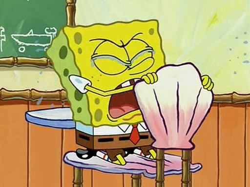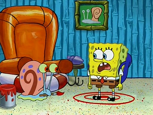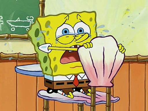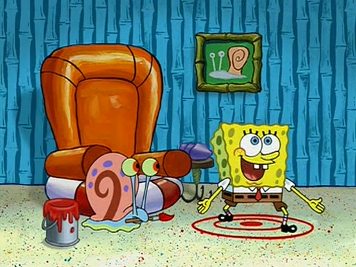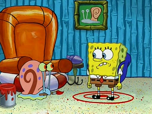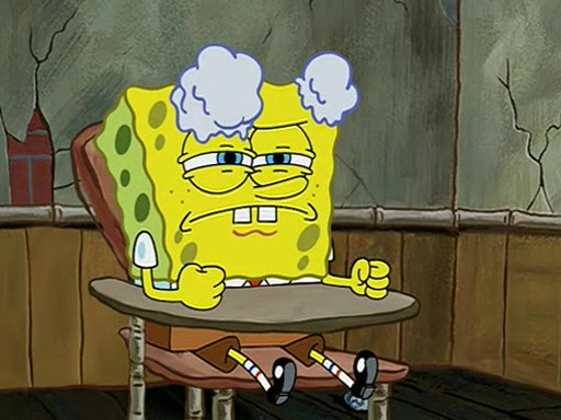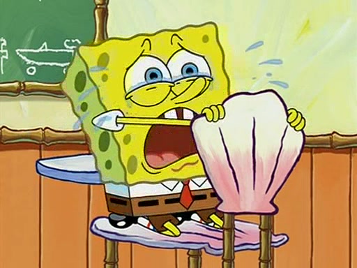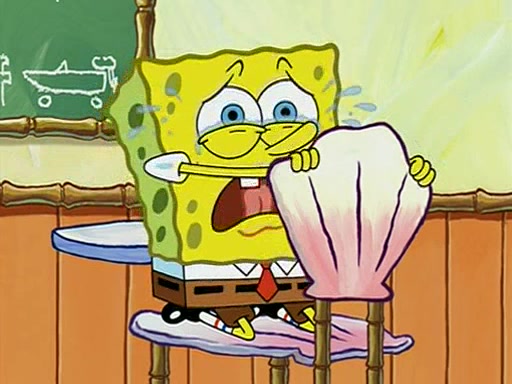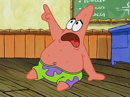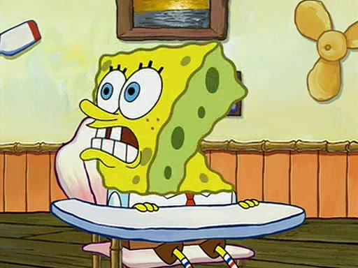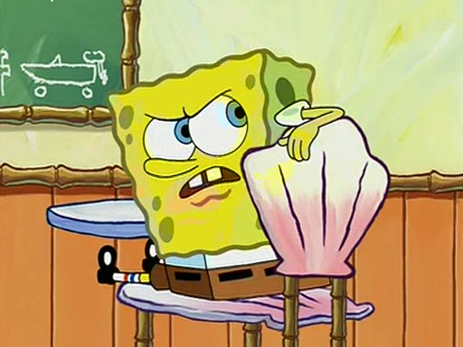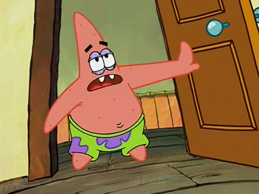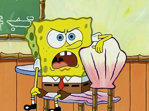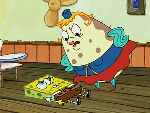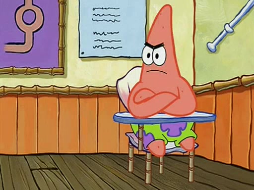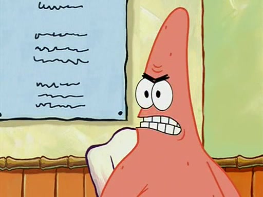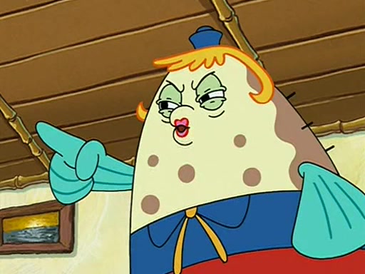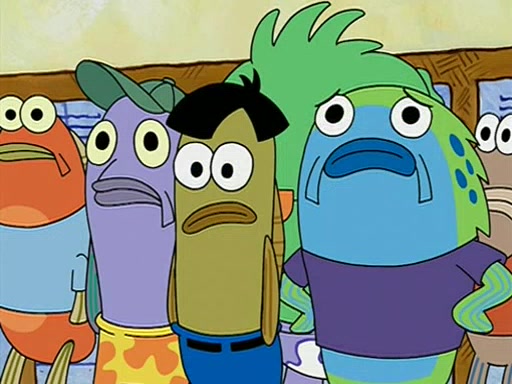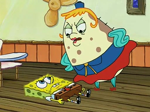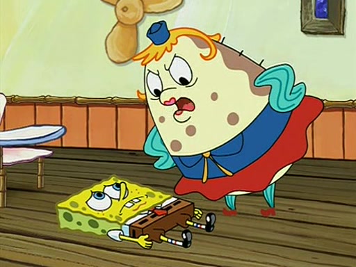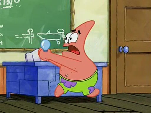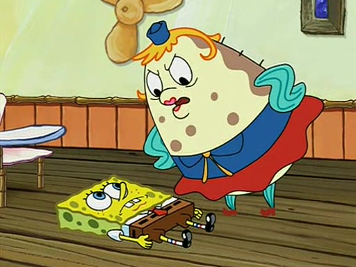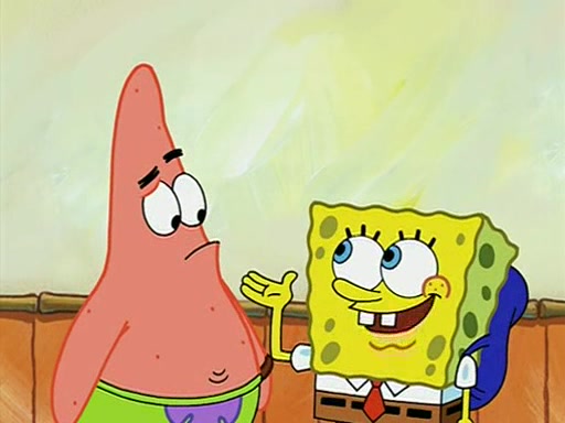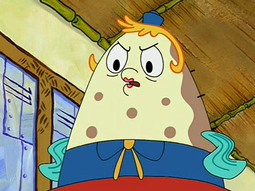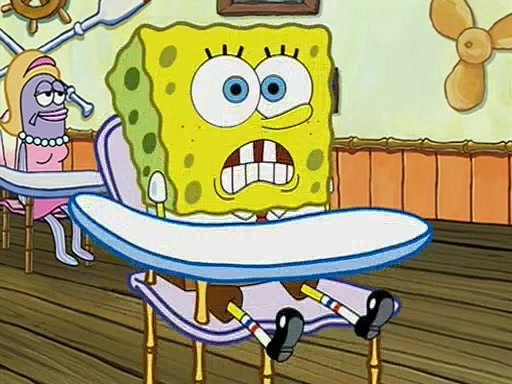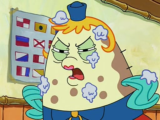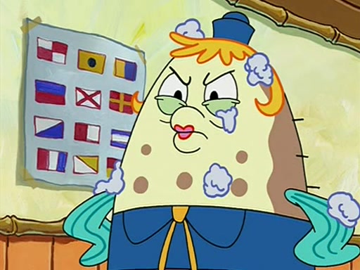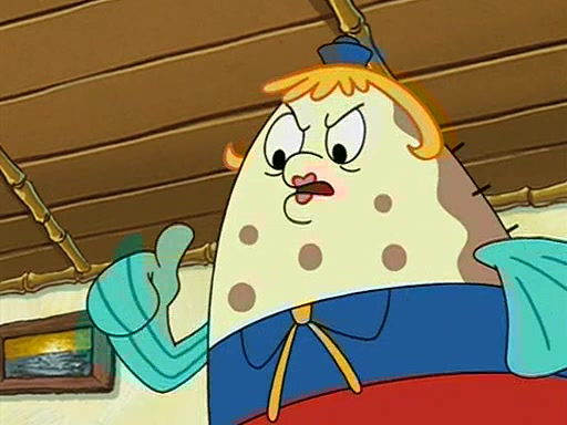 When class starts, Mrs. Puff sees the new student and asks him his name, Patrick gets nervous and replies with "twenty-four," and the whole class laughs at. At their desks, SpongeBob and Patrick laugh among each other about the what comes after number "twenty-four, SpongeBob said "twenty-five," and Mrs. Puff warns them to pay attention. Later, Patrick draws an ugly picture of Mrs. Puff, which she believes was made by SpongeBob. "Big Fat Meanie!" and on the bottom and it says "poo poo". Mrs. Puff has a small plastic spatula and removes one of his stars from his good noodles. much to his horror, and tells him to move to the available desk in the back of the room. Soon after, Patrick tries to tell SpongeBob something, and SpongeBob, very angry at him, tries to ignore him. Patrick begins throwing spitballs at SpongeBob to get his attention, and says that he has "something important" to tell him. SpongeBob finally asks him what he has to say, and Patrick simply says "Hi." SpongeBob is furious, and screams out "Hiiiiiiiii!" in frustration, causing the spitballs on him to fly all the way to Mrs. Puff, who angrily says "Perhaps this would be a good time for recess."
