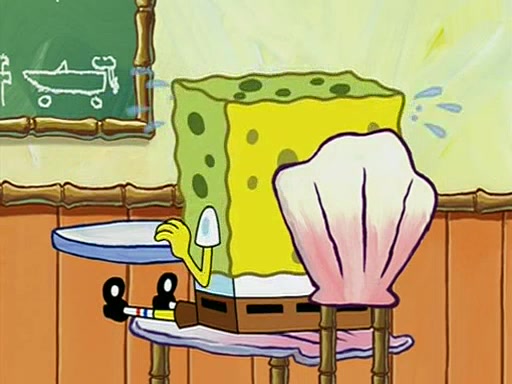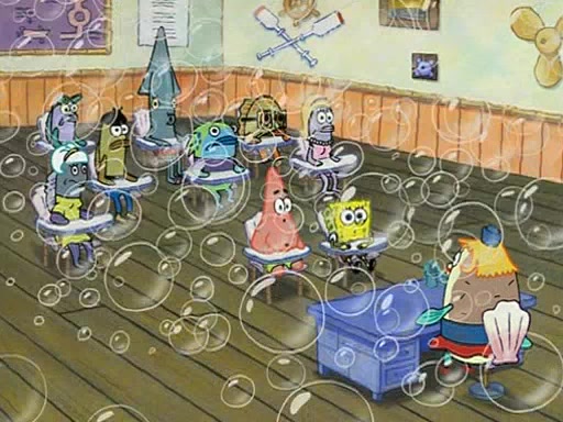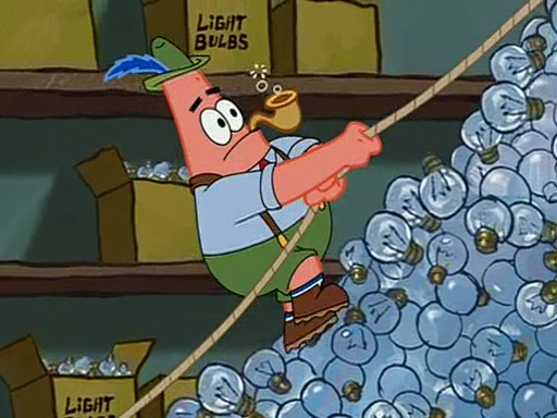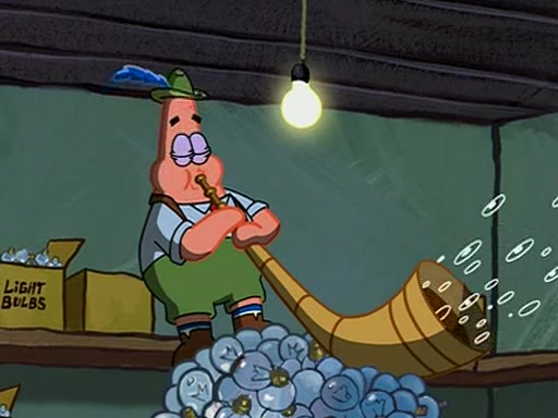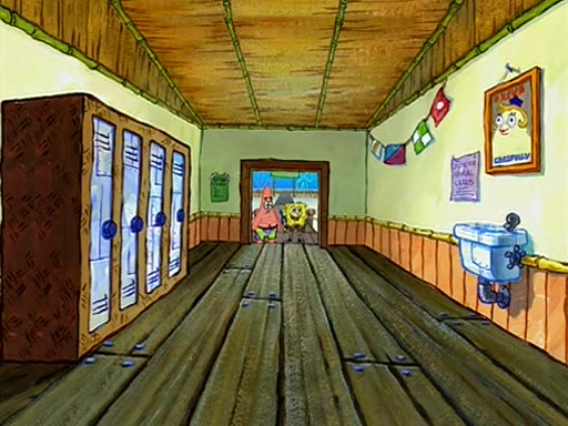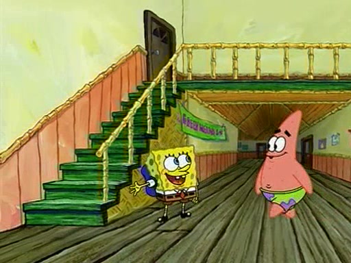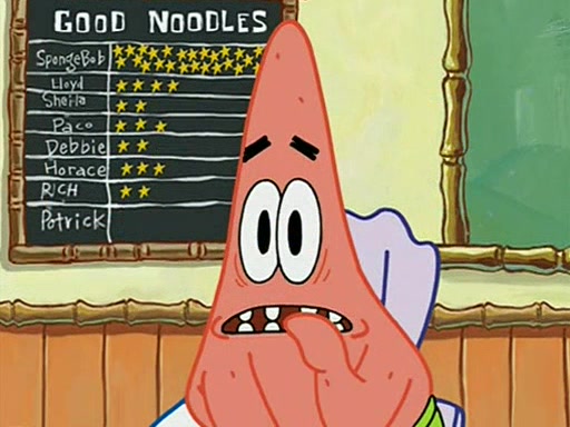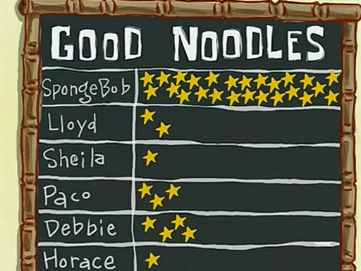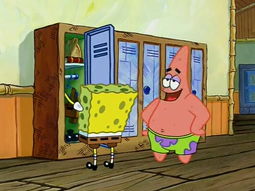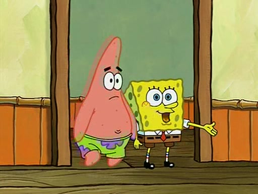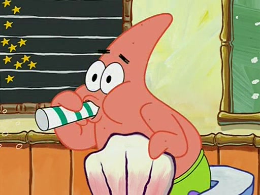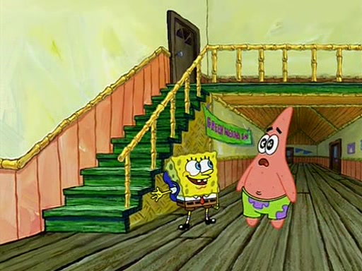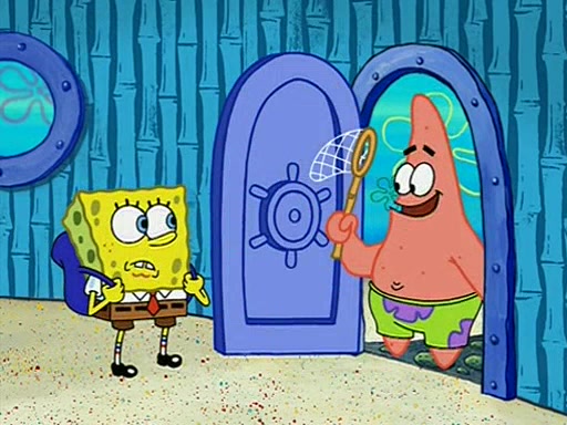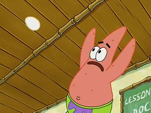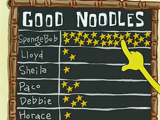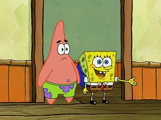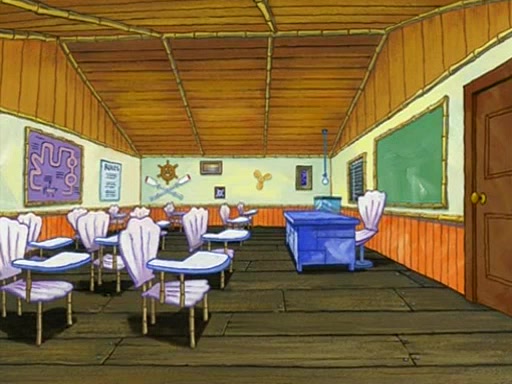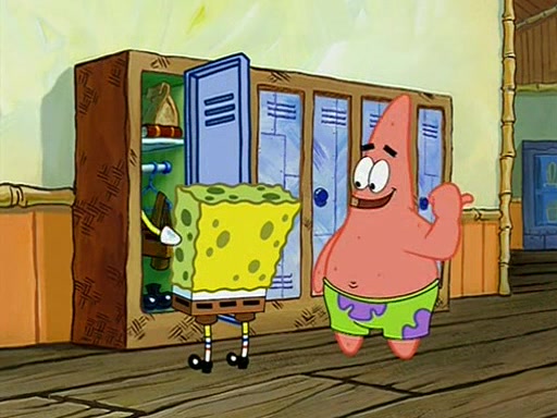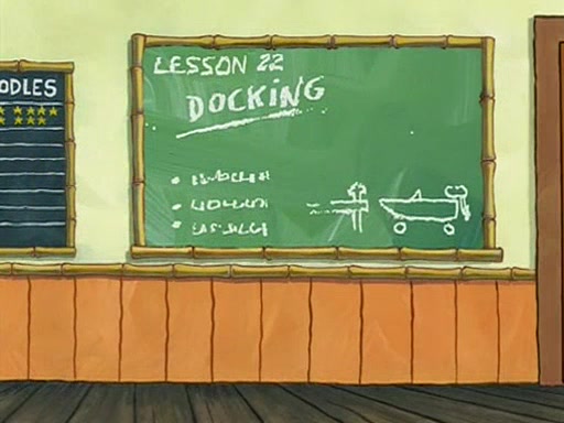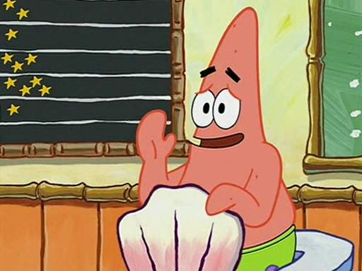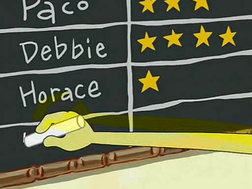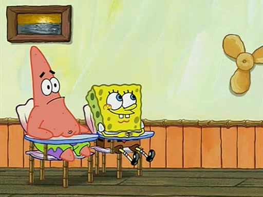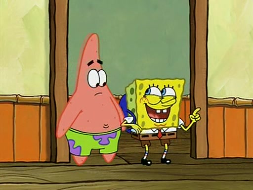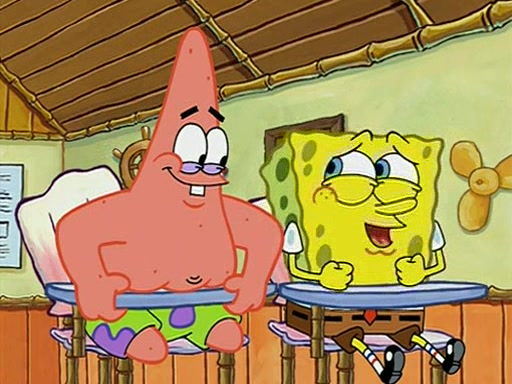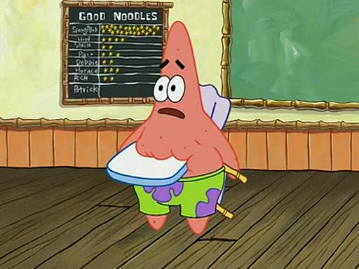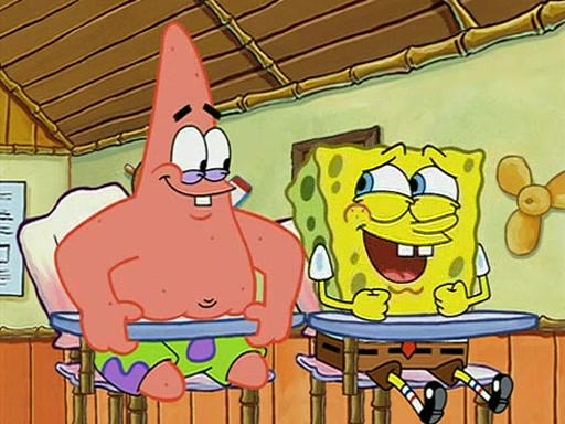 They arrive at 6:20 a.m., and class starts at 9:00 a.m., which SpongeBob considers "Late for being early", he then shows Patrick around the school, and explains their classroom's "Good Noodle board" system, where "good noodle stars" are placed on a good noodle board next to the chalkboard. SpongeBob has by far the most stars of anyone in the class, (seventy-four) and adds Patrick's name to the chart so he can start collecting stars. He also shows Roger, an unborn animal egg in a case with only a light-bulb for warmth.