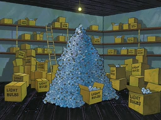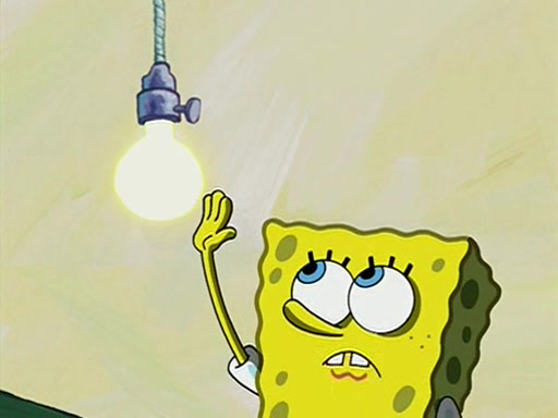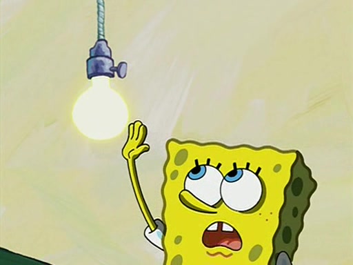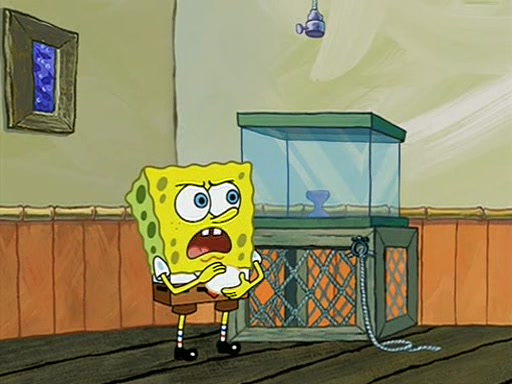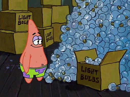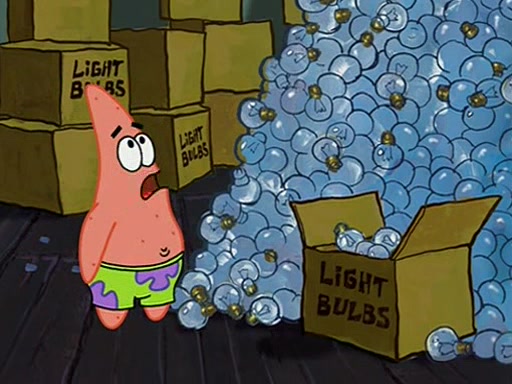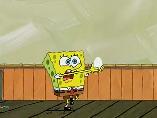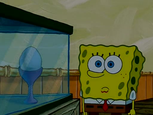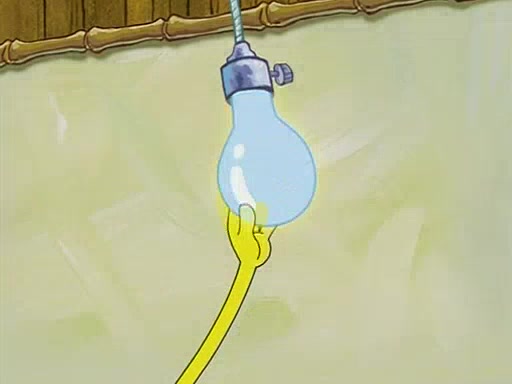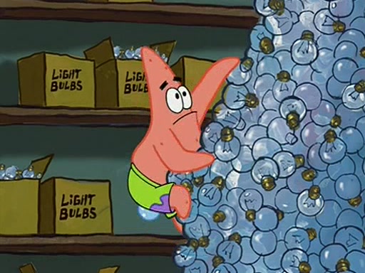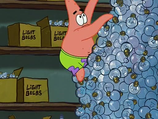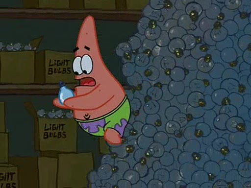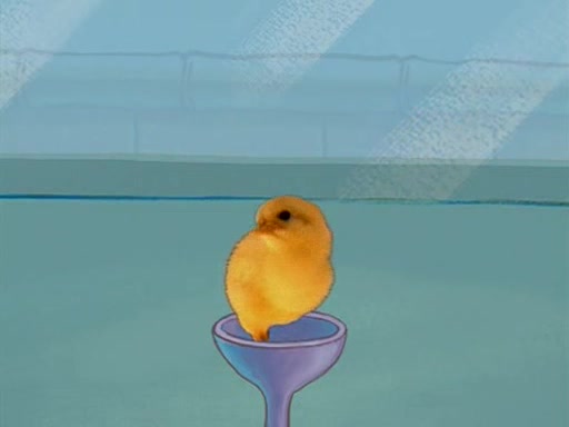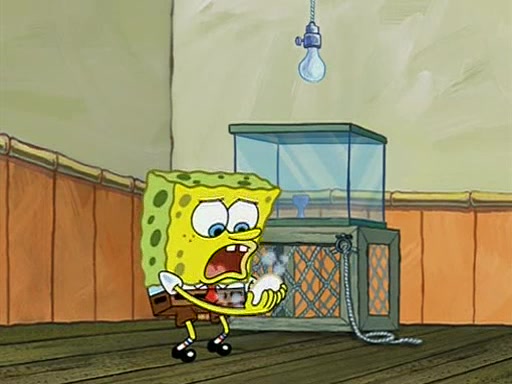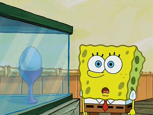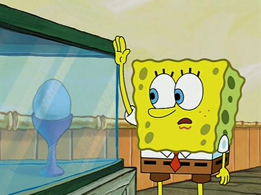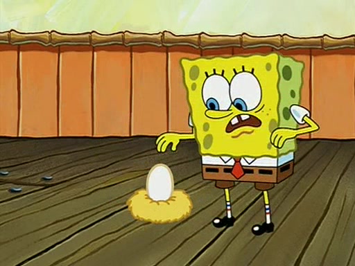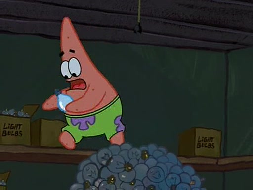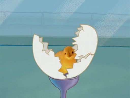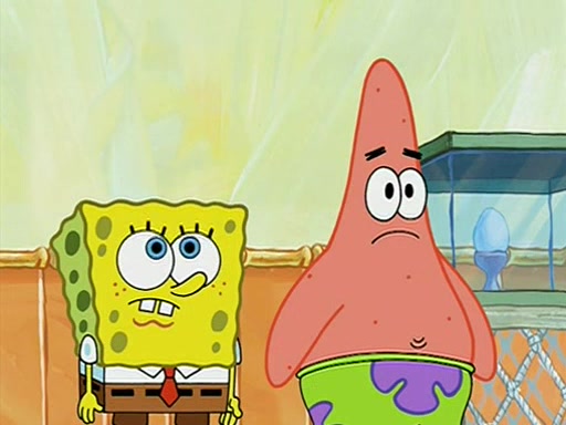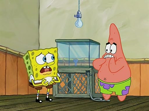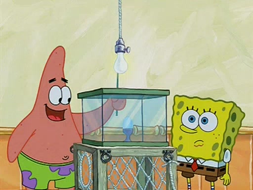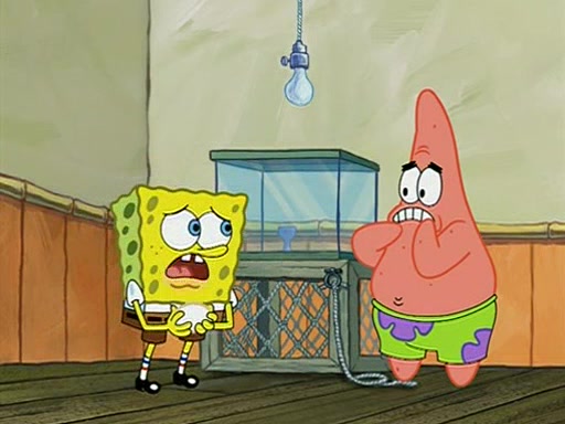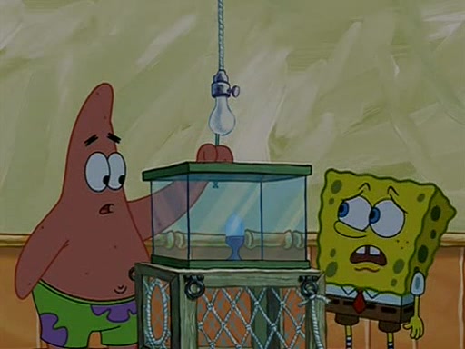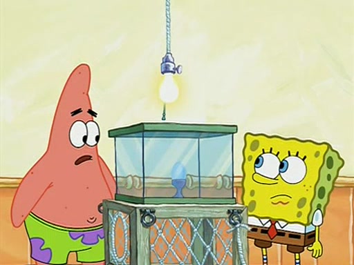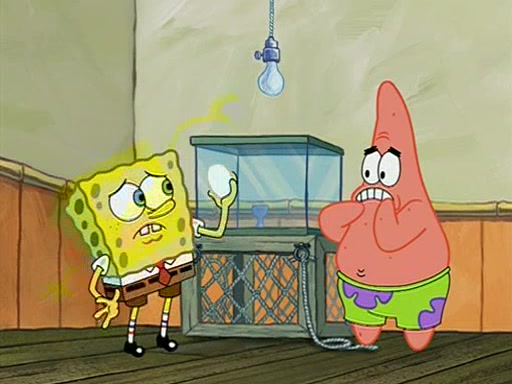 During detention, the two say how much they hate each other, and SpongeBob says "I'd hate you even if the light bulb keeping Roger alive went out!" Suddenly, the light bulb goes out, and Roger starts to freeze. Frightened on the inside, SpongeBob and Patrick try to ignore both situations, but end up tearfully apologizing, and then they work together to save Roger. SpongeBob keeps the egg warm, while Patrick gets a new light bulb. Patrick reaches the closet and finds a mountain of light-bulbs, but he thinks that the light bulb at the top that is operating is the only one that works and starts climbing the mountain to reach it. SpongeBob is impatient and starts running towards the closet with Roger in his hands, and bumps into Patrick, causing the egg and light bulb to fly into the air. Patrick catches the light bulb, and SpongeBob catches Roger. Suddenly, Mrs. Puff appears, who had been watching the whole incident through her one way chalkboard. She decides to give them each one golden star. Before Patrick then leaves, upon realizing that this was boating school and not "normal class" he calls Mrs. Puff "Big Fat Meanie." After Patrick leaves, Roger suddenly hatches, revealing to be a live action chick who says, "Hey! What did I miss?" as the episode ends.