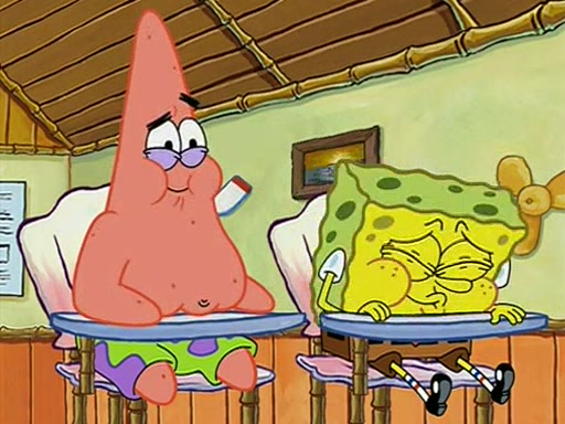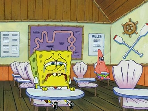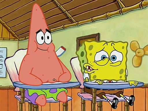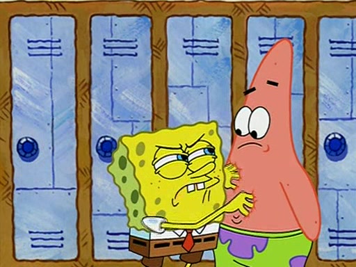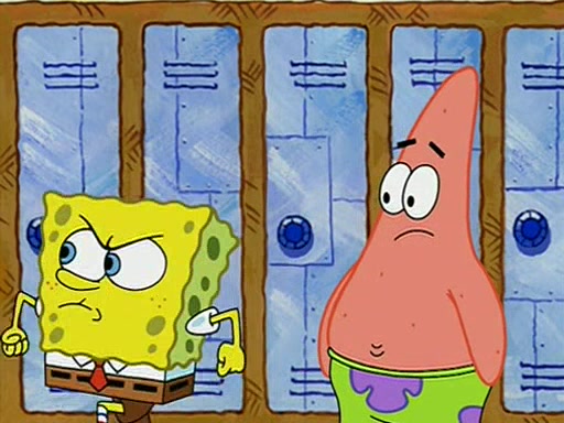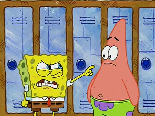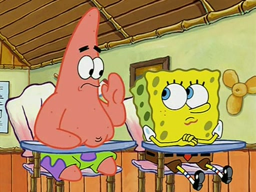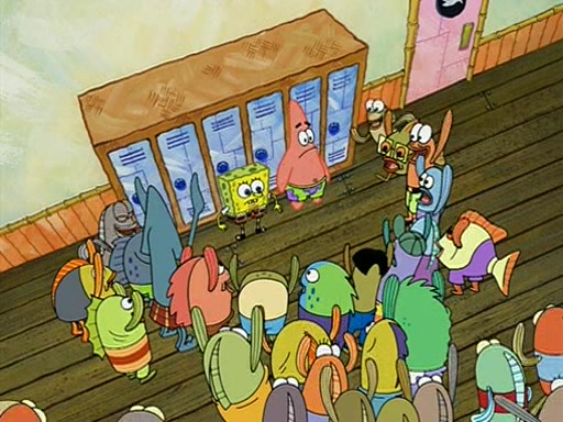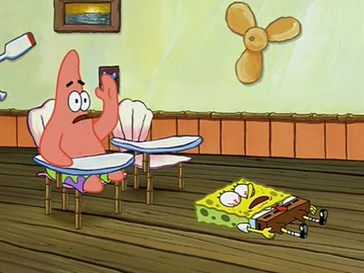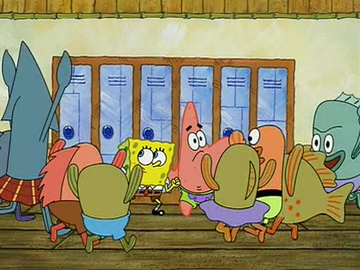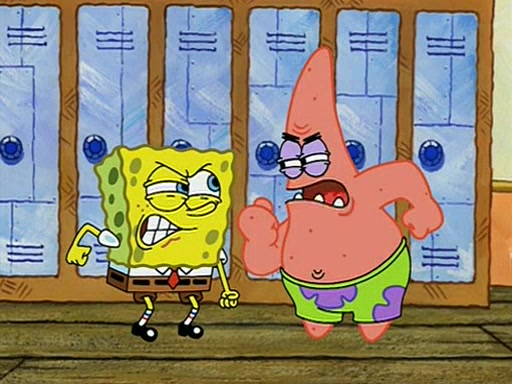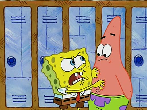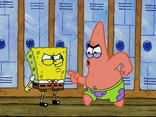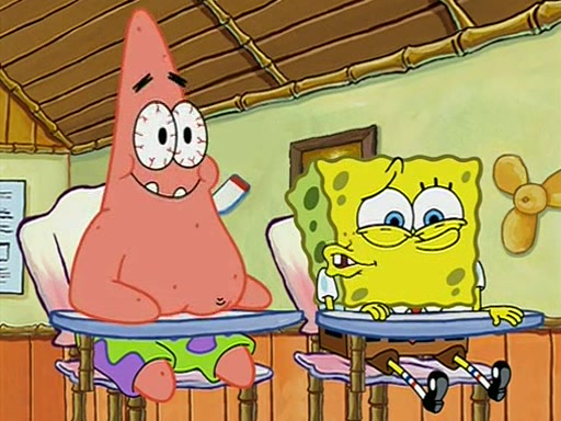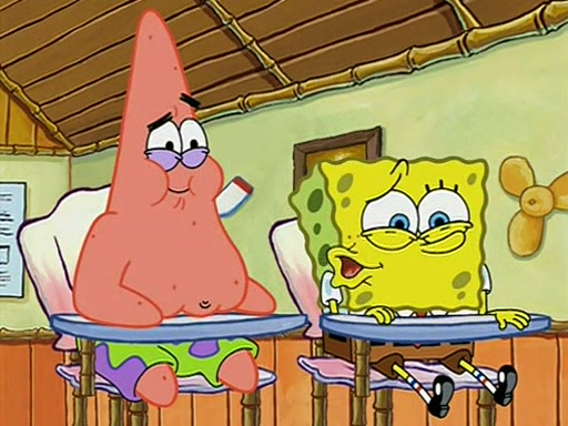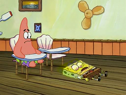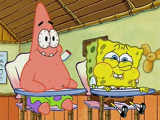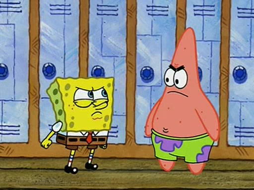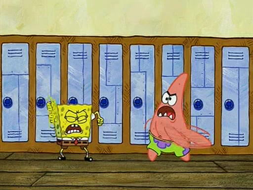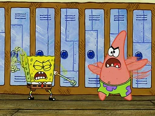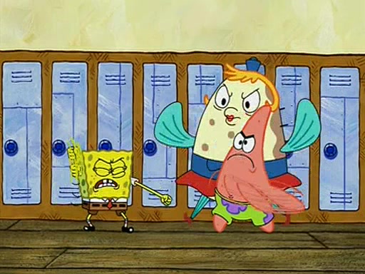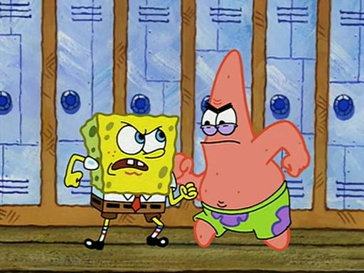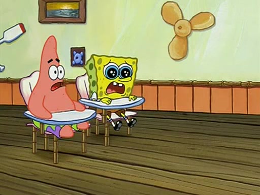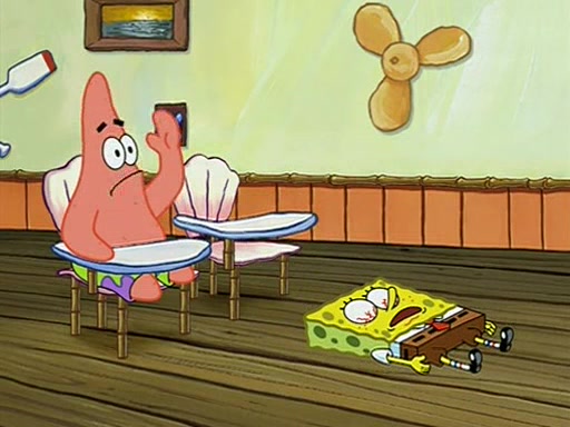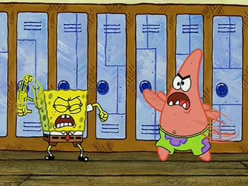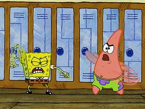 During recess, SpongeBob confronts Patrick in the hallway, and they start fighting, which they are given detention.