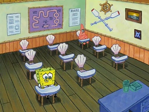 SpongeBob is heading to school one morning, and Patrick eagerly asks him if he can go jellyfishing. SpongeBob says he has to go to school, and asks what Patrick usually does when he's gone. Patrick says that he " will wait for you to get back" and SpongeBob feels sorry for Patrick, SpongeBob tells Patrick that he can come to school with him.