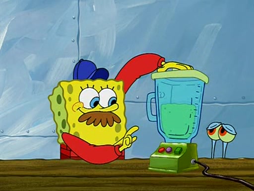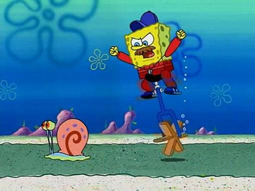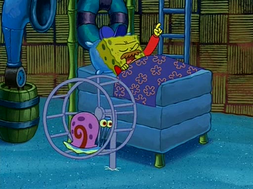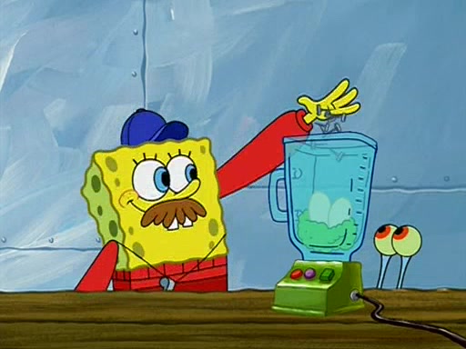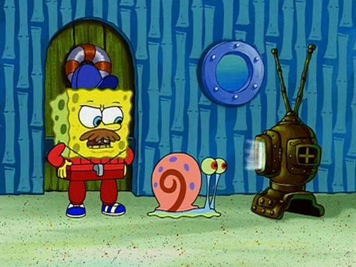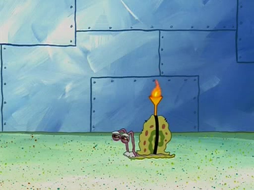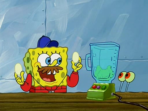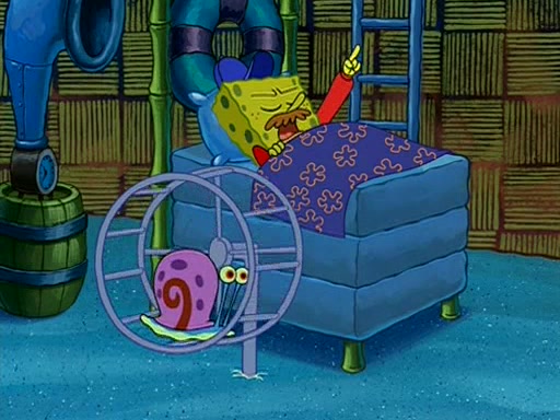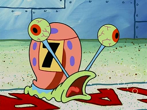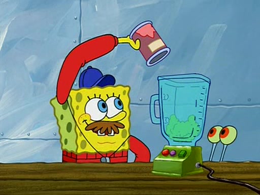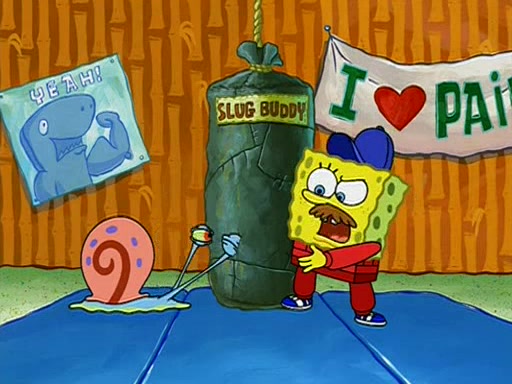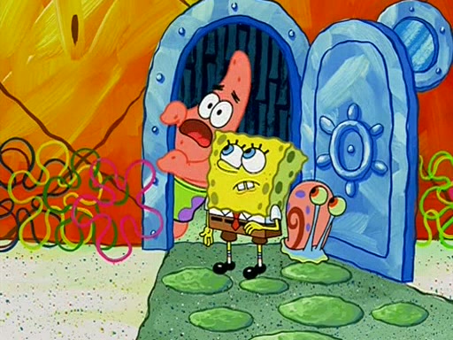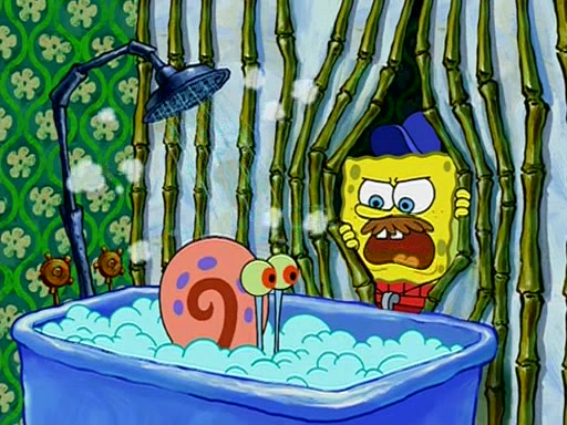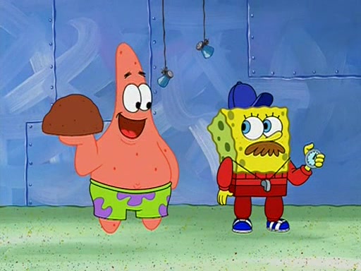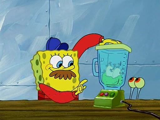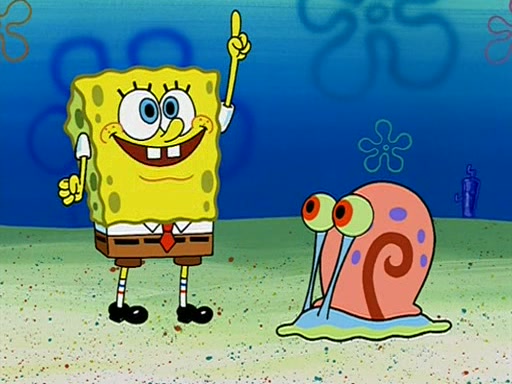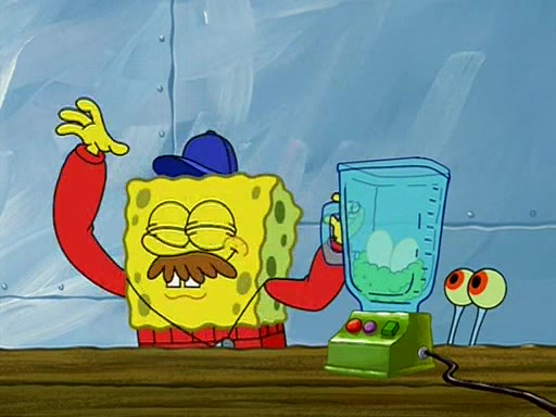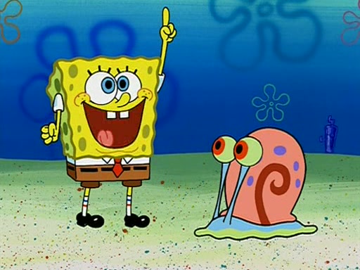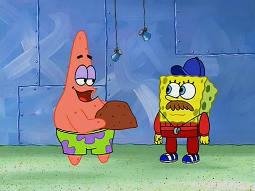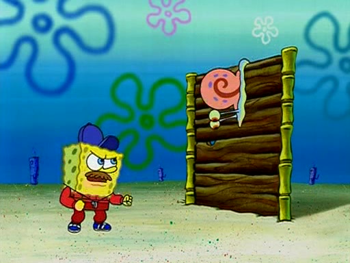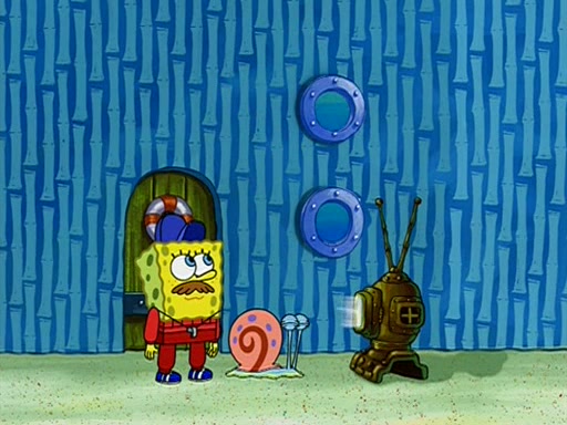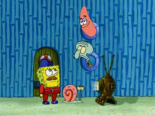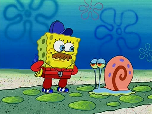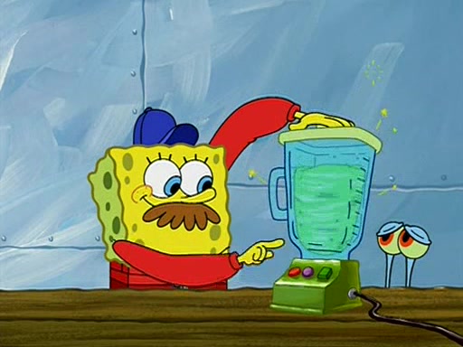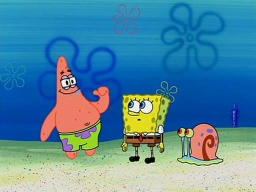 SpongeBob makes a shake with weird ingredients and gives it to Gary, but Gary runs to the living room. Patrick shows SpongeBob his snail, which is a rock. Patrick says he has nerves of steel.