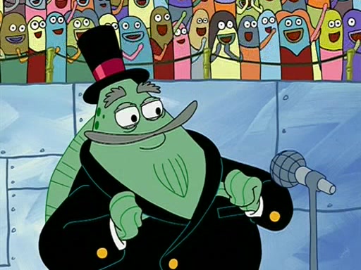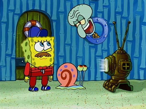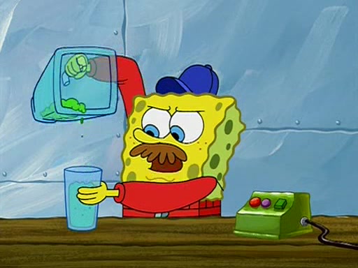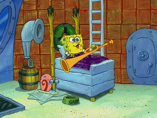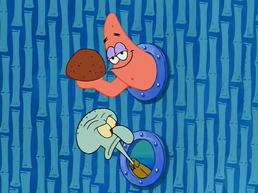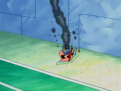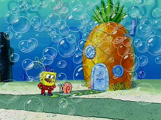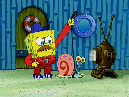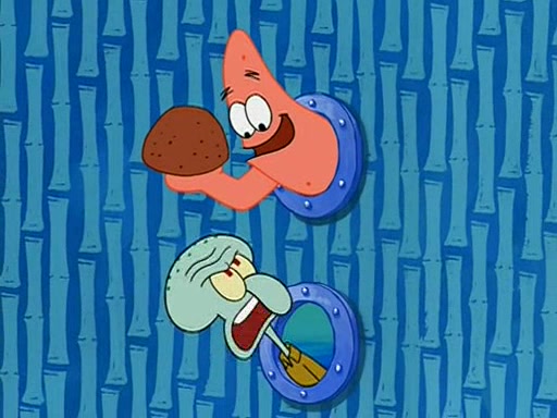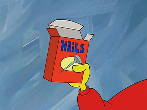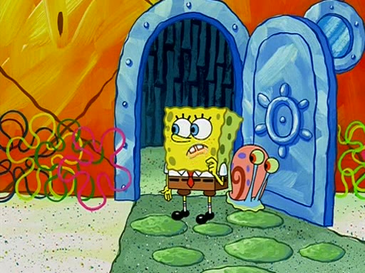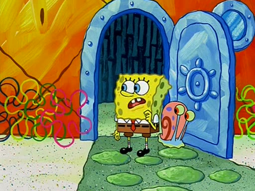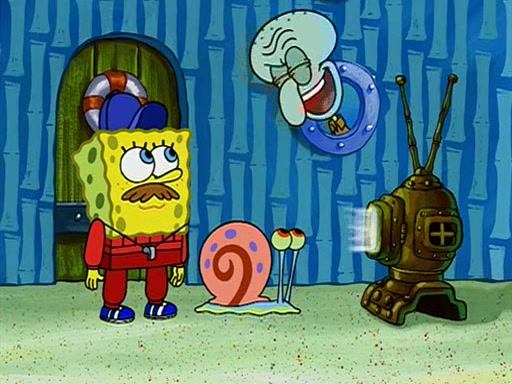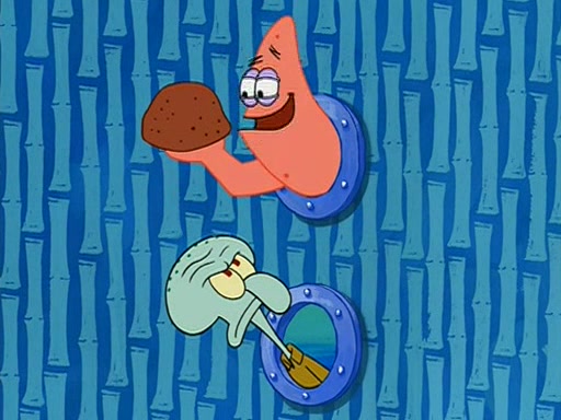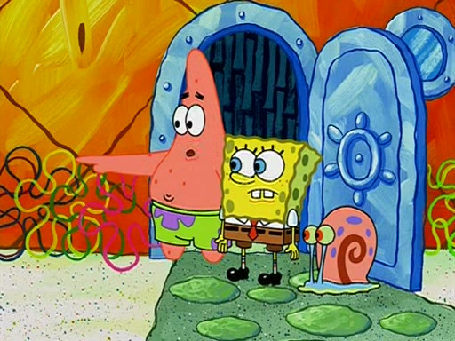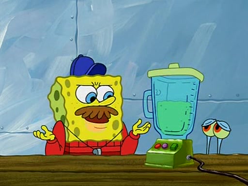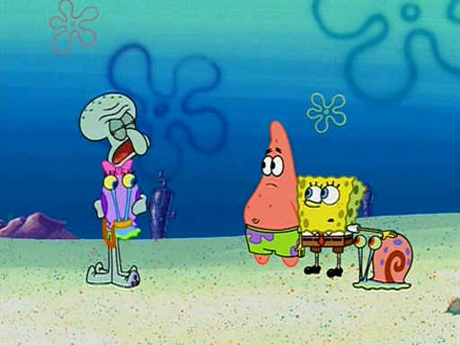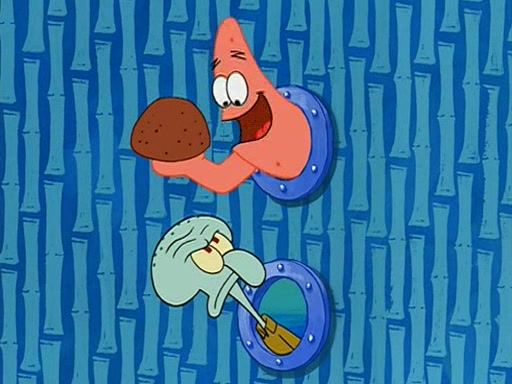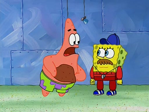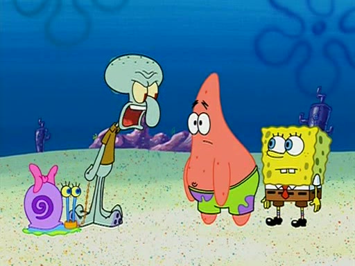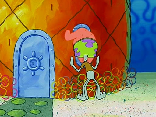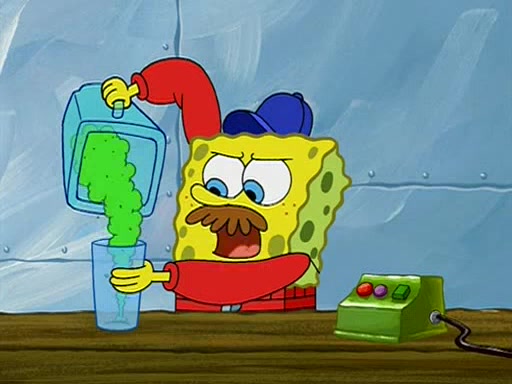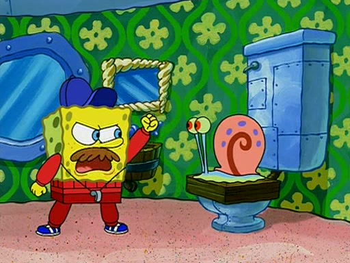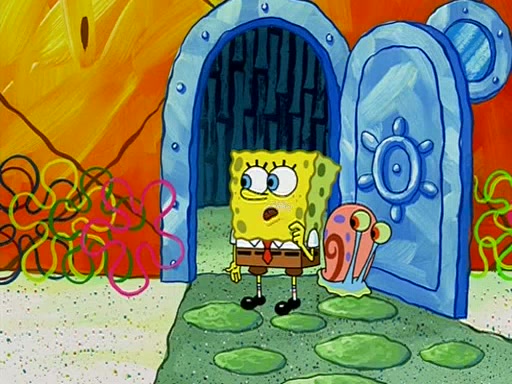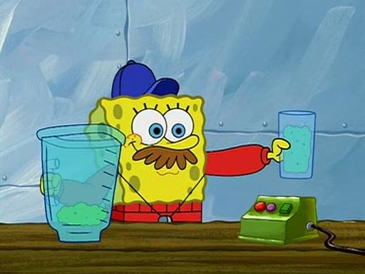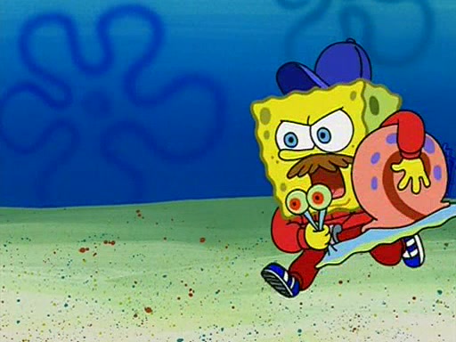 SpongeBob makes a shake with weird ingredients and gives it to Gary, but Gary runs to the living room. Patrick shows SpongeBob his snail, which is a rock. Patrick says he has nerves of steel.