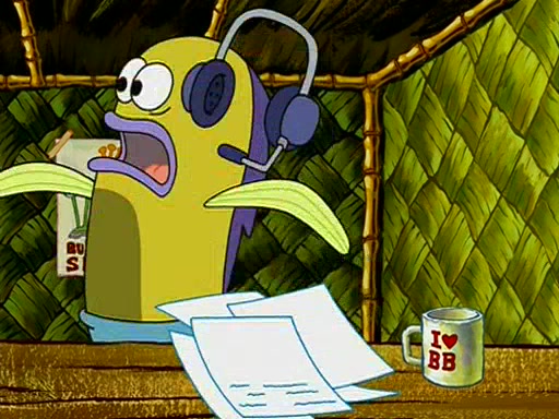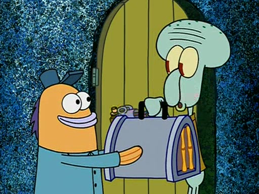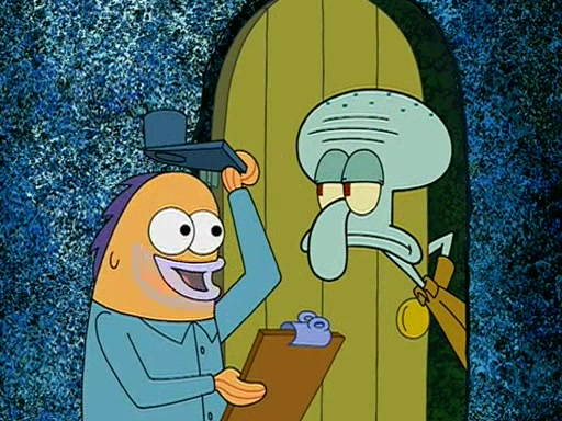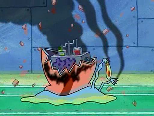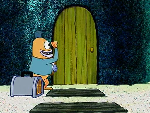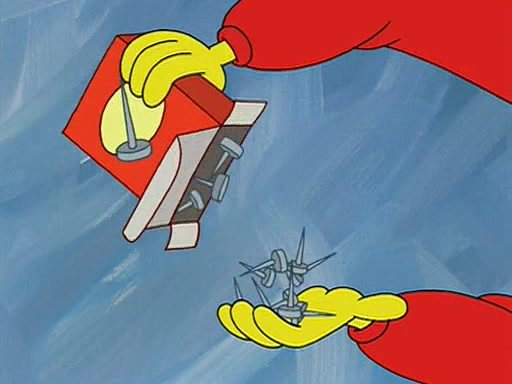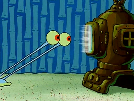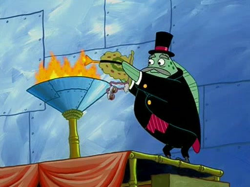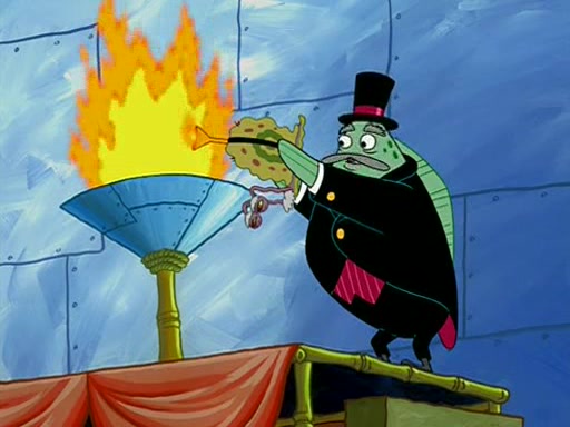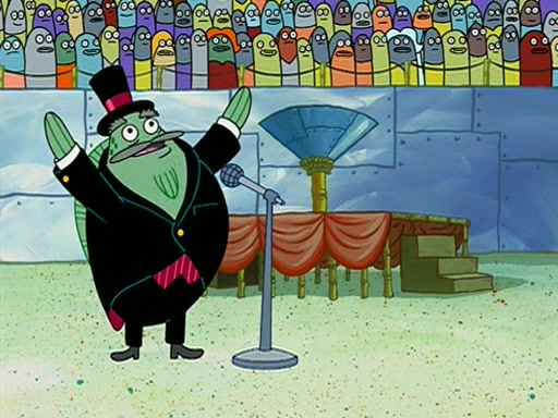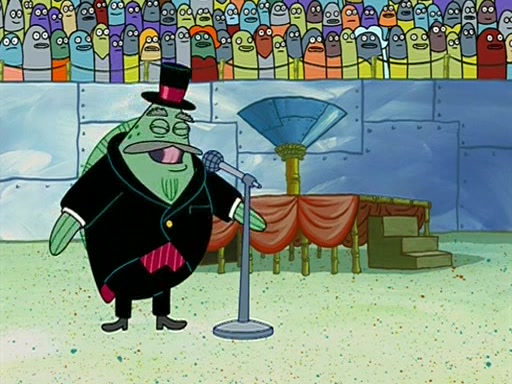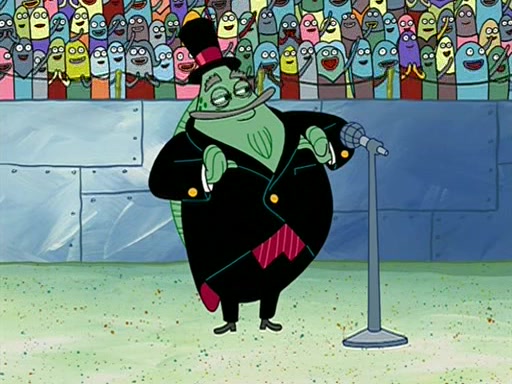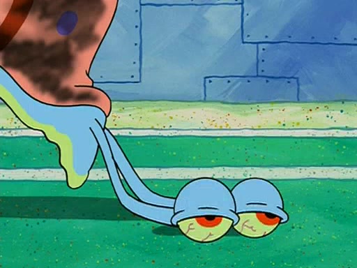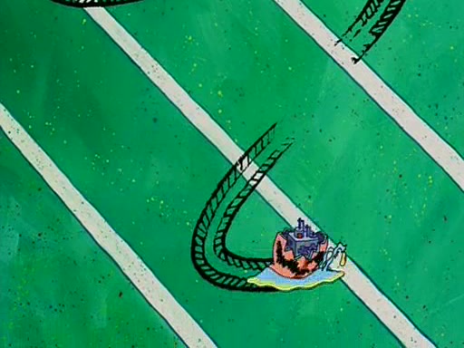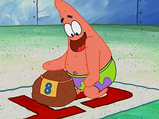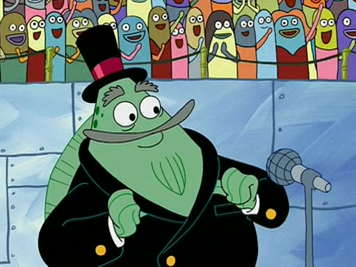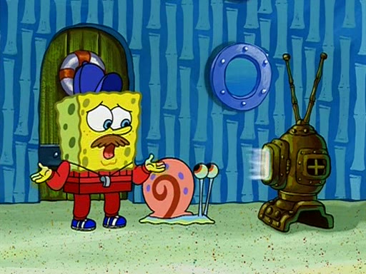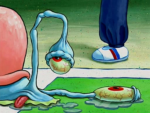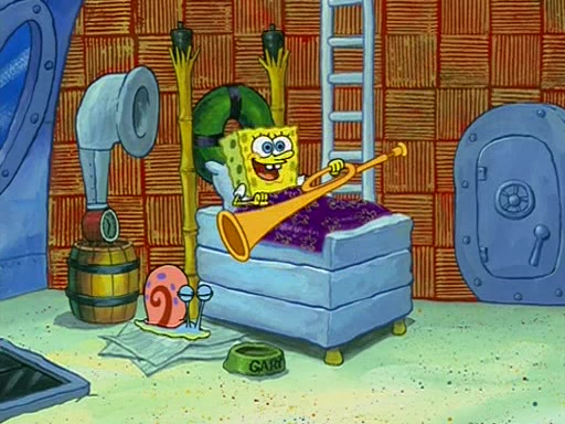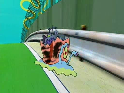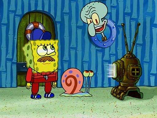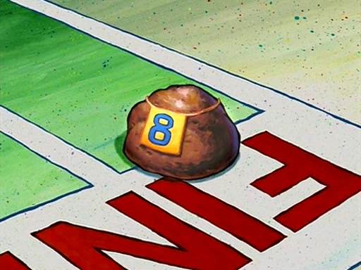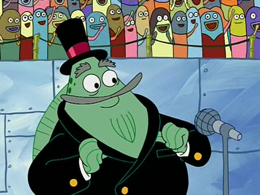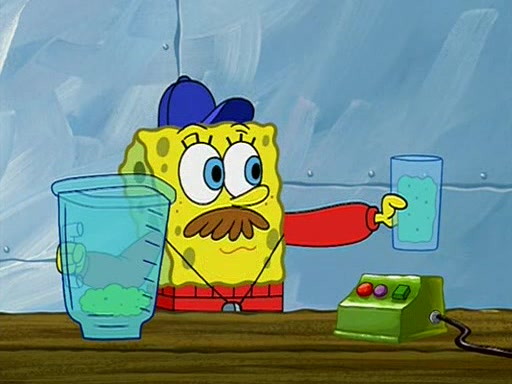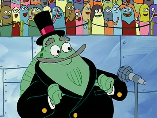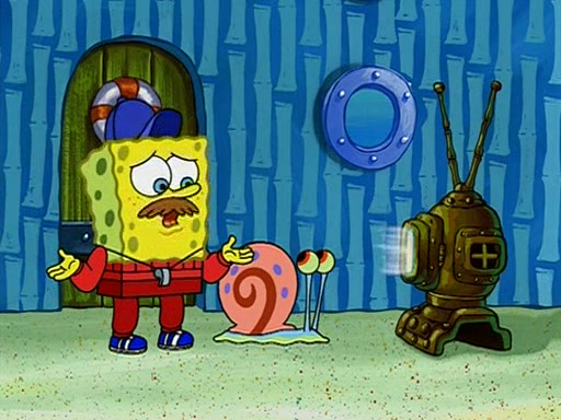 SpongeBob makes a shake with weird ingredients and gives it to Gary, but Gary runs to the living room. Patrick shows SpongeBob his snail, which is a rock. Patrick says he has nerves of steel.