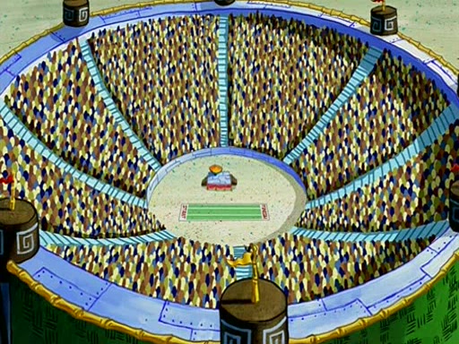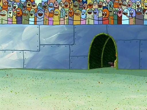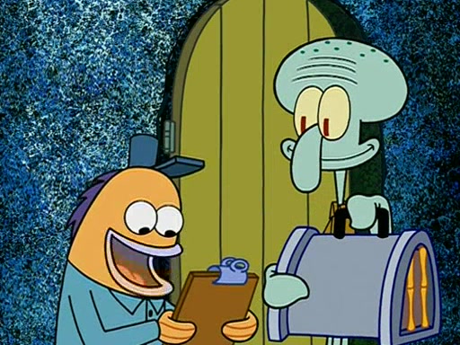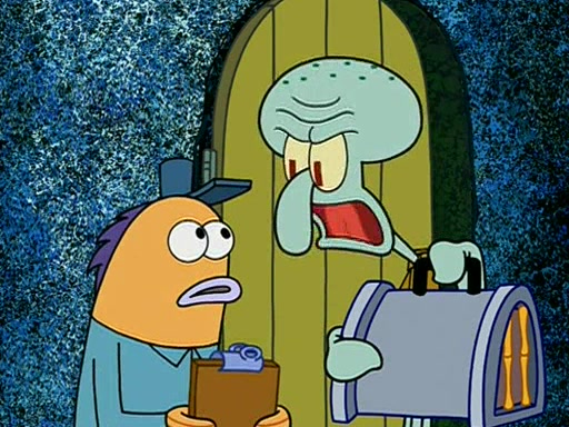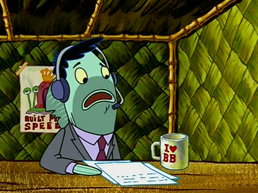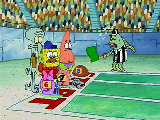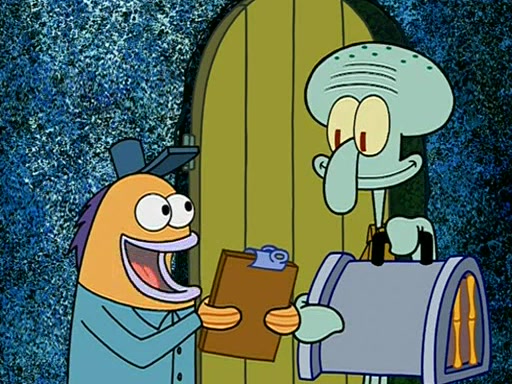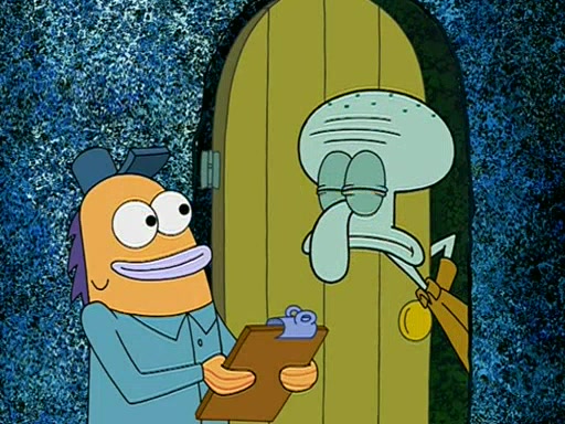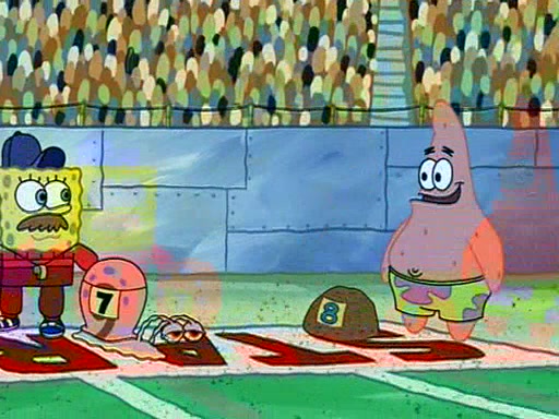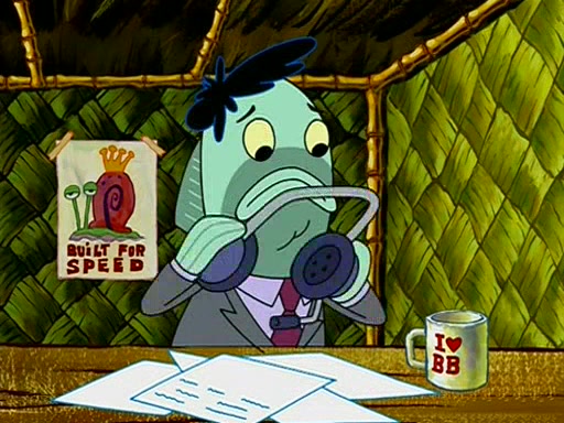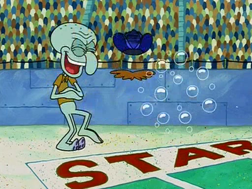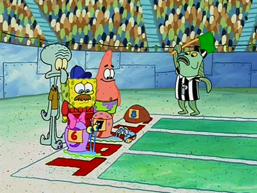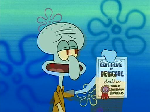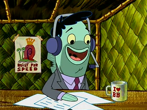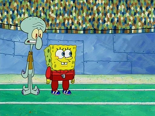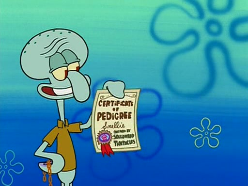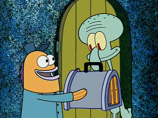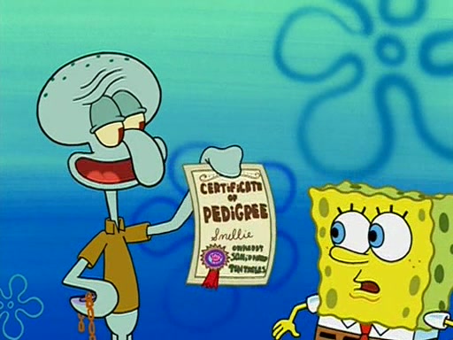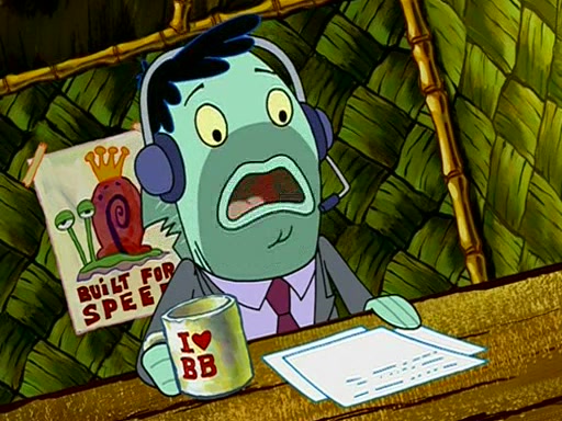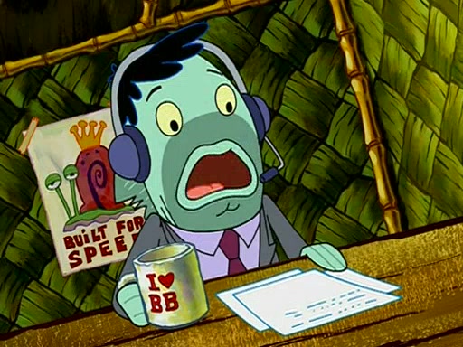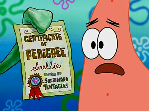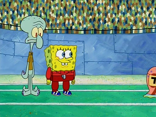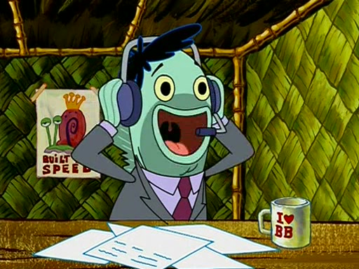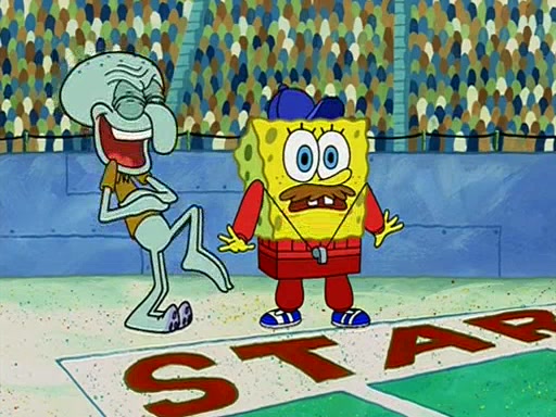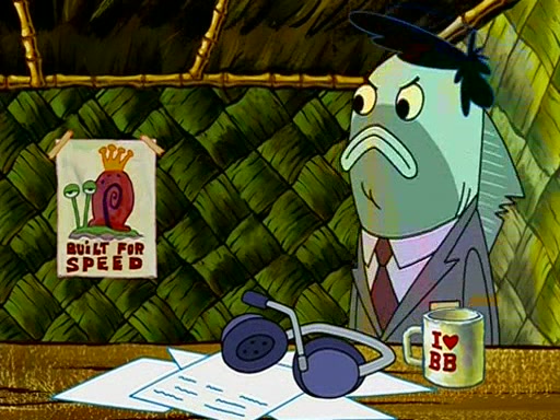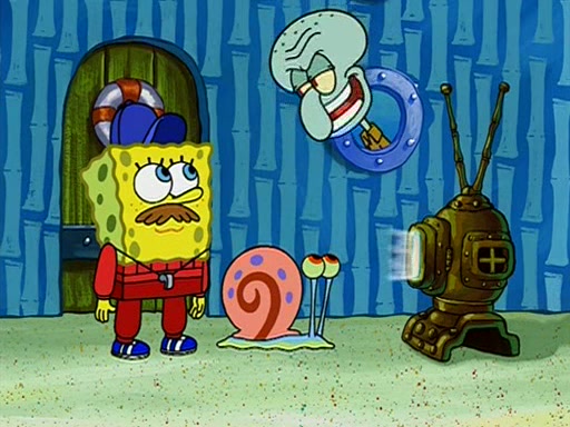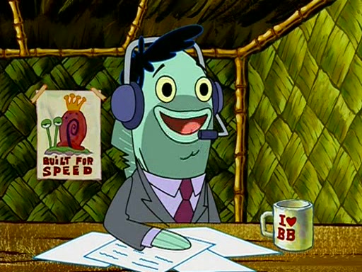 SpongeBob wakes up, as well as waking up Gary. He tells the world he is ready. He sees Squidward getting a package in the mail, with the mailfish erroneously pronouncing his last name as "Tennisballs." SpongeBob questions that Squidward's last name is "Tentacles," and Patrick says poor guy. He opens the cage, which contains a snail named Snellie. Patrick checks out Squidward's new snail. SpongeBob sees this and tells Gary that he has a new little playmate. However, Squidward immediately protests and explains that Snellie is a purebred of the highest pedigree, and that she is going to be entered in the Bikini Bottom Snail Race on Sunday and she will win it. SpongeBob says that he can't enter Gary because Sunday is laundry day. Squidward then tells SpongeBob that he can't enter Gary because Gary is a "mutt," which offends SpongeBob. He asks what makes Squidward think Gary couldn't win. Squidward says the paper. Patrick reads Snellie's pedigree certificate and misreads Squidward's name as "Tentpoles," which makes Squidward angry, yet again. SpongeBob decides to enter Gary into the race. Patrick also decides to enter into the competition. SpongeBob (wearing a play mustache and a coach's outfit) tells Gary to start training now. Sandy is walking and decides to kick SpongeBob's butt tomorrow, but she doesn't know why.