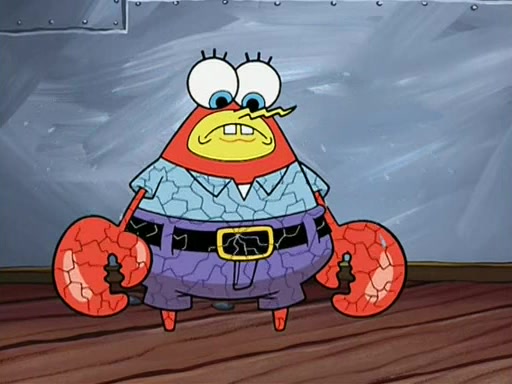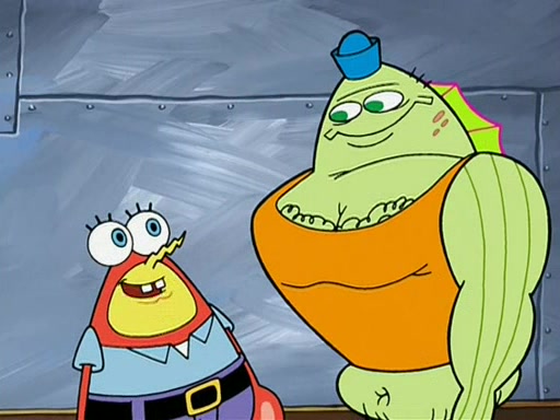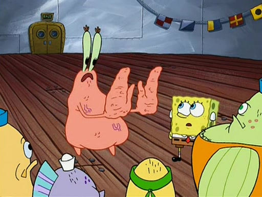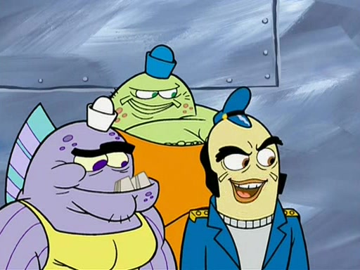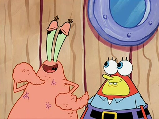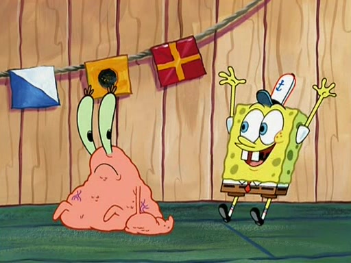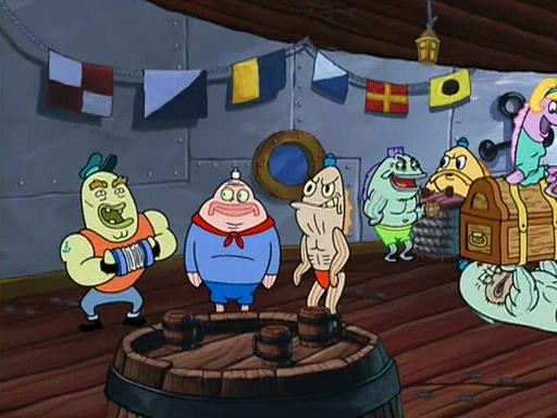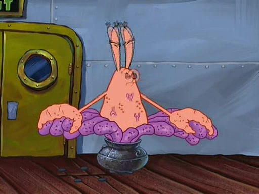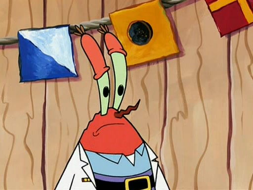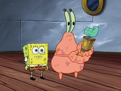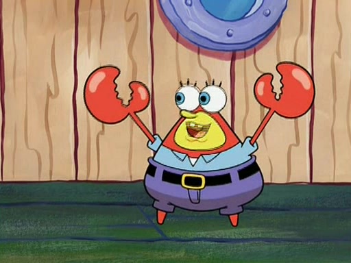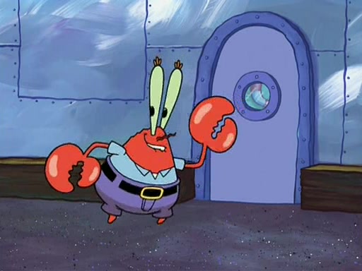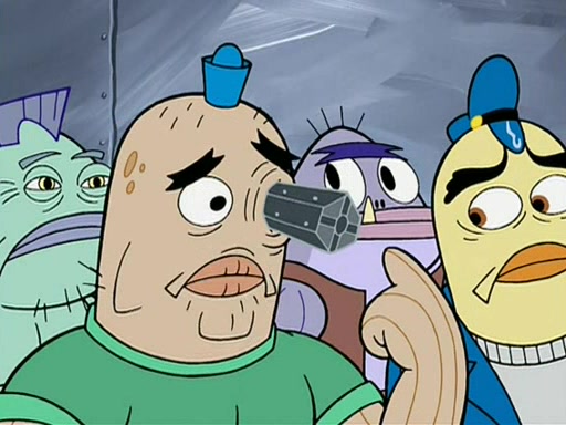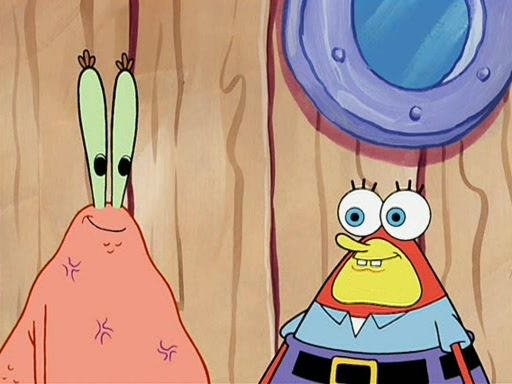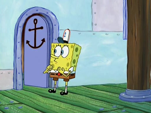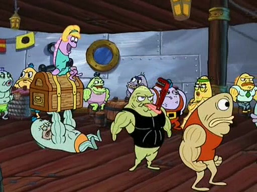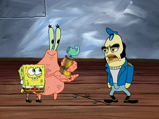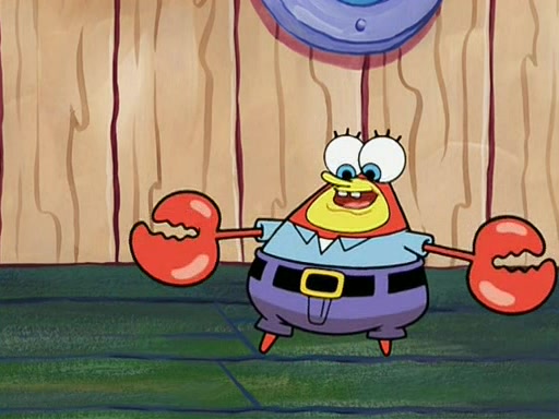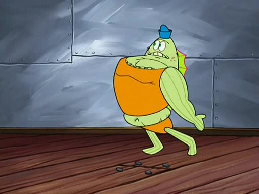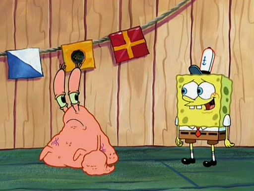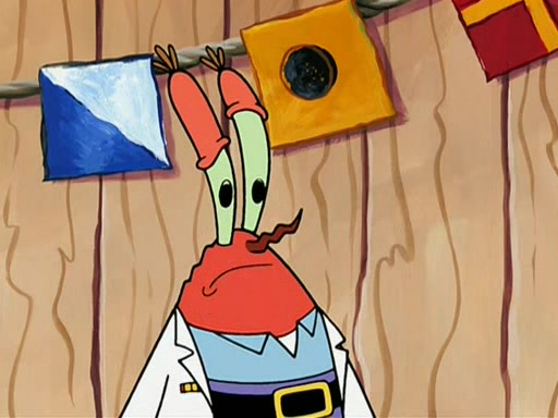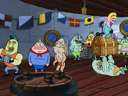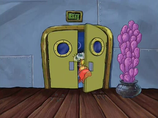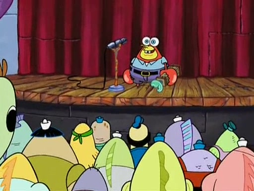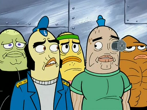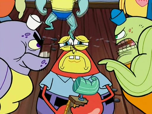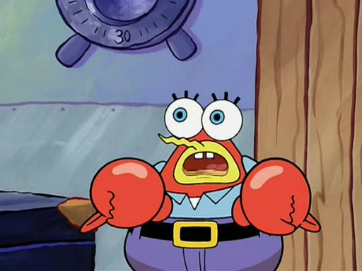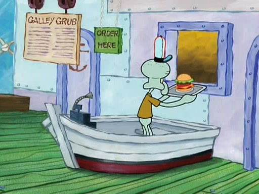 At the Krusty Krab, SpongeBob is making a Krabby Patty, and when he is finished, he cries as he gives it to Squidward so that he can give it to customer number 5. The customer is revealed to be SpongeBob, who grabs the order, and eats it. Meanwhile, outside the Krusty Krab, Mr. Krabs calls SpongeBob into his "Hidey Hole" under the dumpster, where he keeps his belongings from when he was in the Navy in a treasure chest. They take it into Mr. Krabs's office, and Mr. Krabs tells SpongeBob about his old Navy buddies and his nickname "Armor Abs Krabs," and that his Navy Reunion is tonight. Krabs then tells SpongeBob to leave him to revel in his memories and get his work station in "shipshape," which he does with great enthusiasm. SpongeBob soon hears Mr. Krabs scream, and goes into his office, where he finds that Mr. Krabs has molted his shell, leaving him a flabby mess. He kicks his shell in frustration, causing it to fly into SpongeBob, who becomes stuck inside it. Mr. Krabs then tells SpongeBob to assume his identity at the reunion so that his Navy friends will not see him in this state.