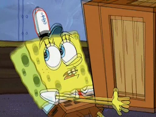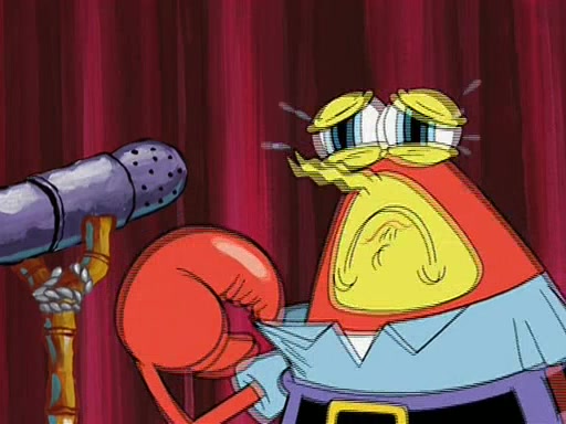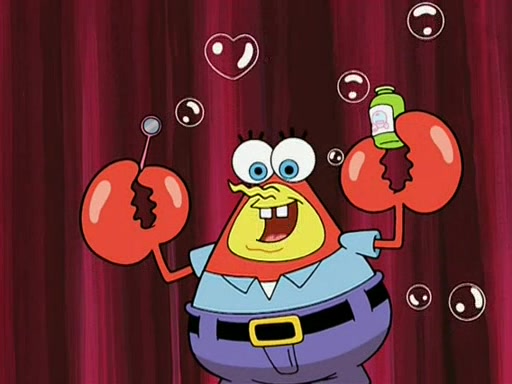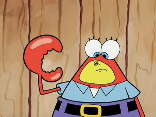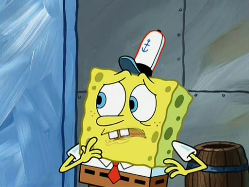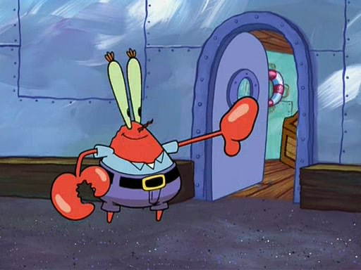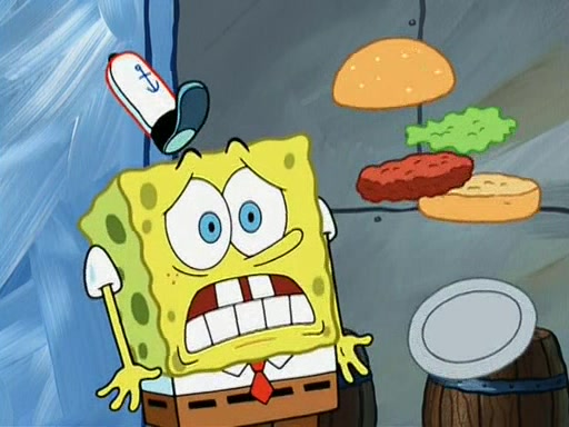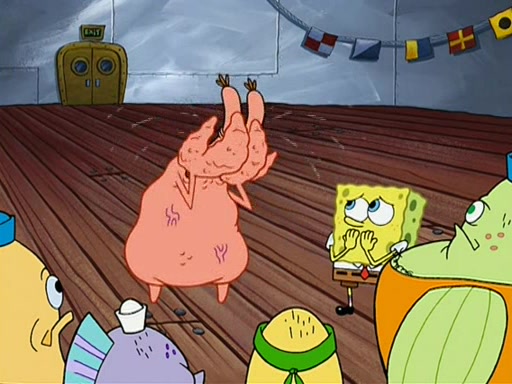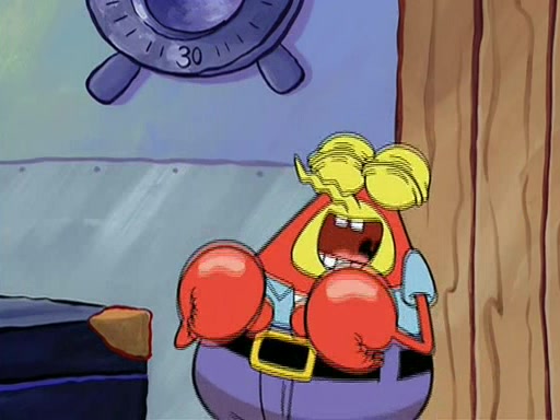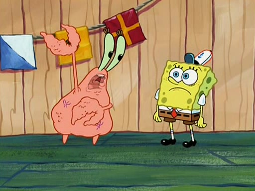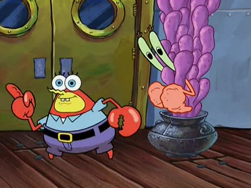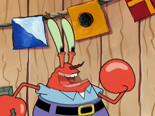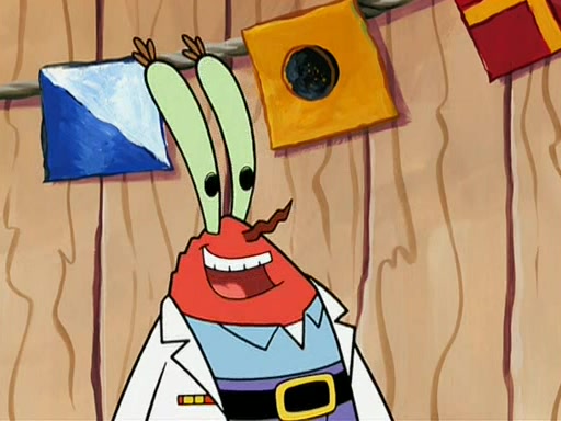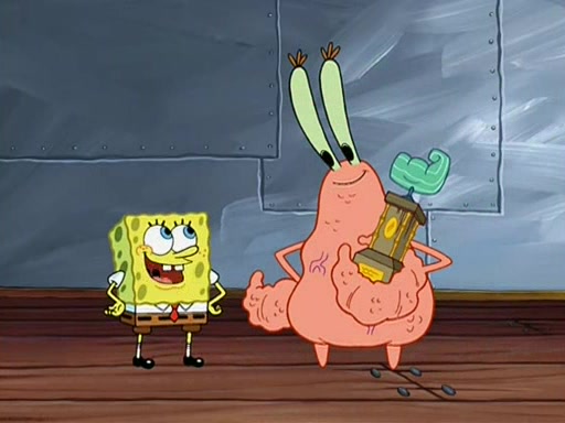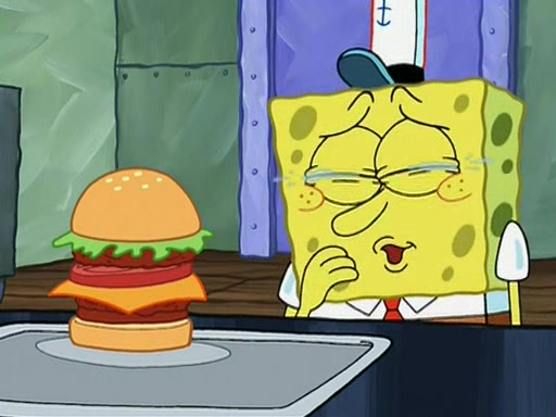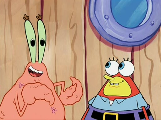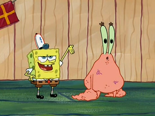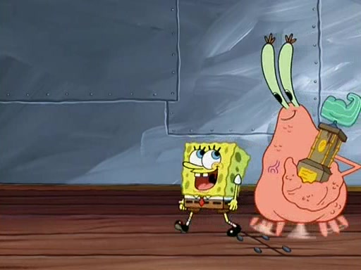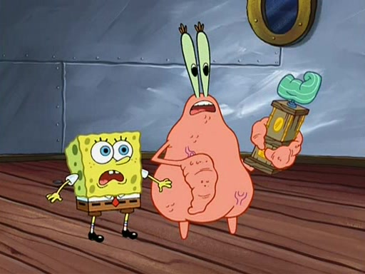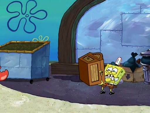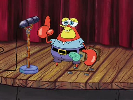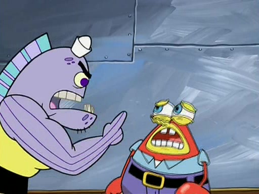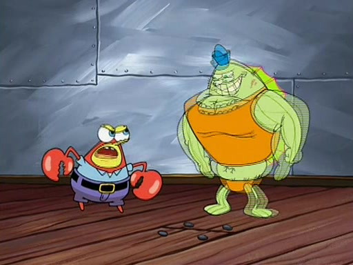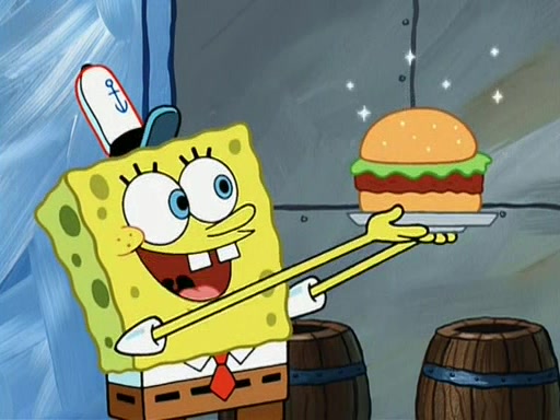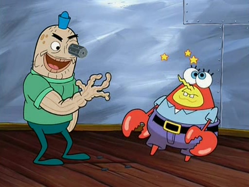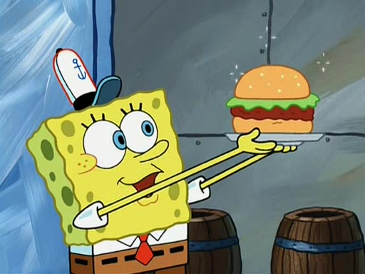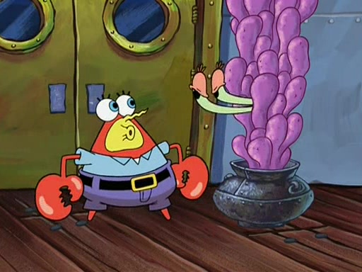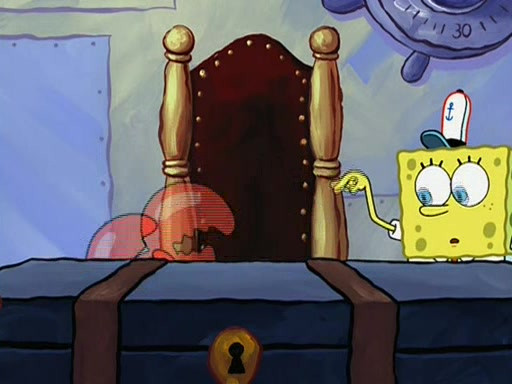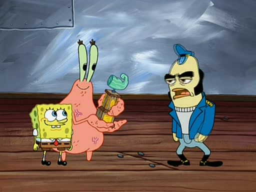 At the Krusty Krab, SpongeBob is making a Krabby Patty, and when he is finished, he cries as he gives it to Squidward so that he can give it to customer number 5. The customer is revealed to be SpongeBob, who grabs the order, and eats it. Meanwhile, outside the Krusty Krab, Mr. Krabs calls SpongeBob into his "Hidey Hole" under the dumpster, where he keeps his belongings from when he was in the Navy in a treasure chest. They take it into Mr. Krabs's office, and Mr. Krabs tells SpongeBob about his old Navy buddies and his nickname "Armor Abs Krabs," and that his Navy Reunion is tonight. Krabs then tells SpongeBob to leave him to revel in his memories and get his work station in "shipshape," which he does with great enthusiasm. SpongeBob soon hears Mr. Krabs scream, and goes into his office, where he finds that Mr. Krabs has molted his shell, leaving him a flabby mess. He kicks his shell in frustration, causing it to fly into SpongeBob, who becomes stuck inside it. Mr. Krabs then tells SpongeBob to assume his identity at the reunion so that his Navy friends will not see him in this state.