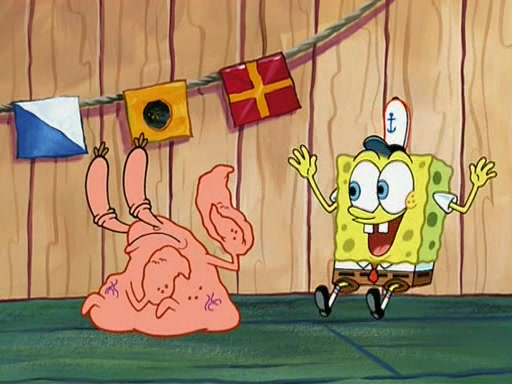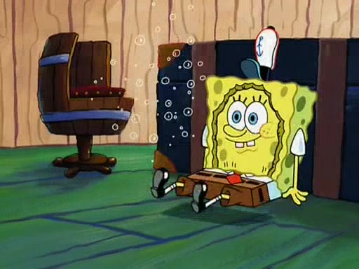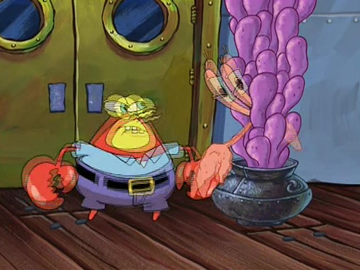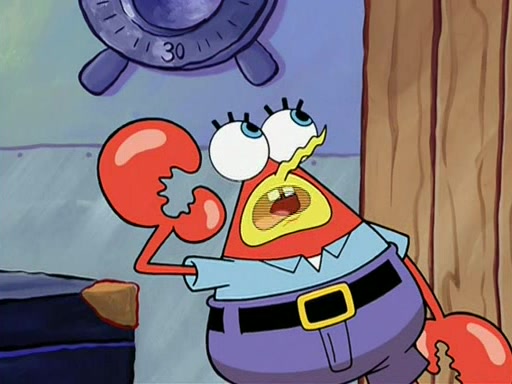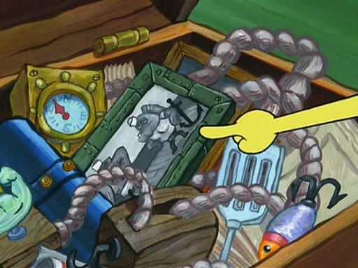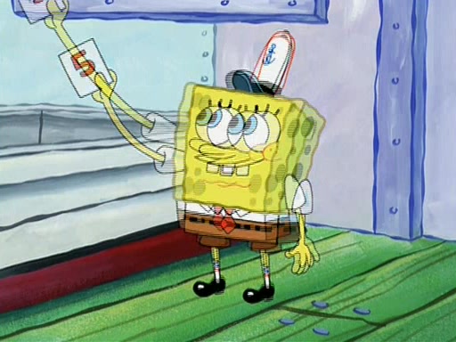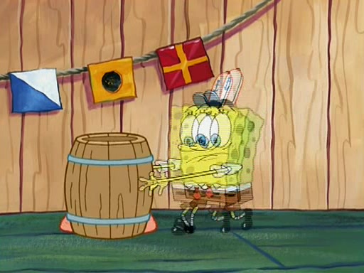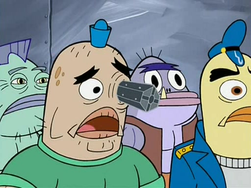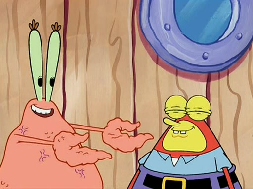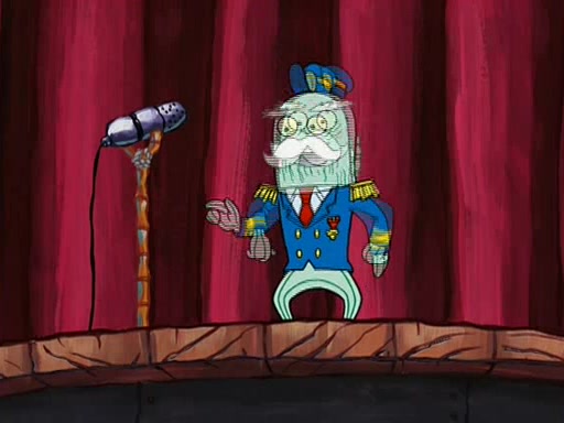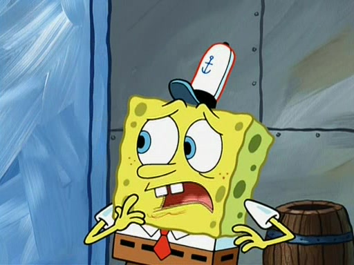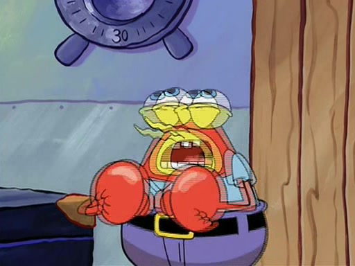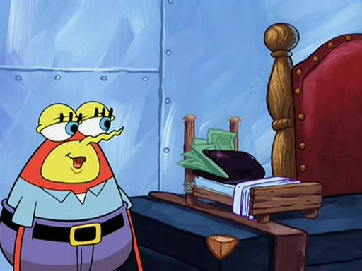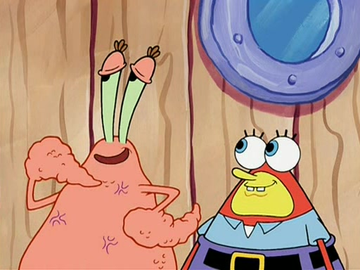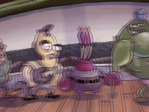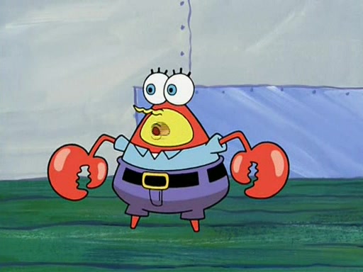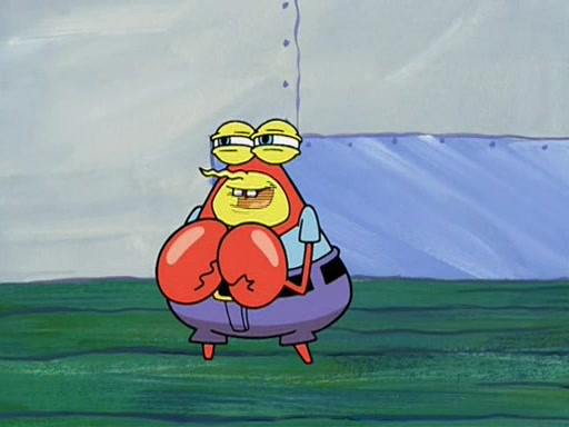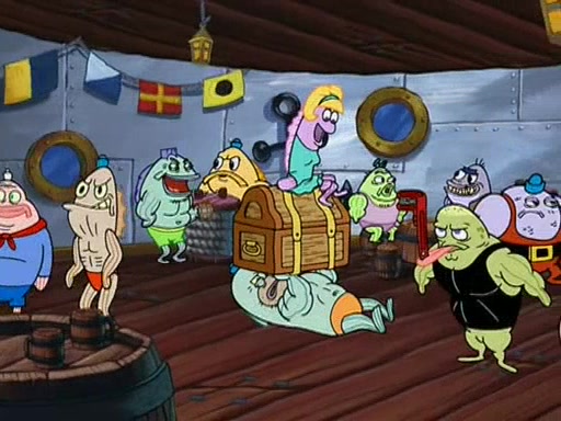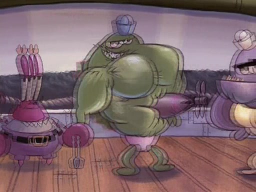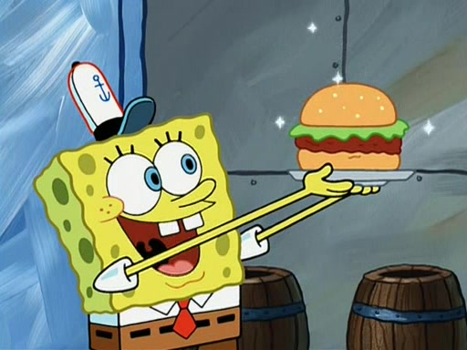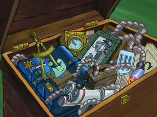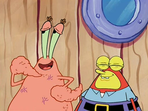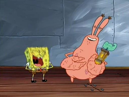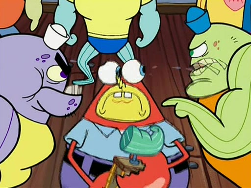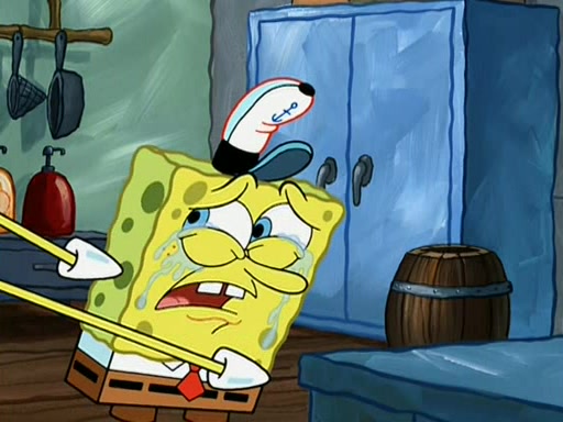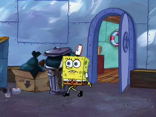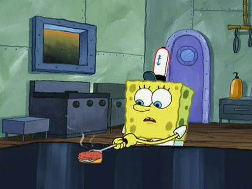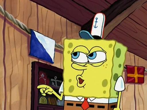 At the Krusty Krab, SpongeBob is making a Krabby Patty, and when he is finished, he cries as he gives it to Squidward so that he can give it to customer number 5. The customer is revealed to be SpongeBob, who grabs the order, and eats it. Meanwhile, outside the Krusty Krab, Mr. Krabs calls SpongeBob into his "Hidey Hole" under the dumpster, where he keeps his belongings from when he was in the Navy in a treasure chest. They take it into Mr. Krabs's office, and Mr. Krabs tells SpongeBob about his old Navy buddies and his nickname "Armor Abs Krabs," and that his Navy Reunion is tonight. Krabs then tells SpongeBob to leave him to revel in his memories and get his work station in "shipshape," which he does with great enthusiasm. SpongeBob soon hears Mr. Krabs scream, and goes into his office, where he finds that Mr. Krabs has molted his shell, leaving him a flabby mess. He kicks his shell in frustration, causing it to fly into SpongeBob, who becomes stuck inside it. Mr. Krabs then tells SpongeBob to assume his identity at the reunion so that his Navy friends will not see him in this state.