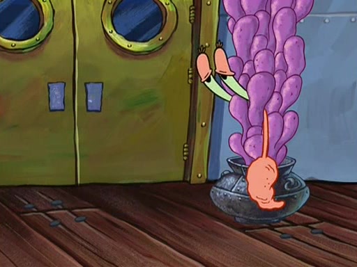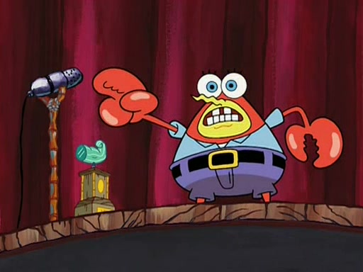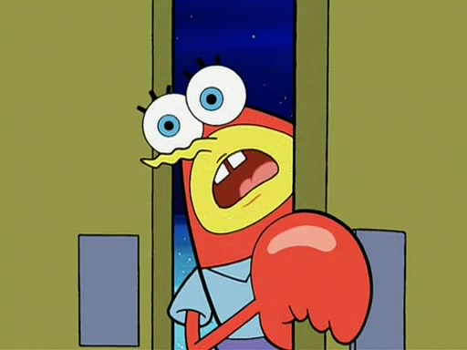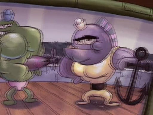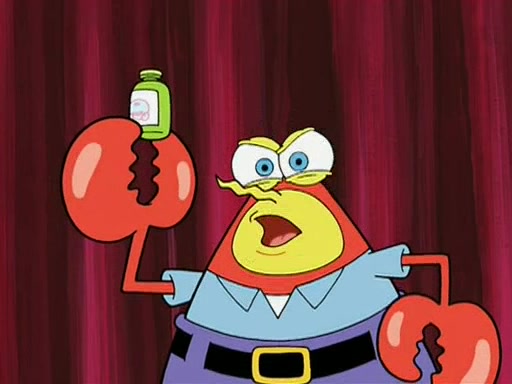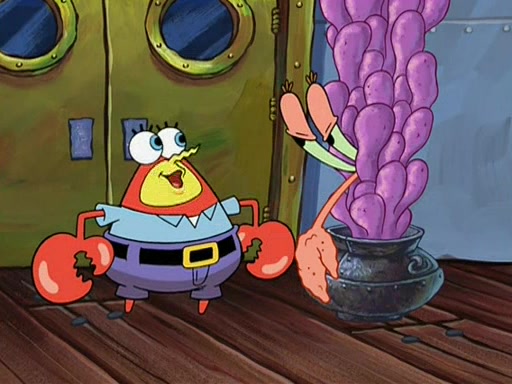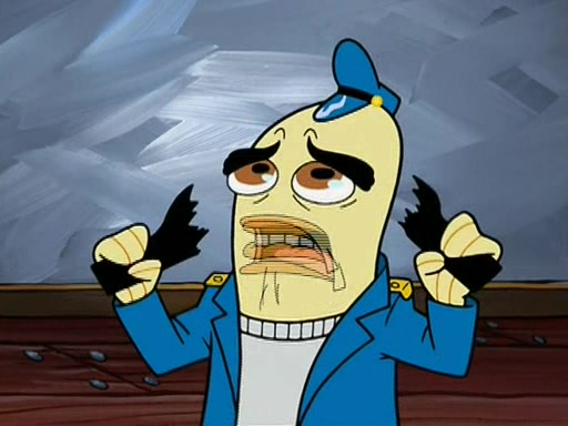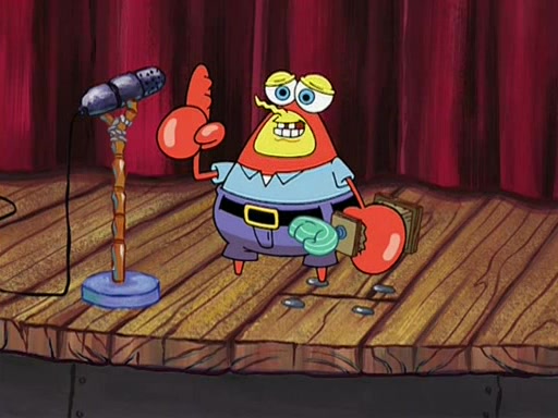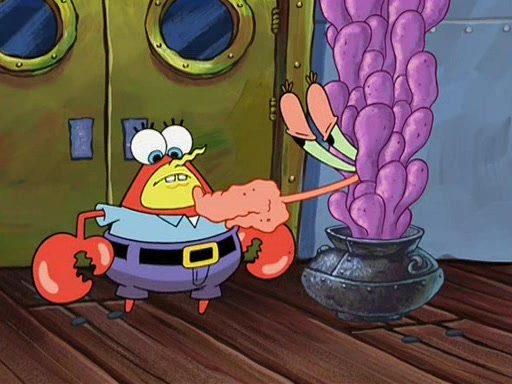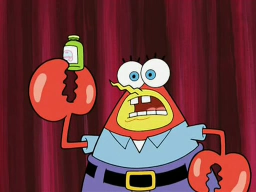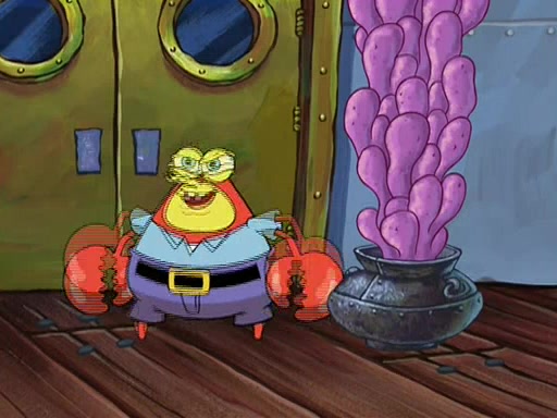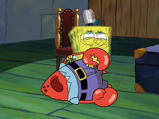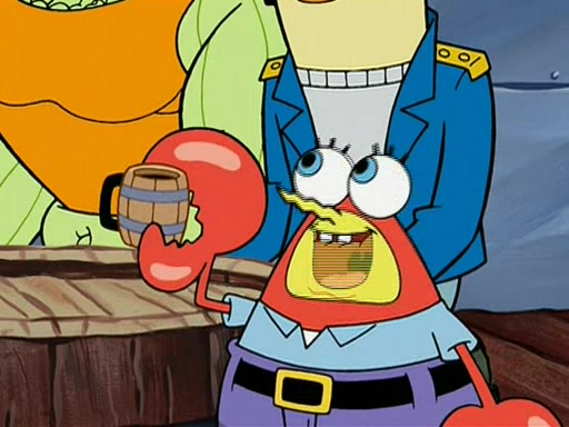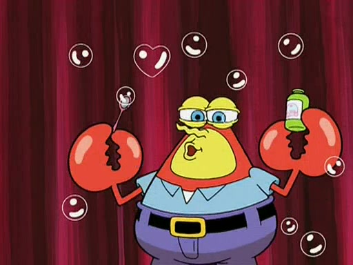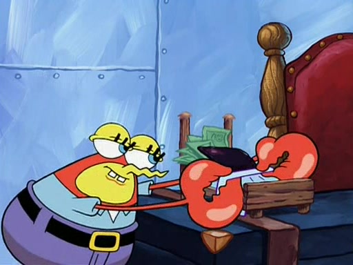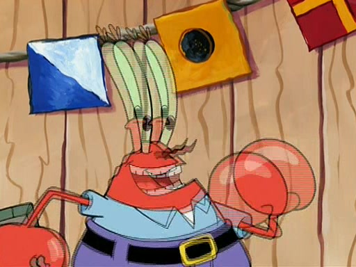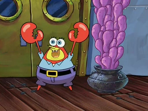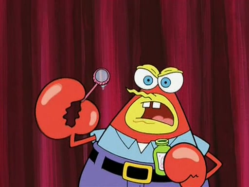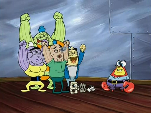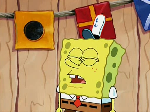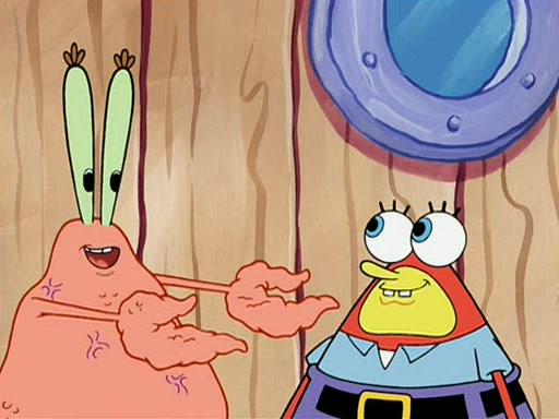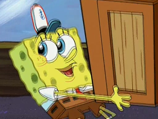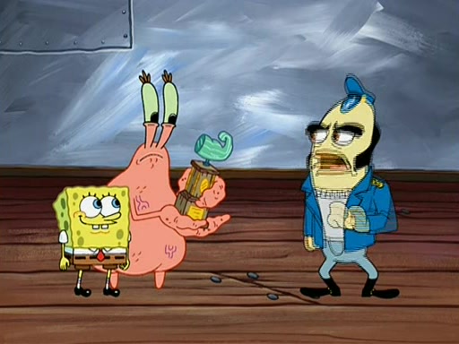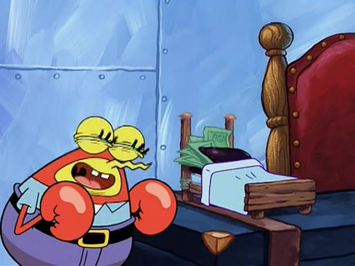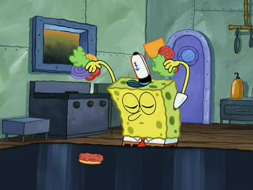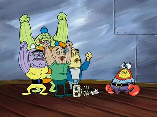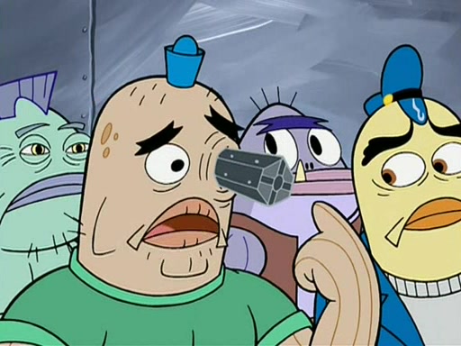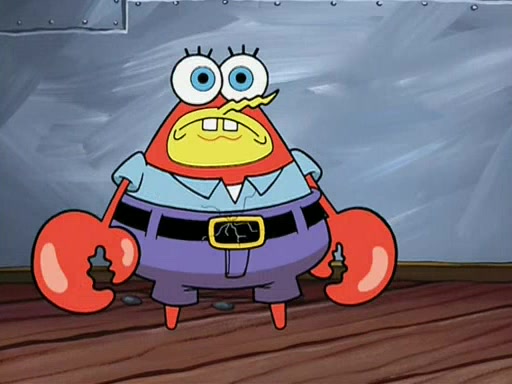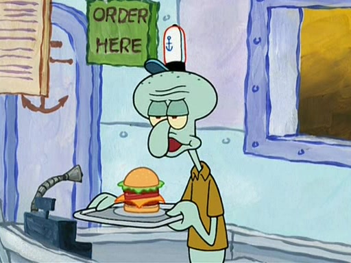 At the Krusty Krab, SpongeBob is making a Krabby Patty, and when he is finished, he cries as he gives it to Squidward so that he can give it to customer number 5. The customer is revealed to be SpongeBob, who grabs the order, and eats it. Meanwhile, outside the Krusty Krab, Mr. Krabs calls SpongeBob into his "Hidey Hole" under the dumpster, where he keeps his belongings from when he was in the Navy in a treasure chest. They take it into Mr. Krabs's office, and Mr. Krabs tells SpongeBob about his old Navy buddies and his nickname "Armor Abs Krabs," and that his Navy Reunion is tonight. Krabs then tells SpongeBob to leave him to revel in his memories and get his work station in "shipshape," which he does with great enthusiasm. SpongeBob soon hears Mr. Krabs scream, and goes into his office, where he finds that Mr. Krabs has molted his shell, leaving him a flabby mess. He kicks his shell in frustration, causing it to fly into SpongeBob, who becomes stuck inside it. Mr. Krabs then tells SpongeBob to assume his identity at the reunion so that his Navy friends will not see him in this state.