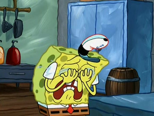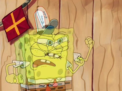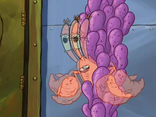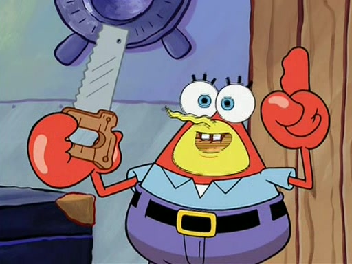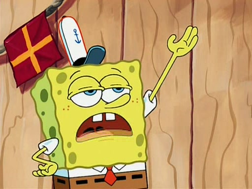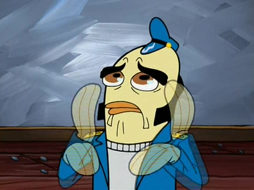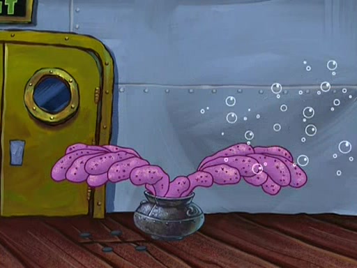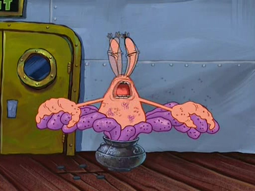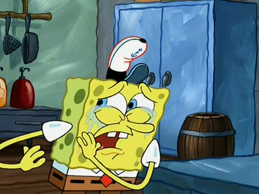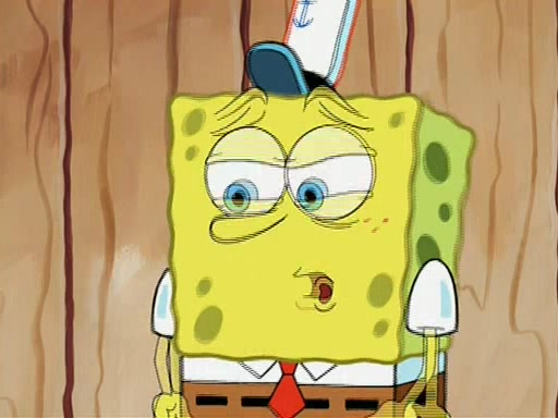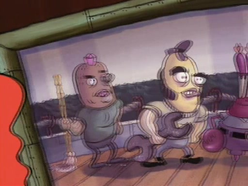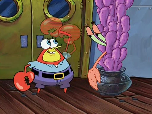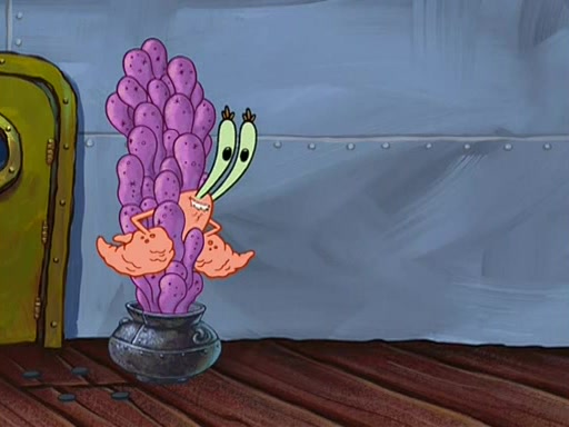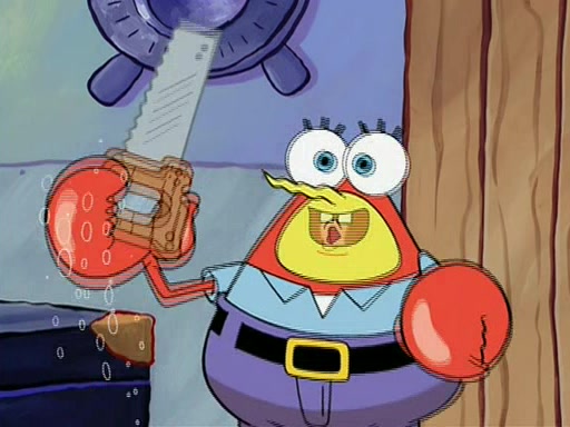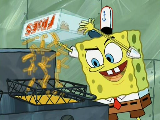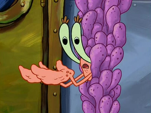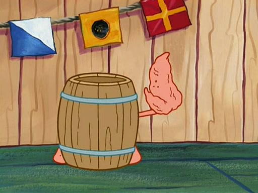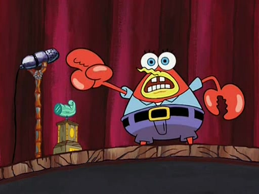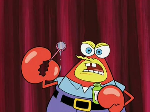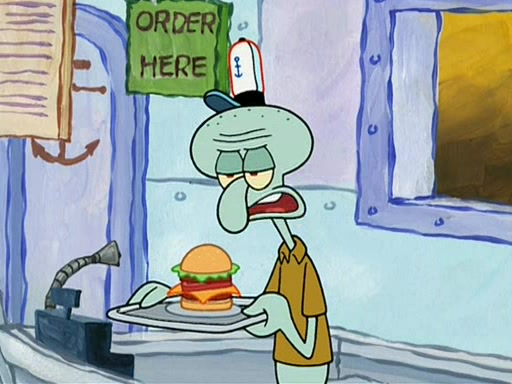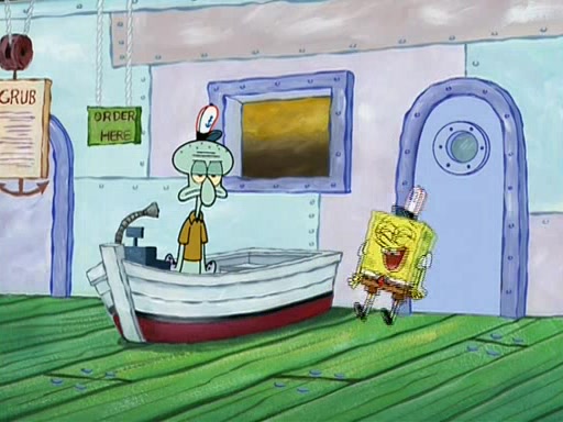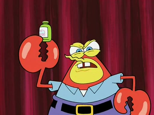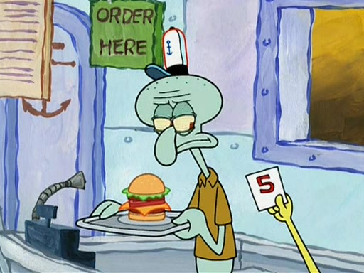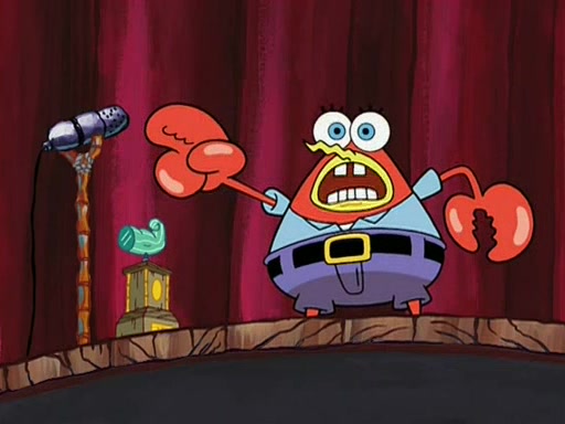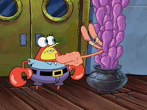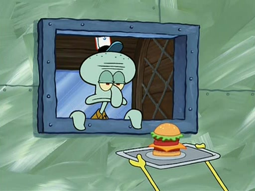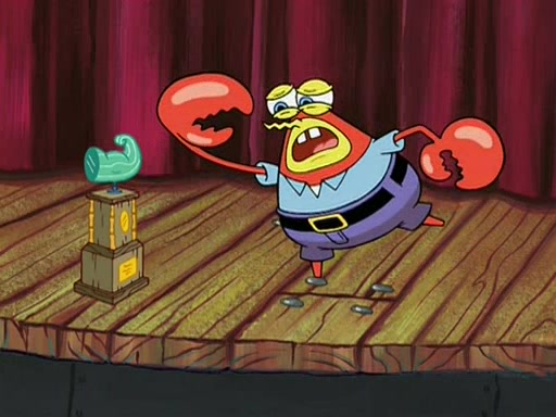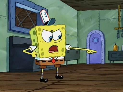 At the Krusty Krab, SpongeBob is making a Krabby Patty, and when he is finished, he cries as he gives it to Squidward so that he can give it to customer number 5. The customer is revealed to be SpongeBob, who grabs the order, and eats it. Meanwhile, outside the Krusty Krab, Mr. Krabs calls SpongeBob into his "Hidey Hole" under the dumpster, where he keeps his belongings from when he was in the Navy in a treasure chest. They take it into Mr. Krabs's office, and Mr. Krabs tells SpongeBob about his old Navy buddies and his nickname "Armor Abs Krabs," and that his Navy Reunion is tonight. Krabs then tells SpongeBob to leave him to revel in his memories and get his work station in "shipshape," which he does with great enthusiasm. SpongeBob soon hears Mr. Krabs scream, and goes into his office, where he finds that Mr. Krabs has molted his shell, leaving him a flabby mess. He kicks his shell in frustration, causing it to fly into SpongeBob, who becomes stuck inside it. Mr. Krabs then tells SpongeBob to assume his identity at the reunion so that his Navy friends will not see him in this state.