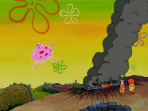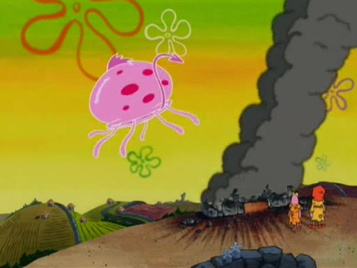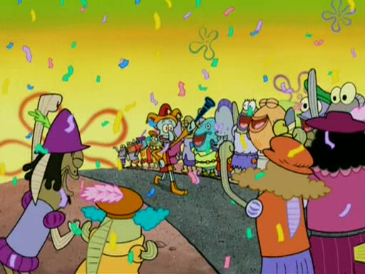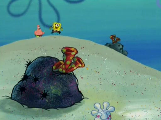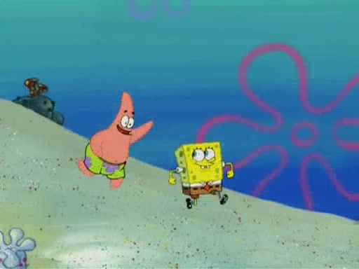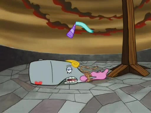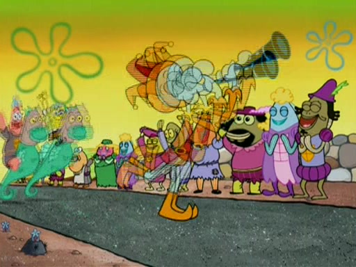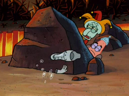 They land back at the tournament in present day, and SpongeBob says, "I guess I shouldn't have agitated that Seahorse. That was some dream I had, eh Patrick?" Patrick then replies, "Try telling that to Squidly." He then stands up, revealing a horribly squashed Squidly underneath him. Then Squidly makes makes a note on his clarinet.