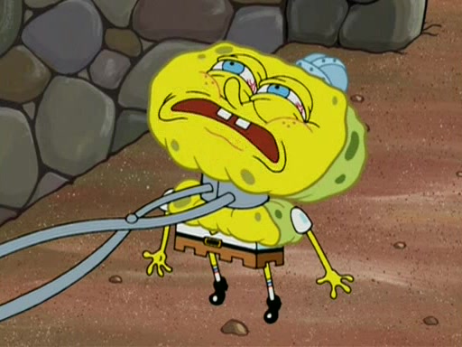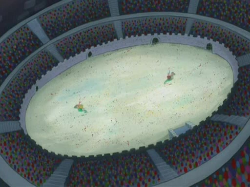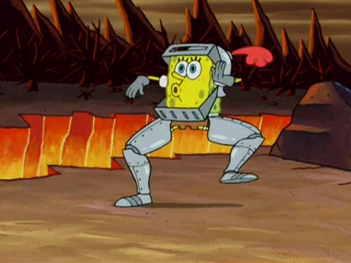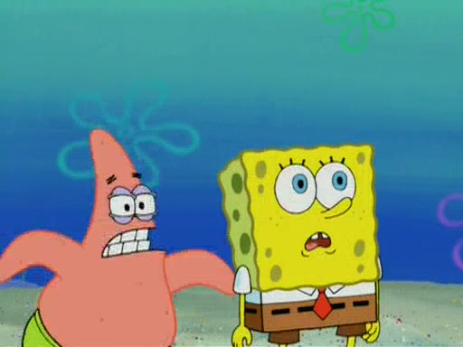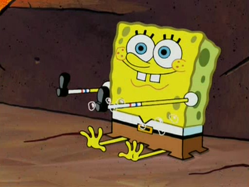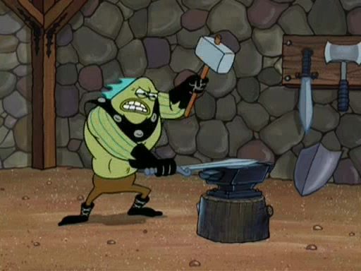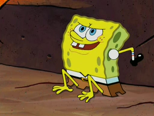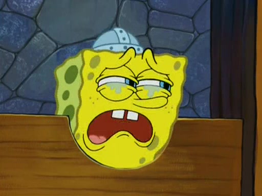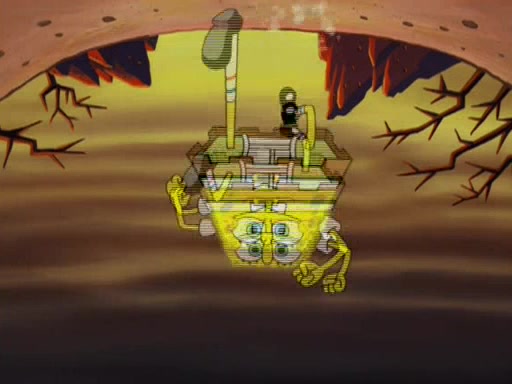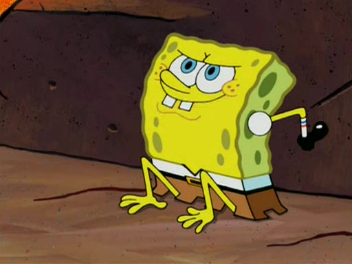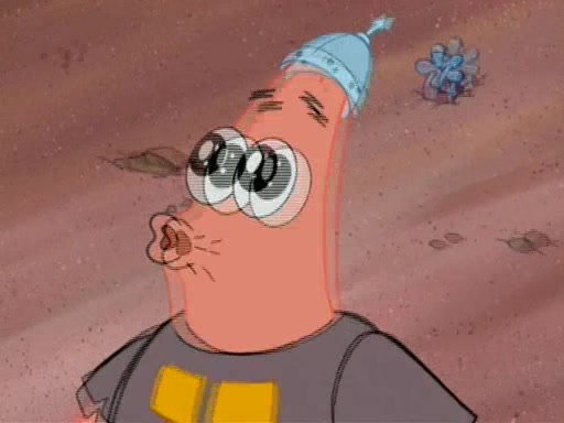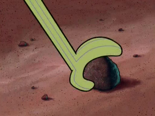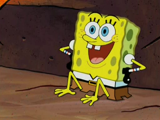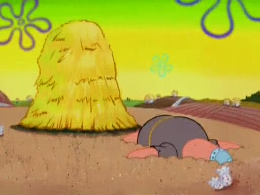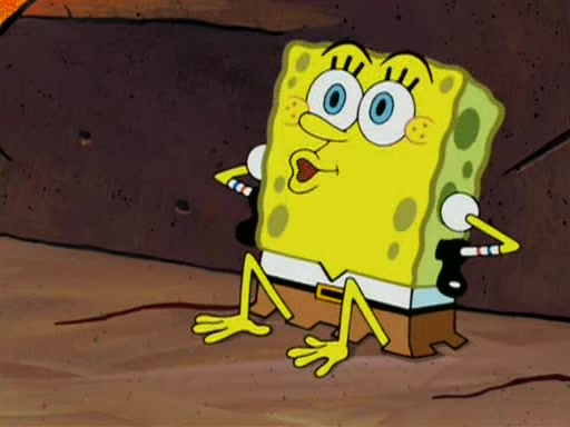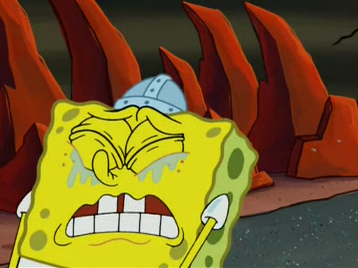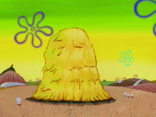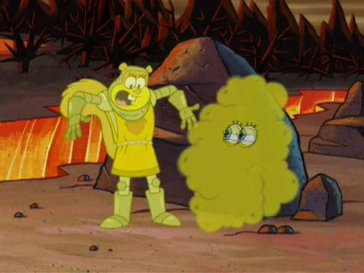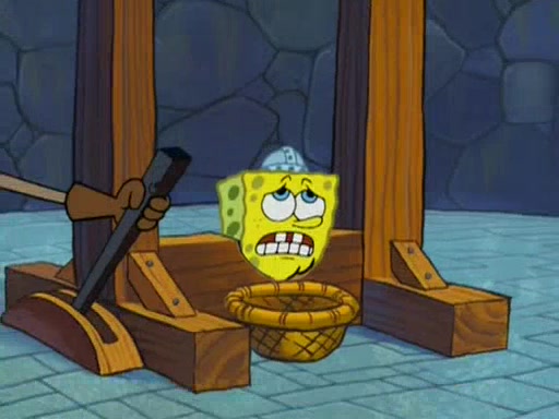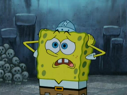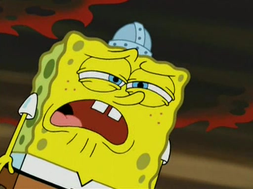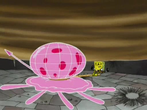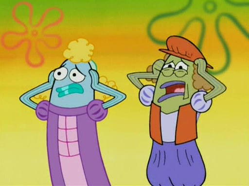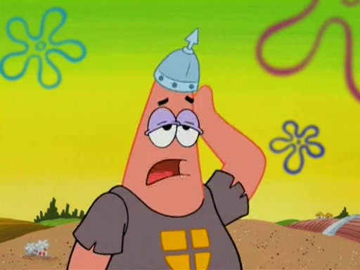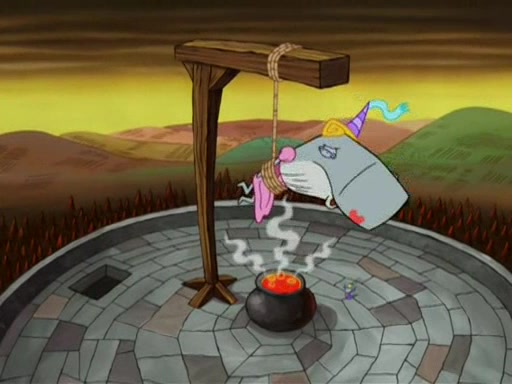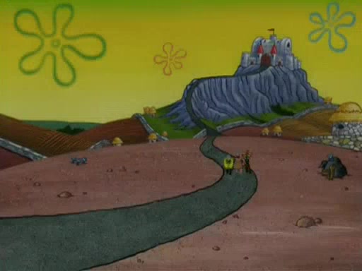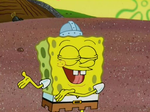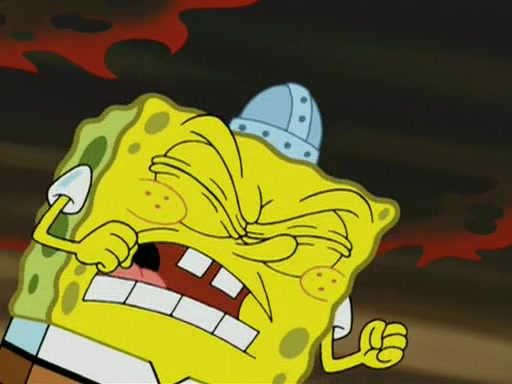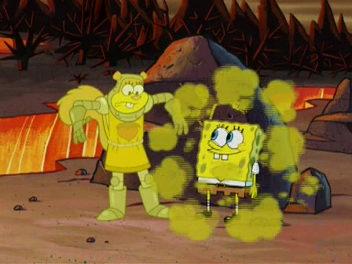 Unaware that they are actually going to be in the tournament, and not just watching upclose, they are forced to mount seahorses and start jousting against each other. They are both launched off of their seahorses into the air, and land in a small field in 8th Century Bikini Bottom.