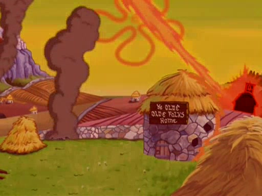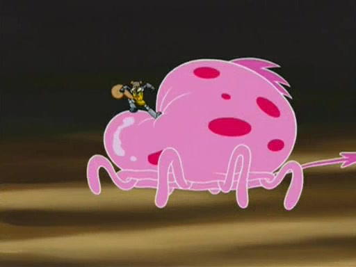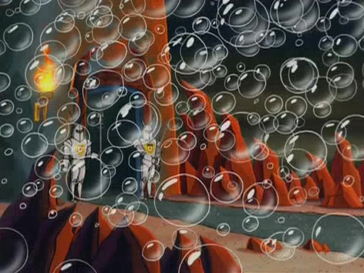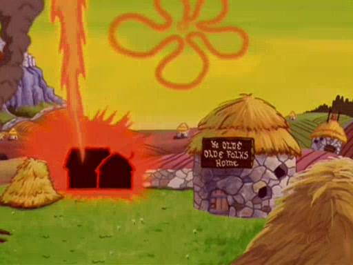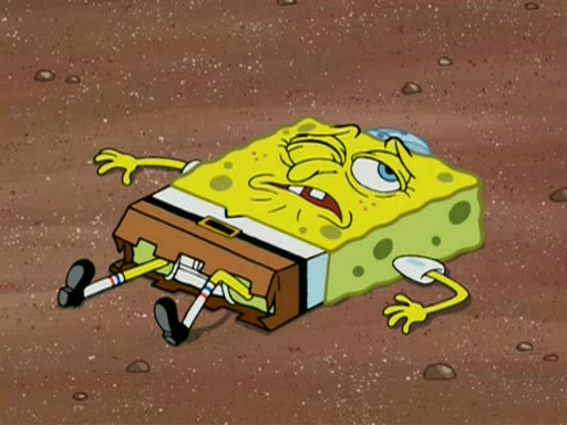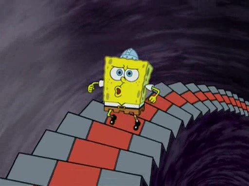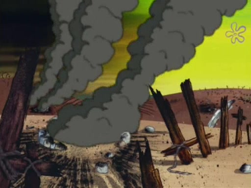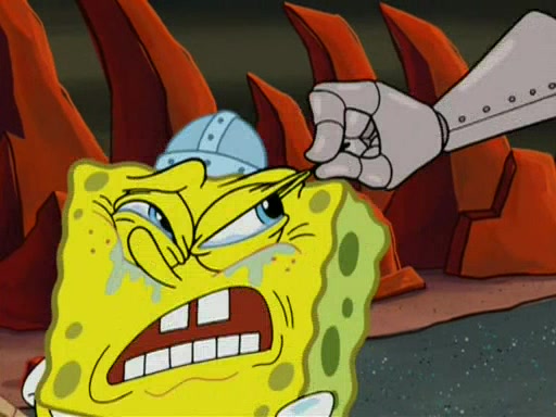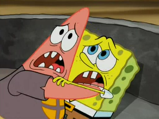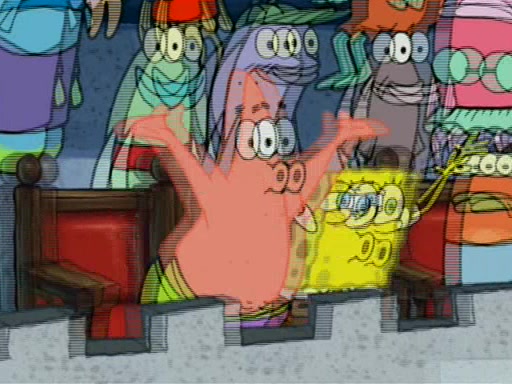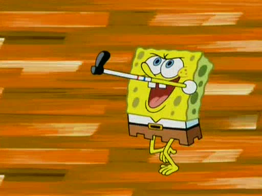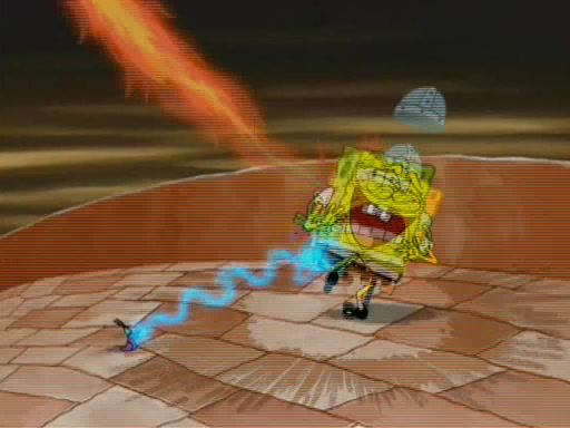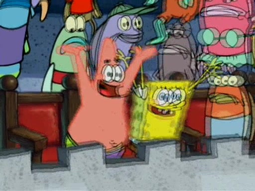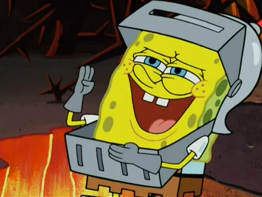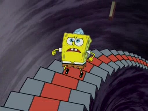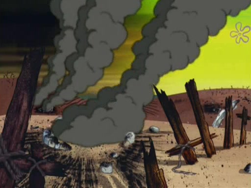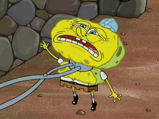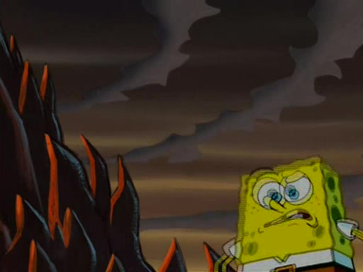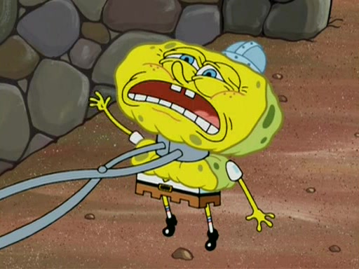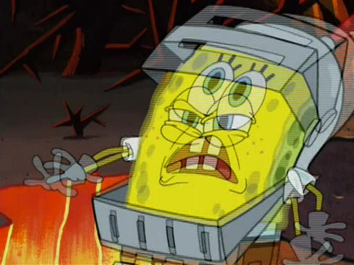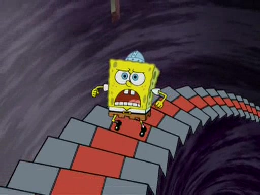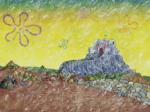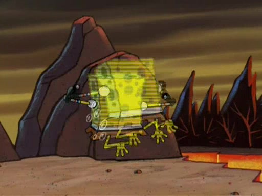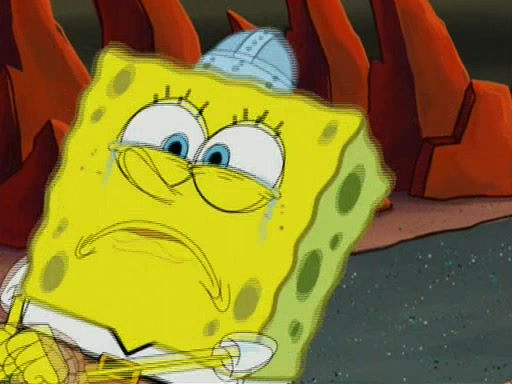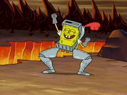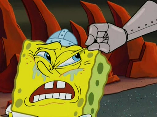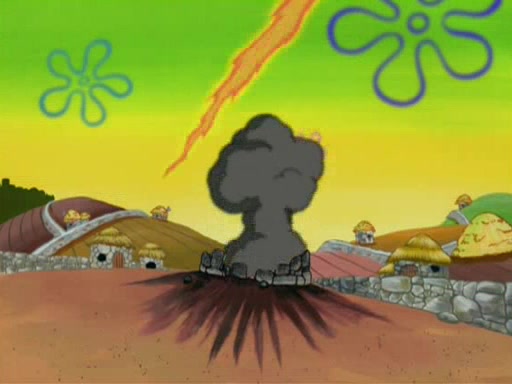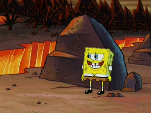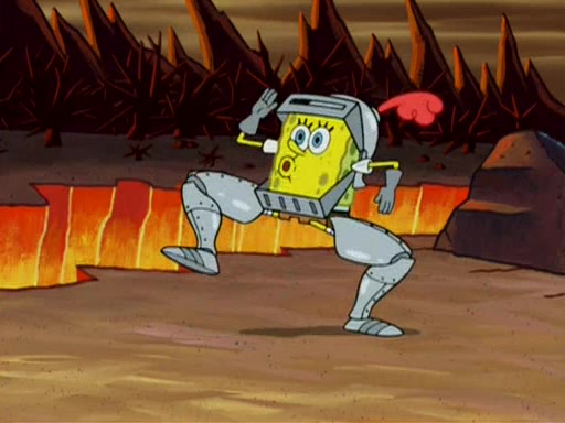 Unaware that they are actually going to be in the tournament, and not just watching upclose, they are forced to mount seahorses and start jousting against each other. They are both launched off of their seahorses into the air, and land in a small field in 8th Century Bikini Bottom.
