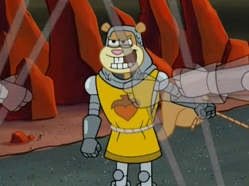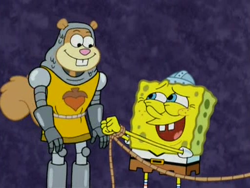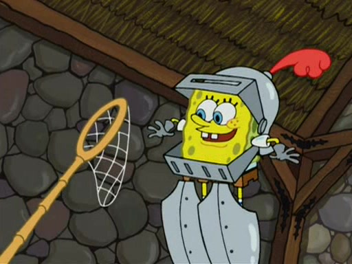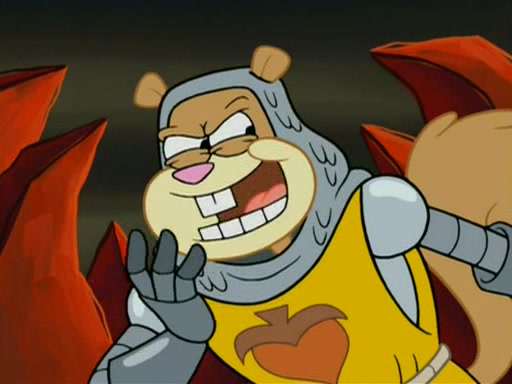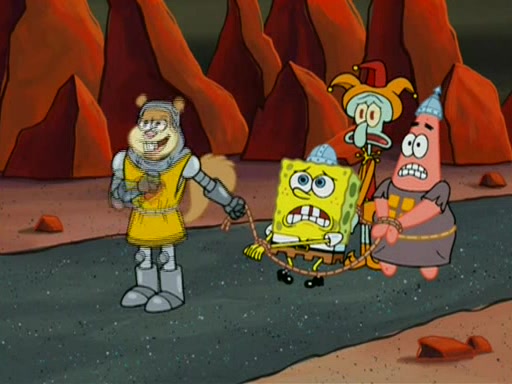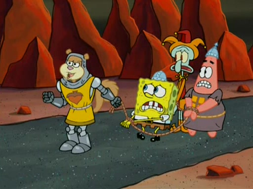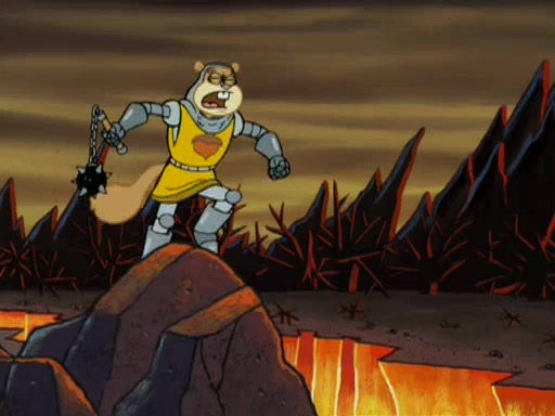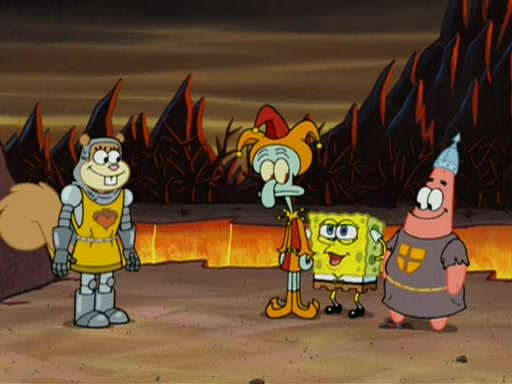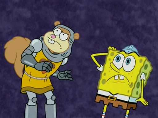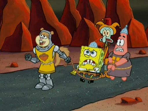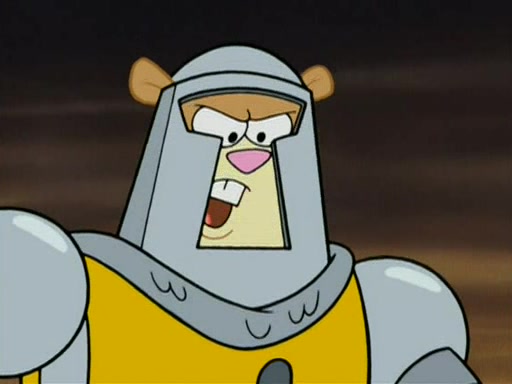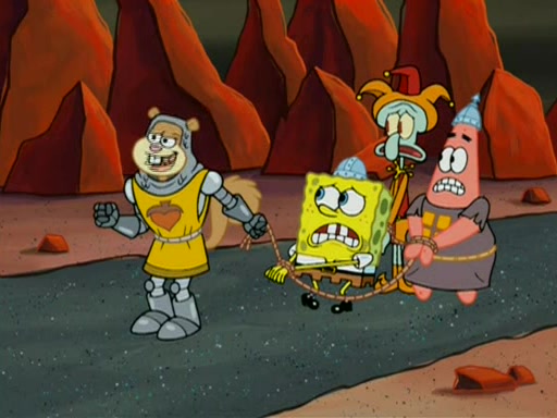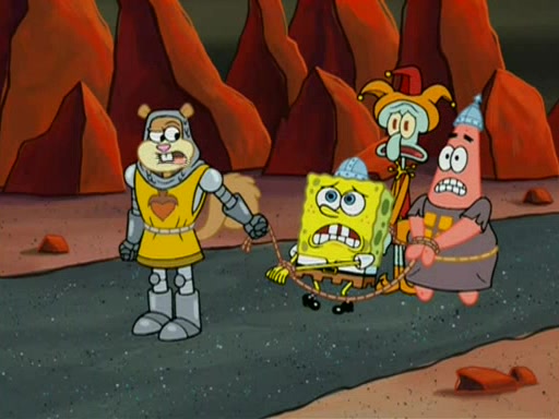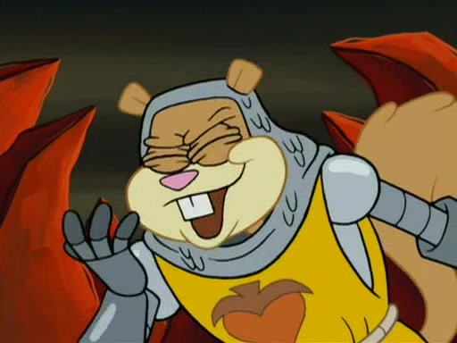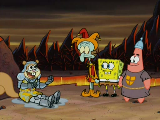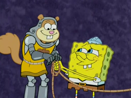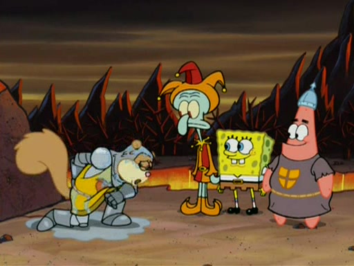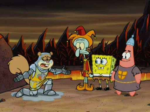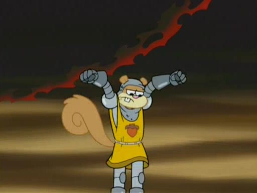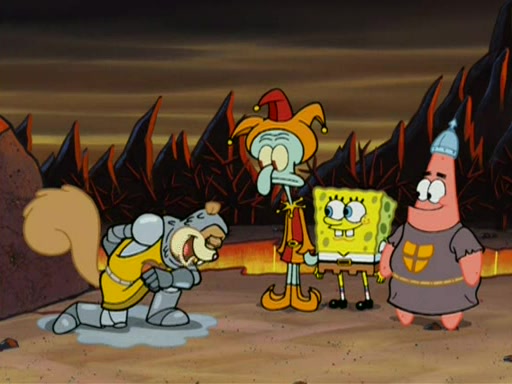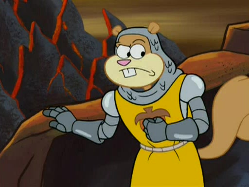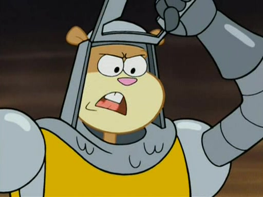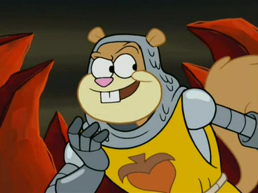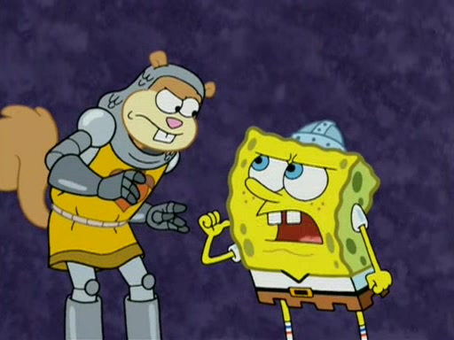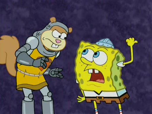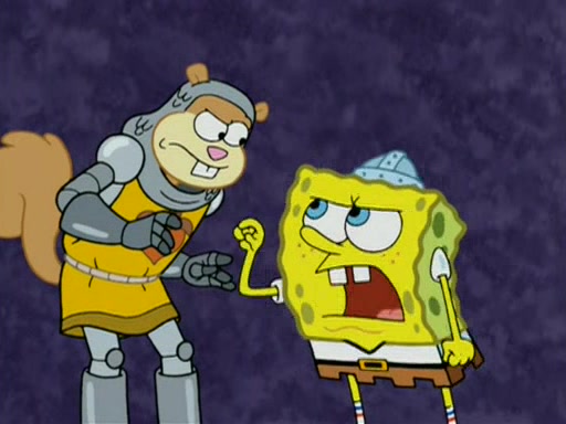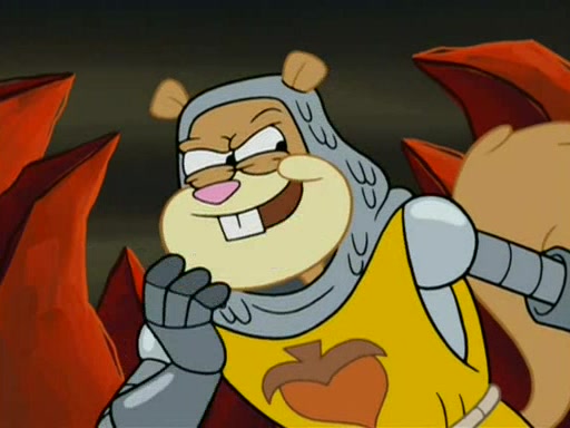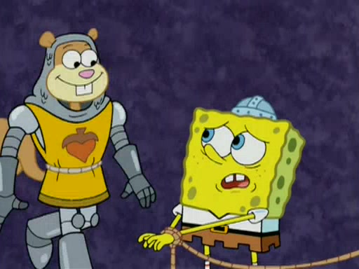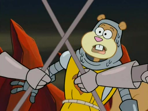 The Dark Knight is revealed to be none-other than a medieval Sandy (who, unlike the present Sandy, does not need an air helmet). A duel ensues, with SpongeBob ultimately winning due to his karate prowess.