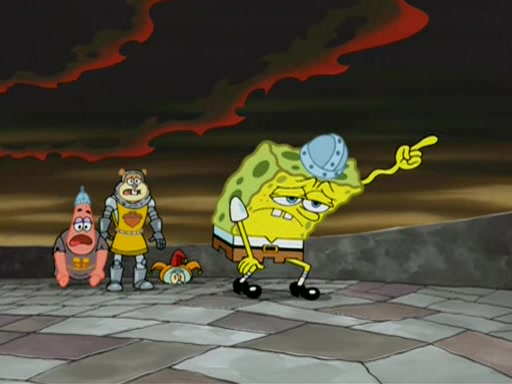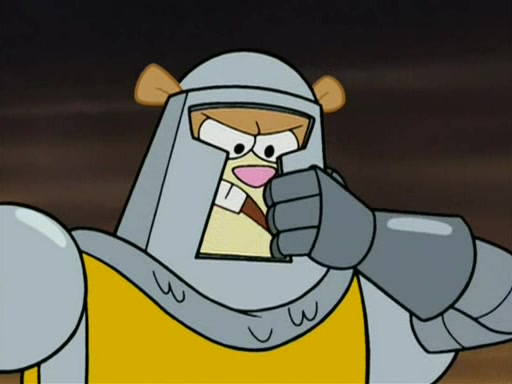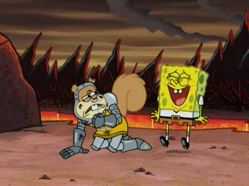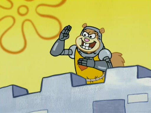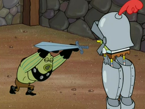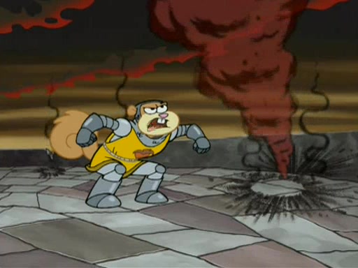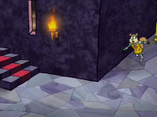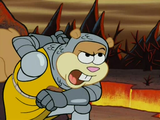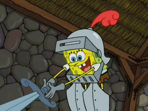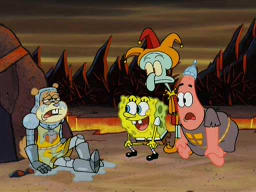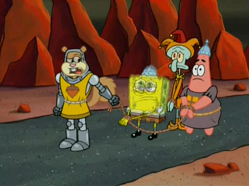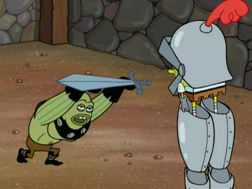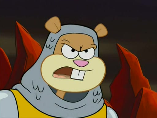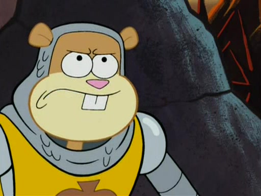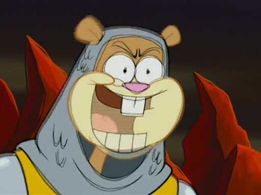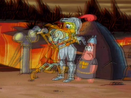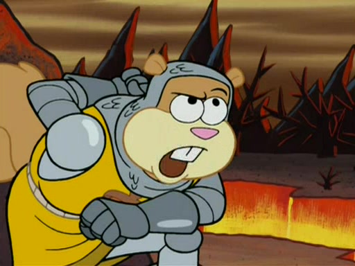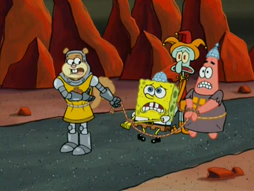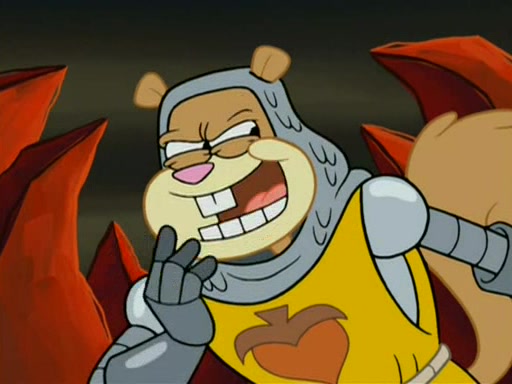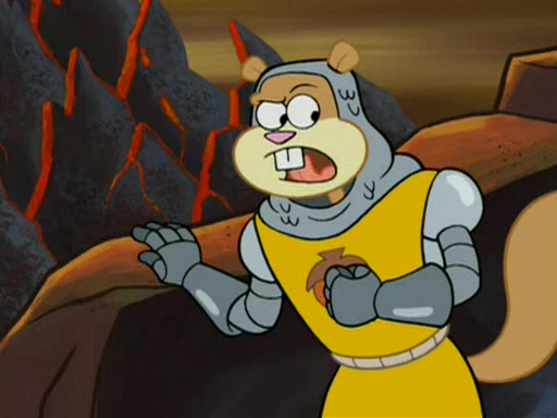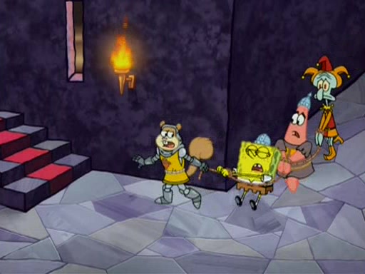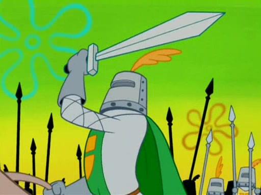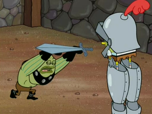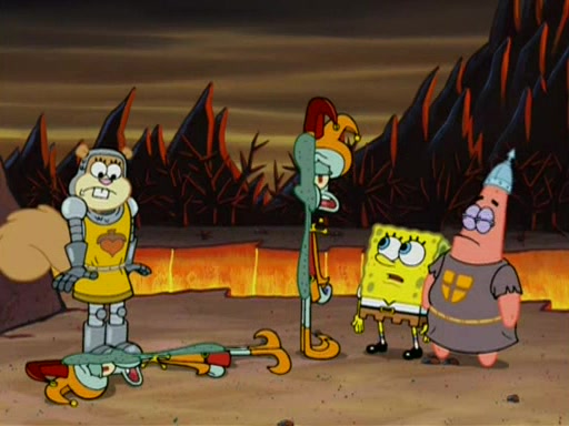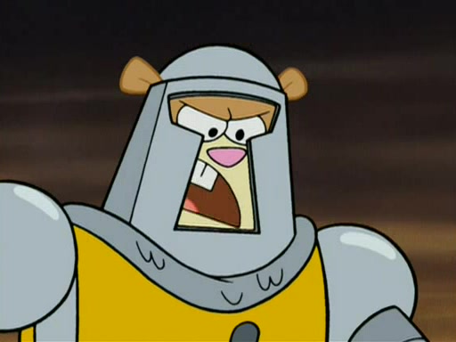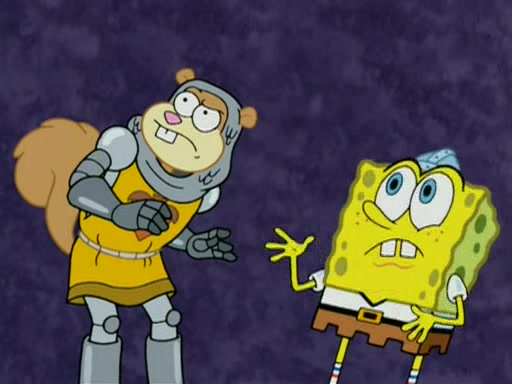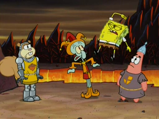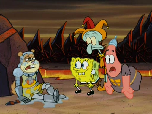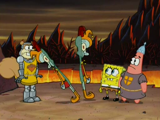The Dark Knight is revealed to be none-other than a medieval Sandy (who, unlike the present Sandy, does not need an air helmet). A duel ensues, with SpongeBob ultimately winning due to his karate prowess.