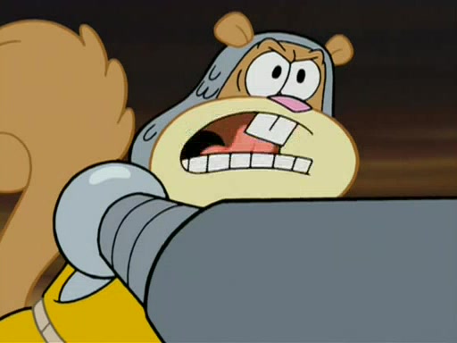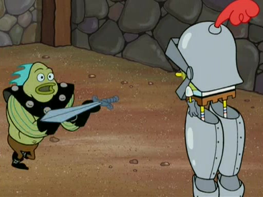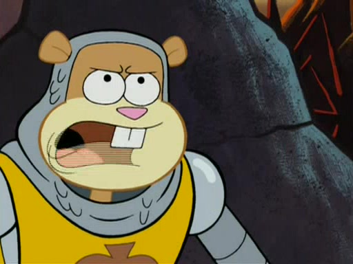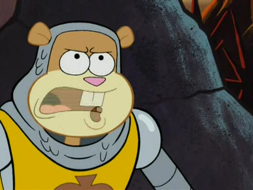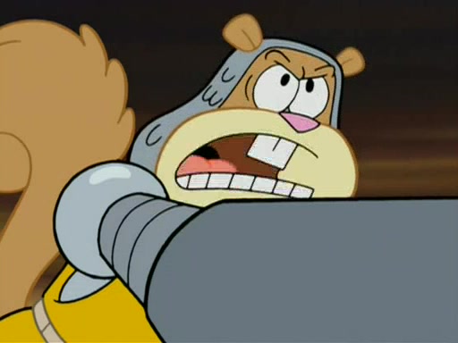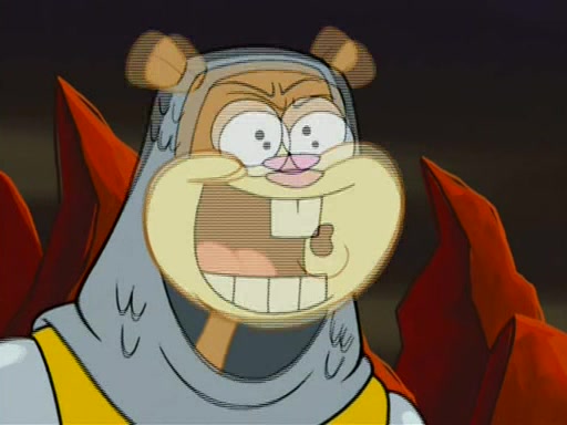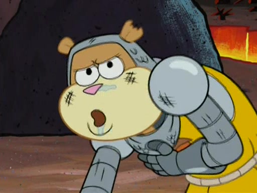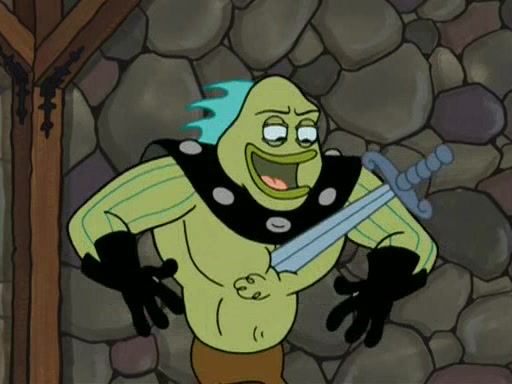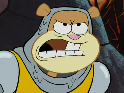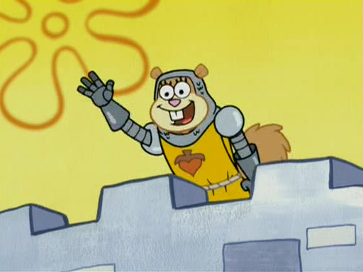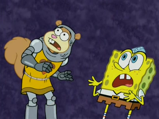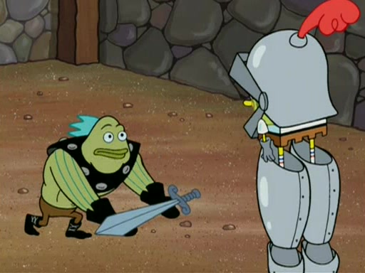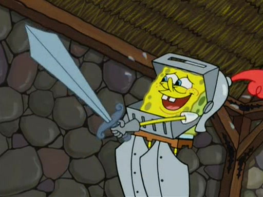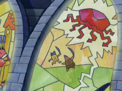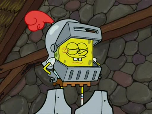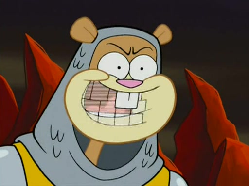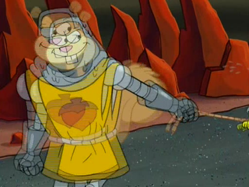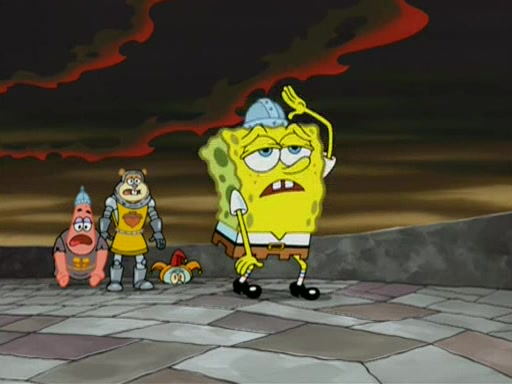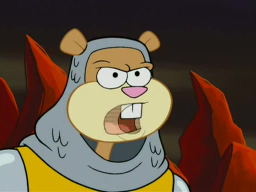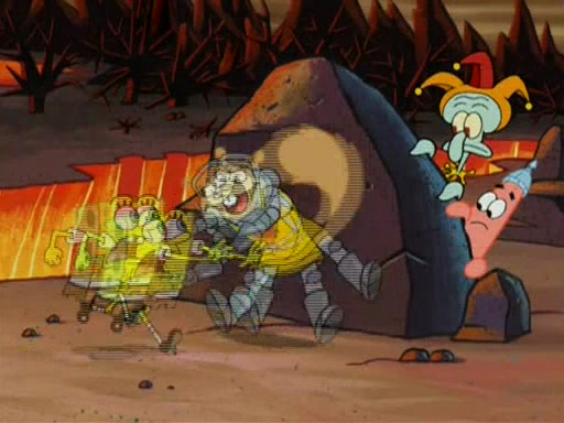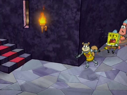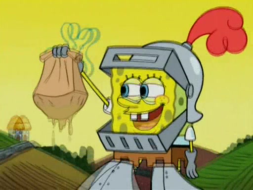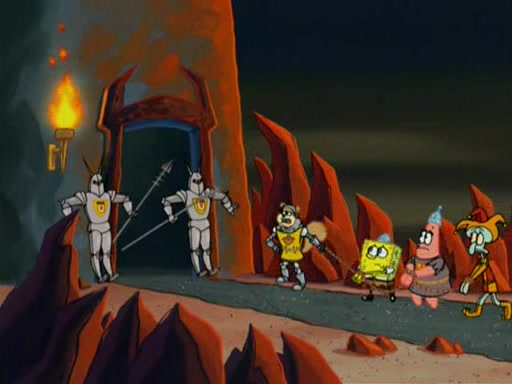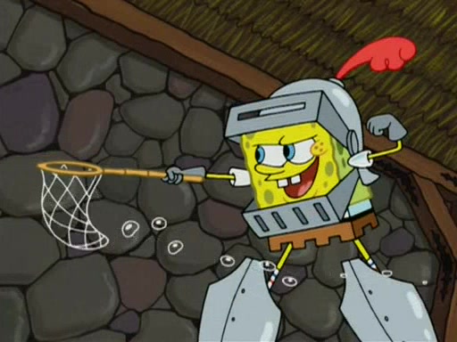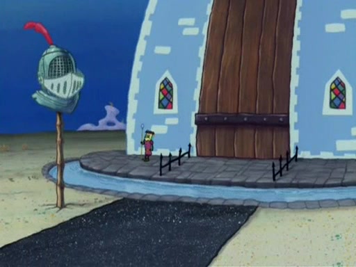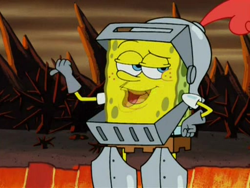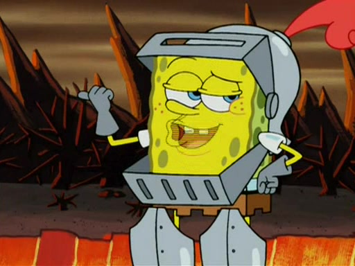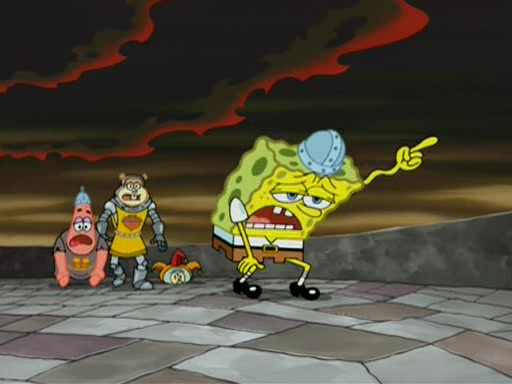 The Dark Knight is revealed to be none-other than a medieval Sandy (who, unlike the present Sandy, does not need an air helmet). A duel ensues, with SpongeBob ultimately winning due to his karate prowess.