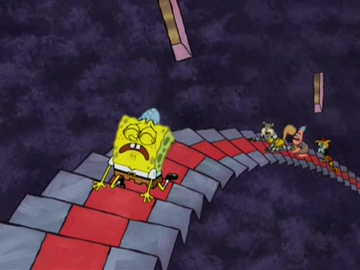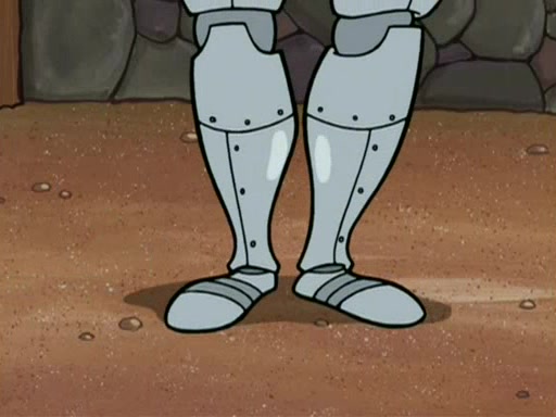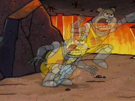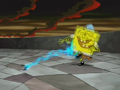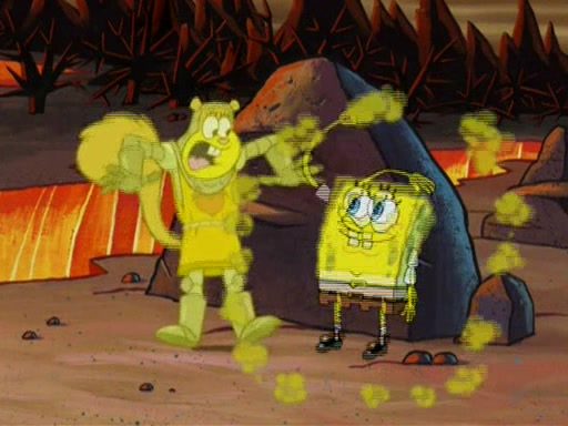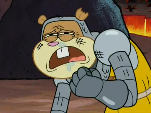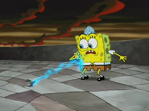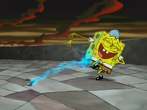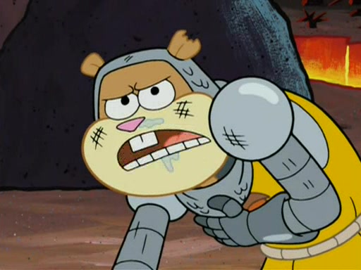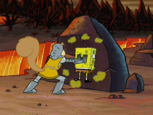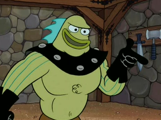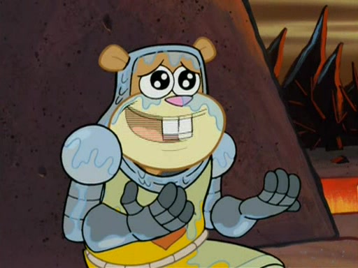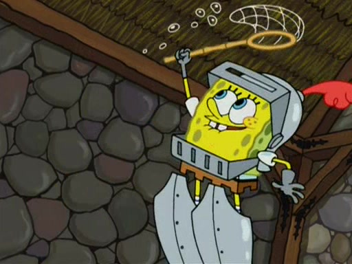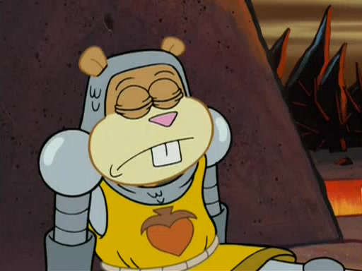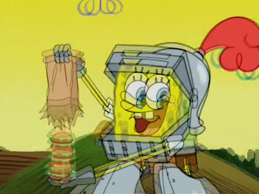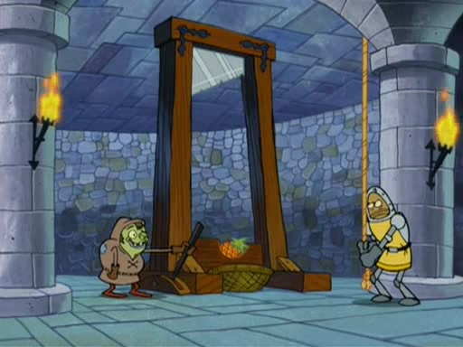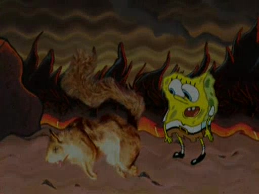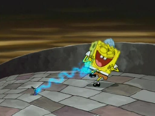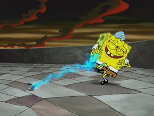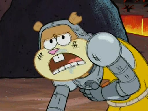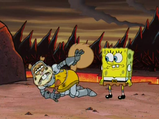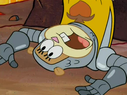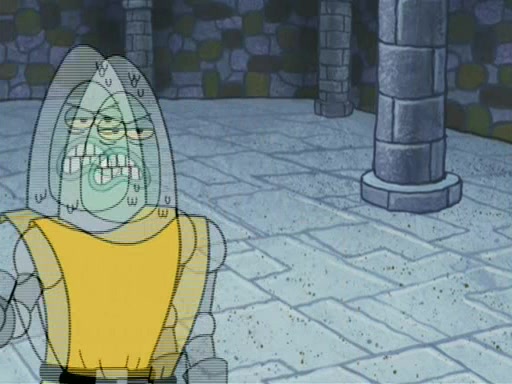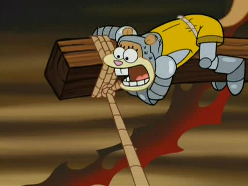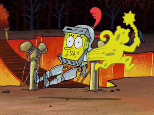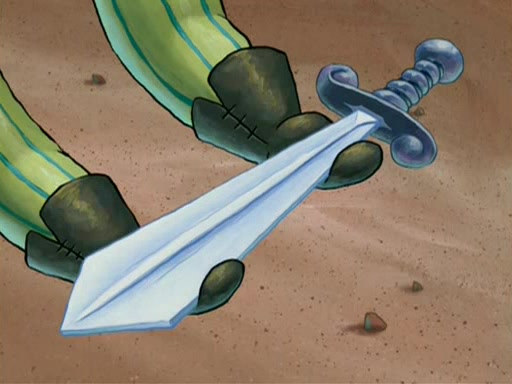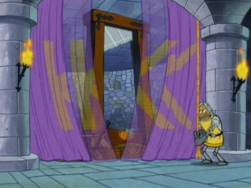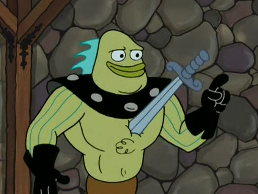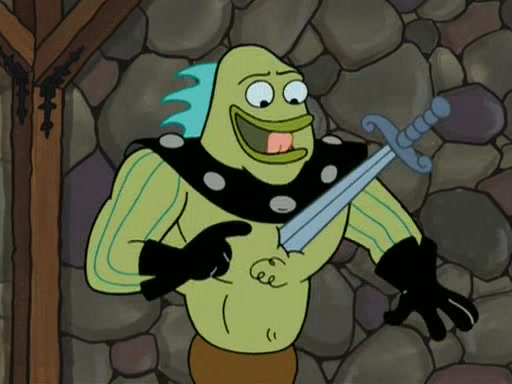 The Dark Knight is revealed to be none-other than a medieval Sandy (who, unlike the present Sandy, does not need an air helmet). A duel ensues, with SpongeBob ultimately winning due to his karate prowess.