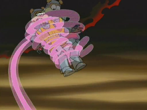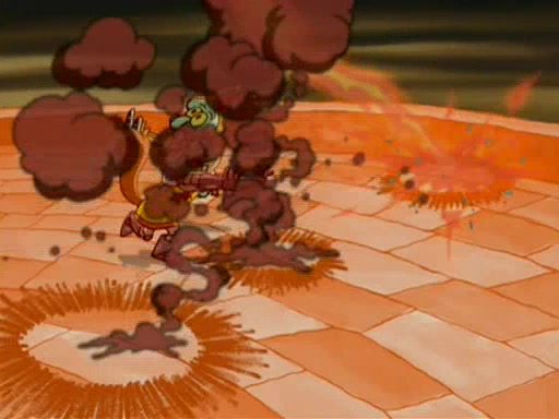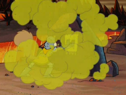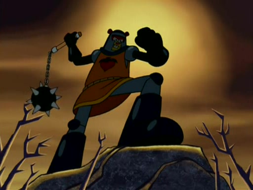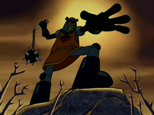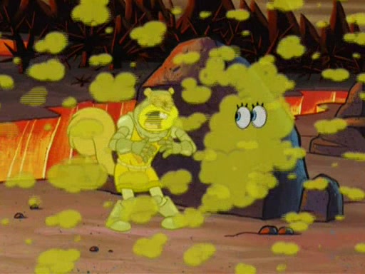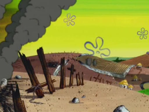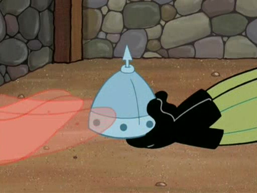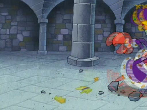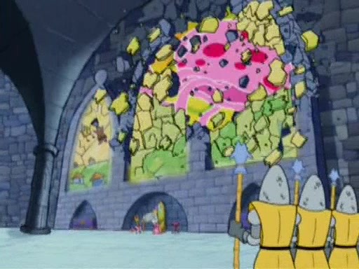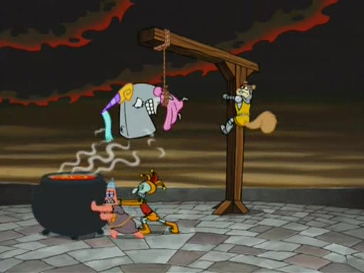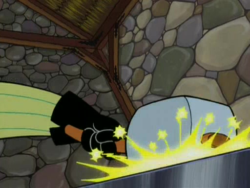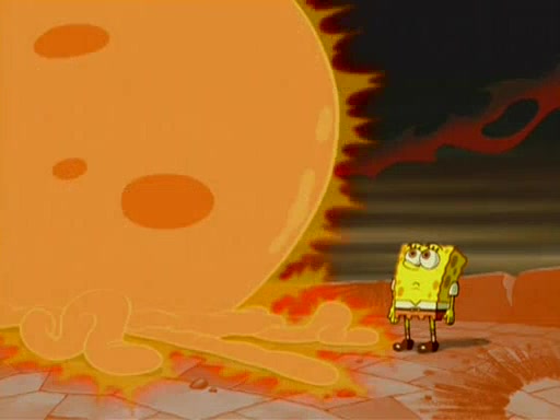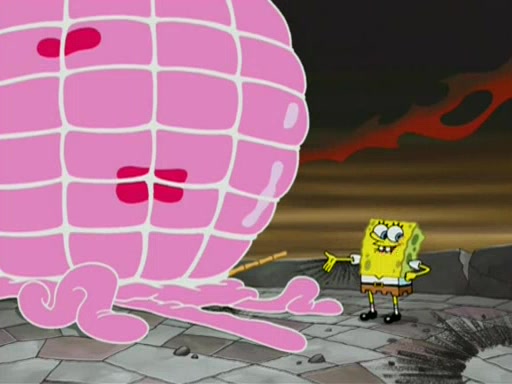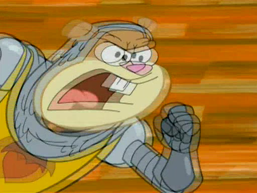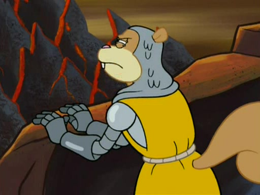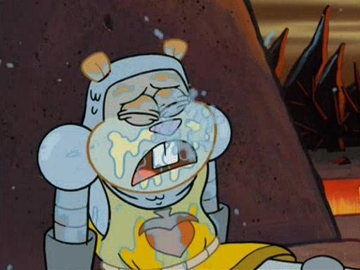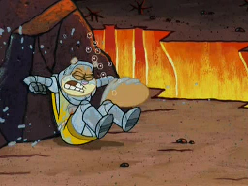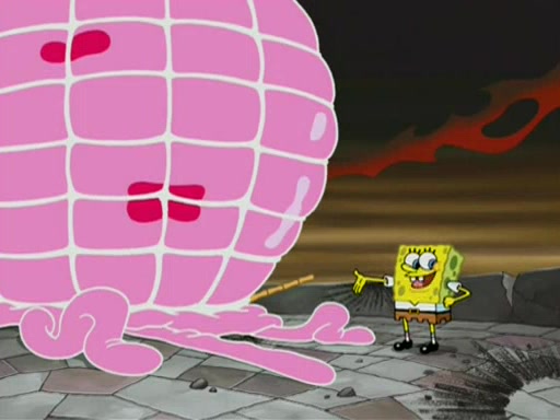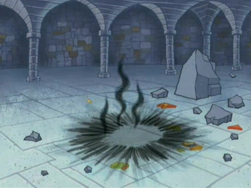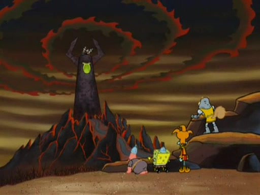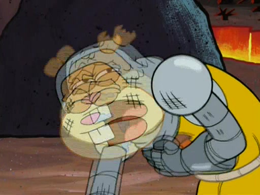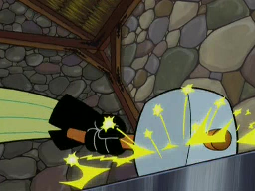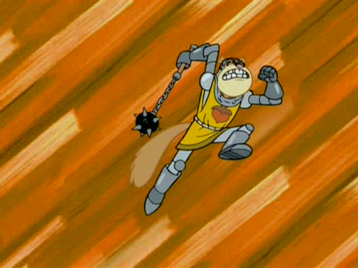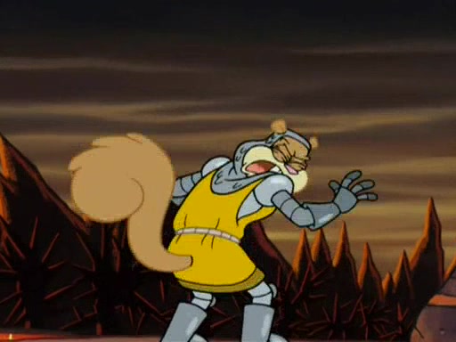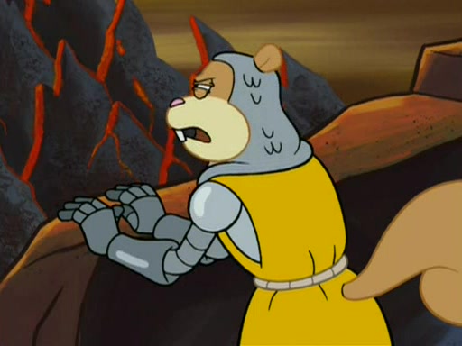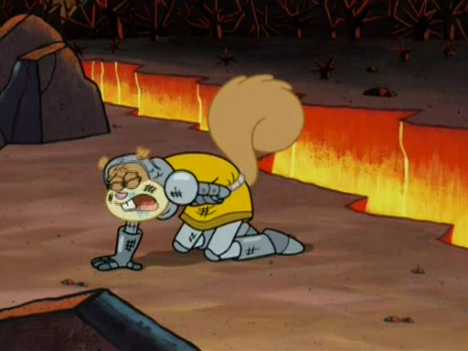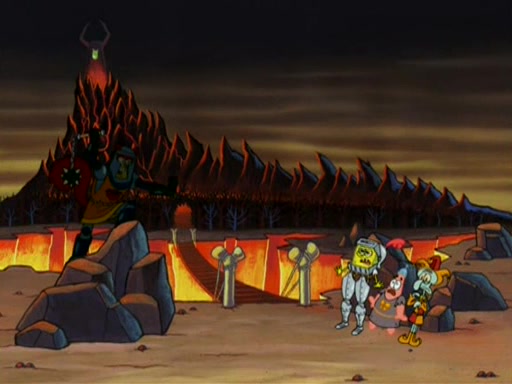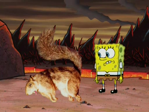 The Dark Knight is revealed to be none-other than a medieval Sandy (who, unlike the present Sandy, does not need an air helmet). A duel ensues, with SpongeBob ultimately winning due to his karate prowess.