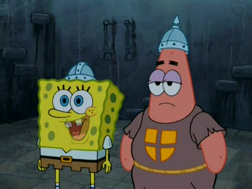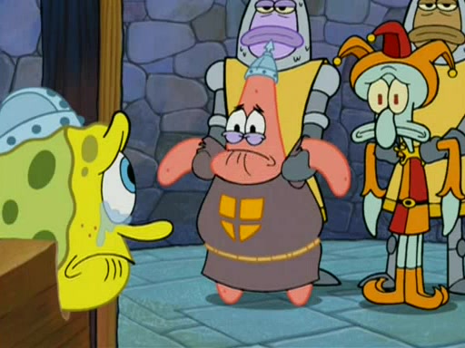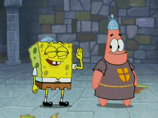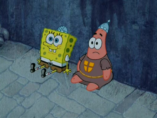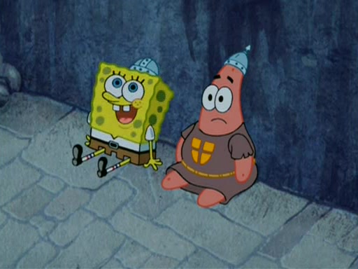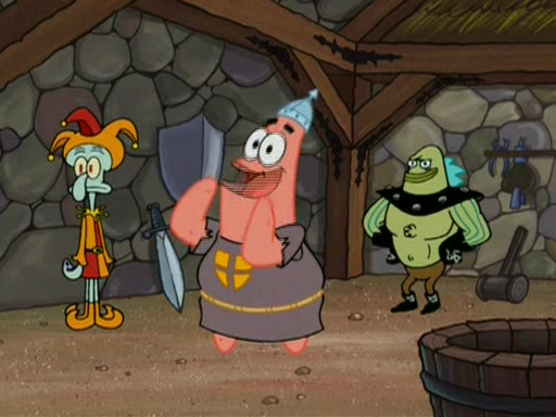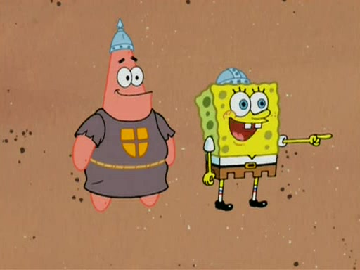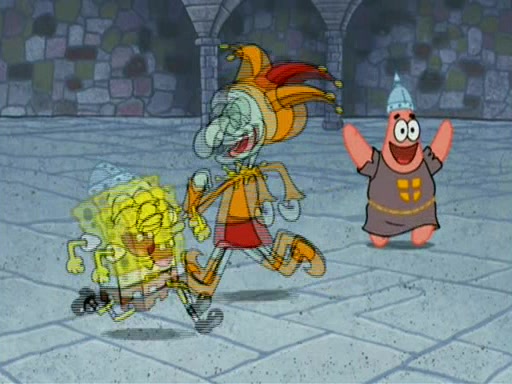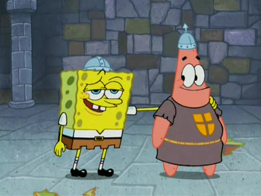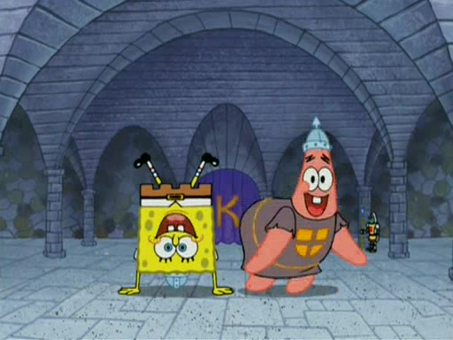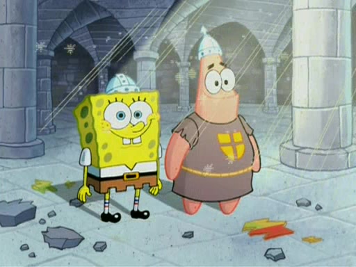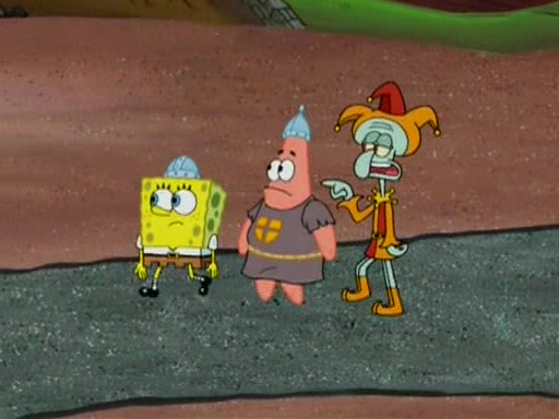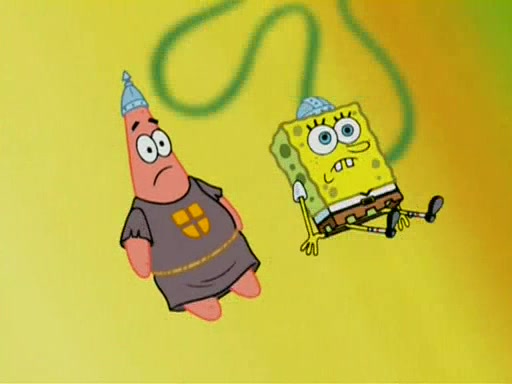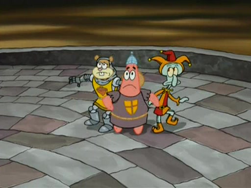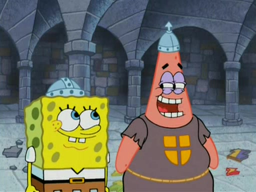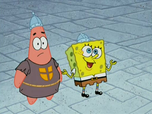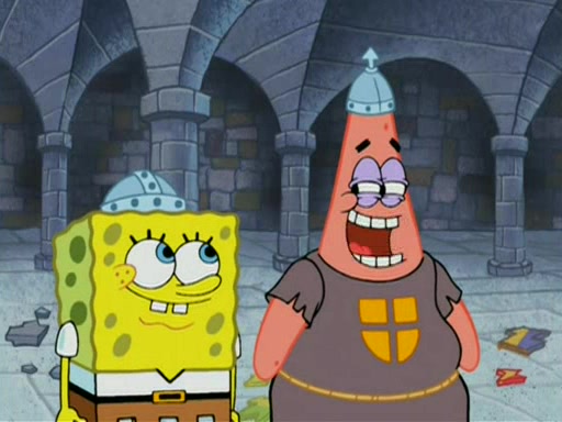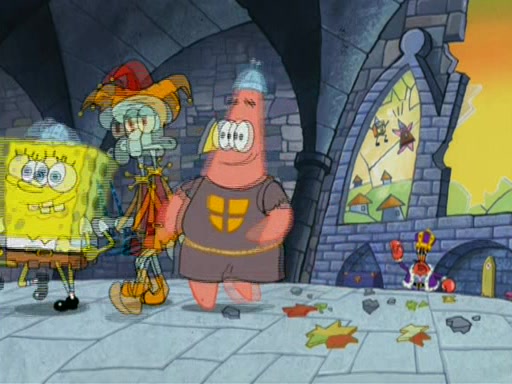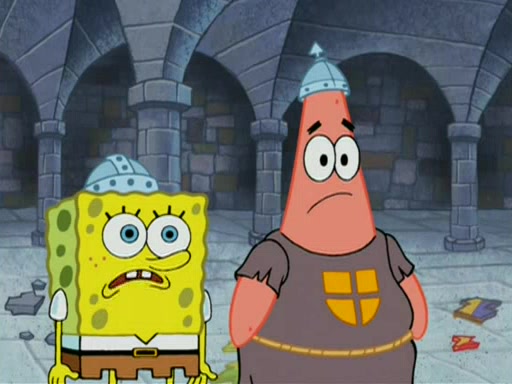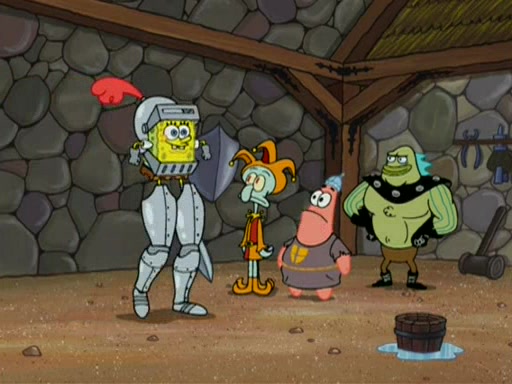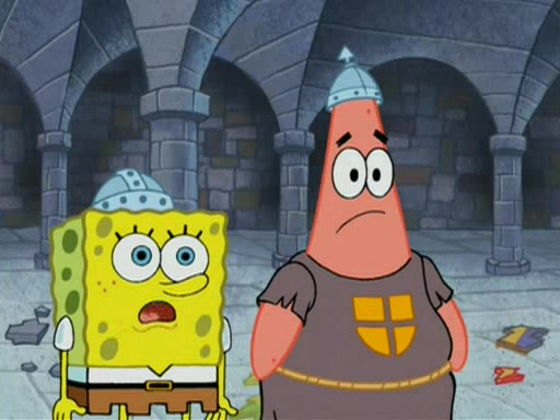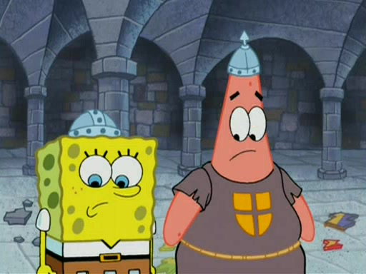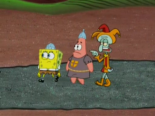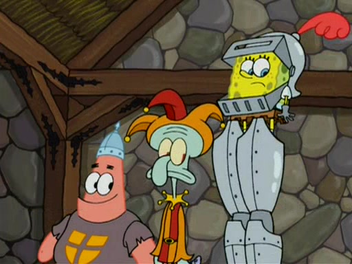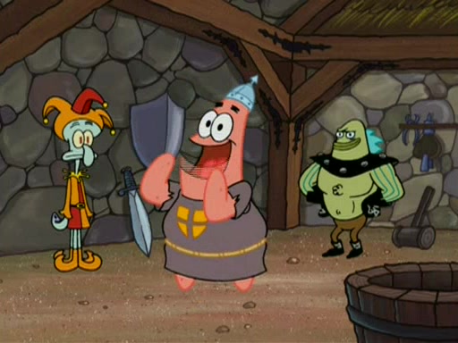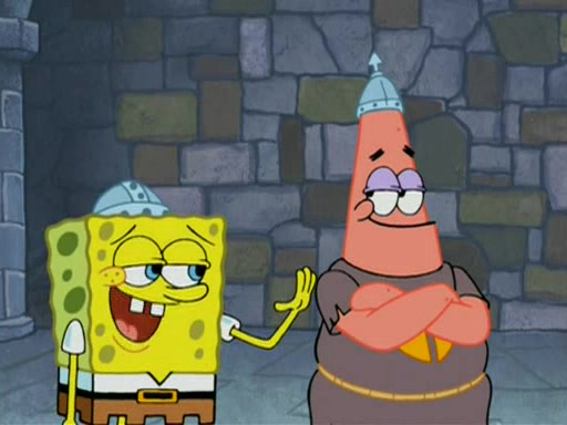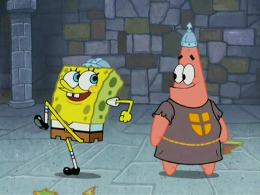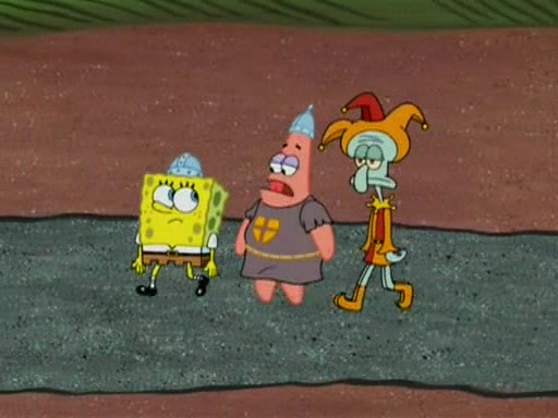 SpongeBob and Patrick are running up to the Medieval Moments stadium/restaurant to watch the jousting tournament. Upon their arrival, Morrie announces the tournament and asks for two volunteers to take part in the jousting, choosing SpongeBob and Patrick.