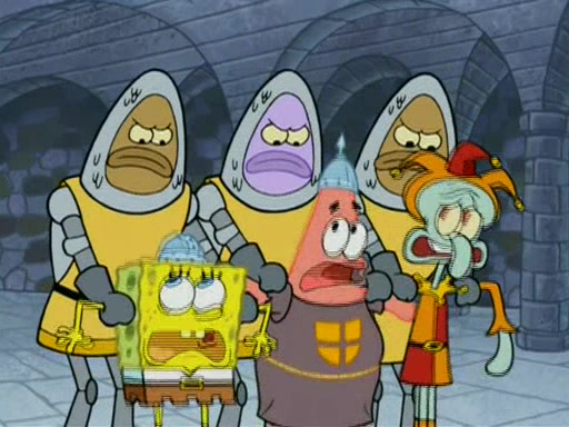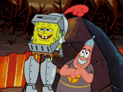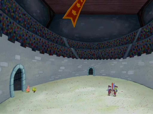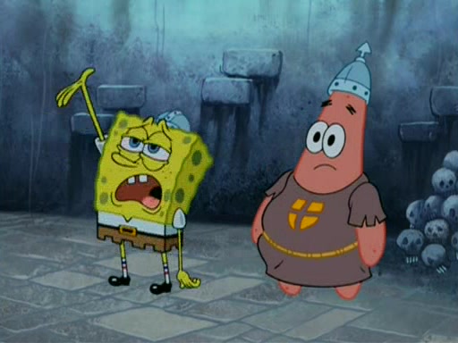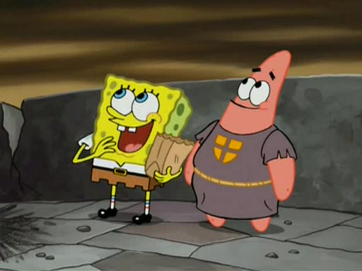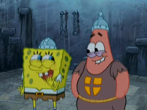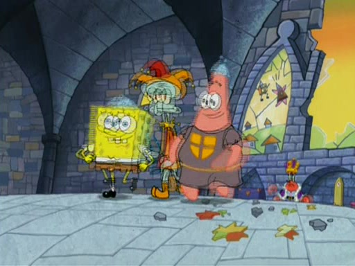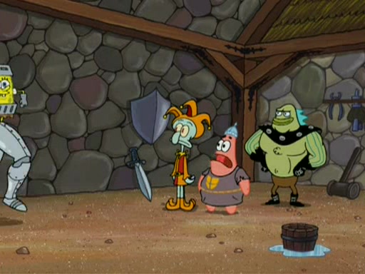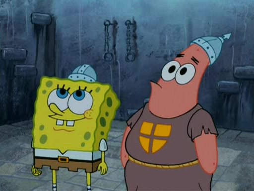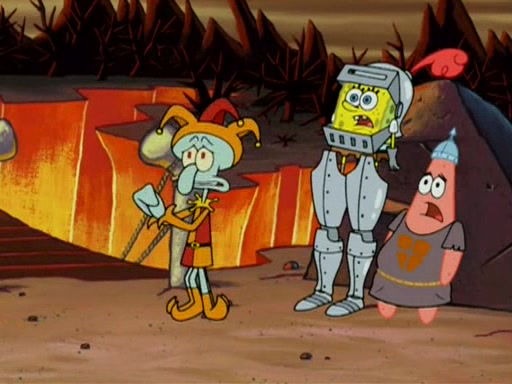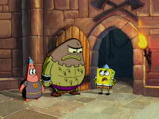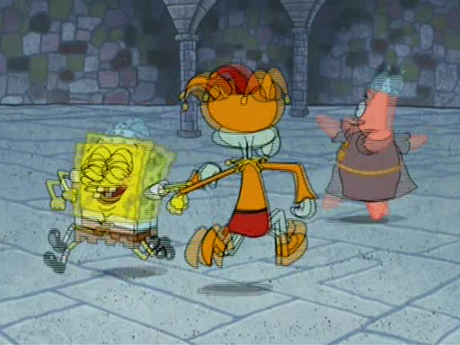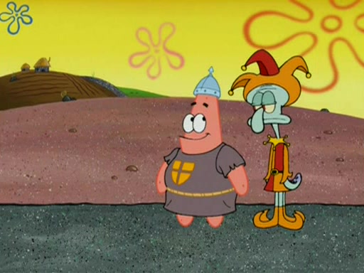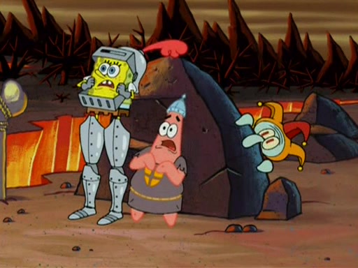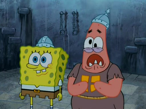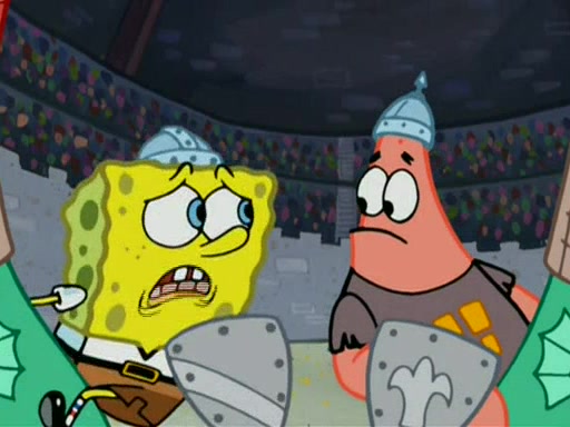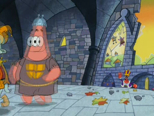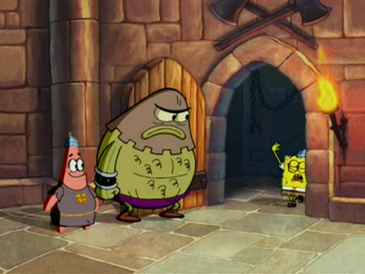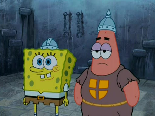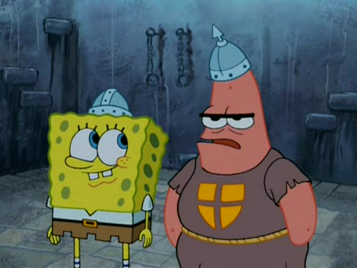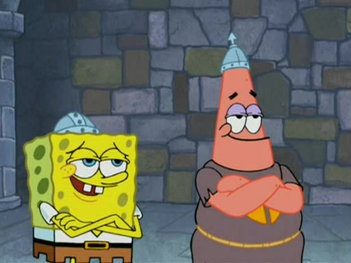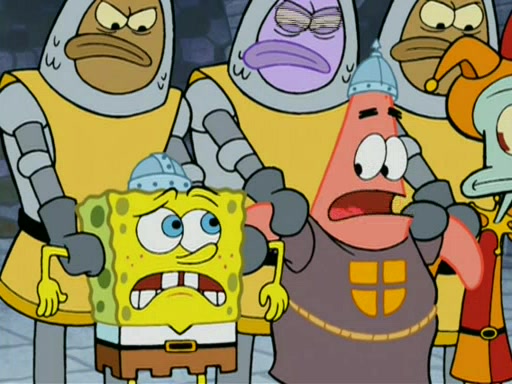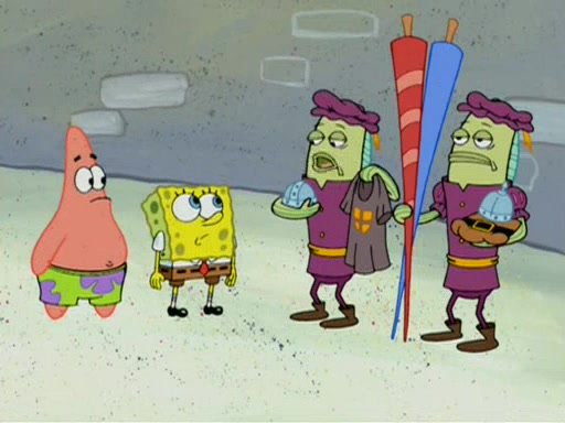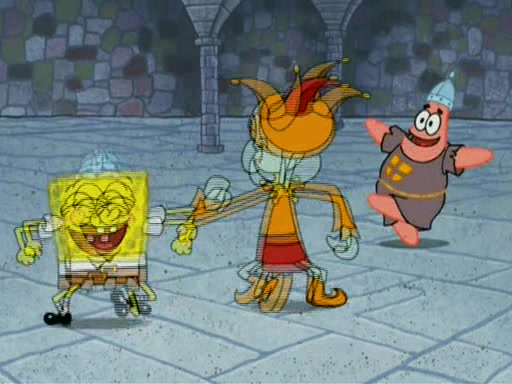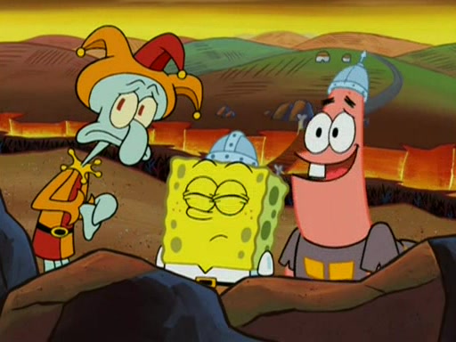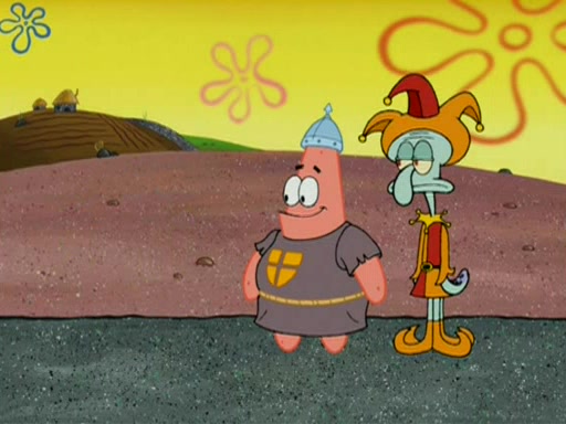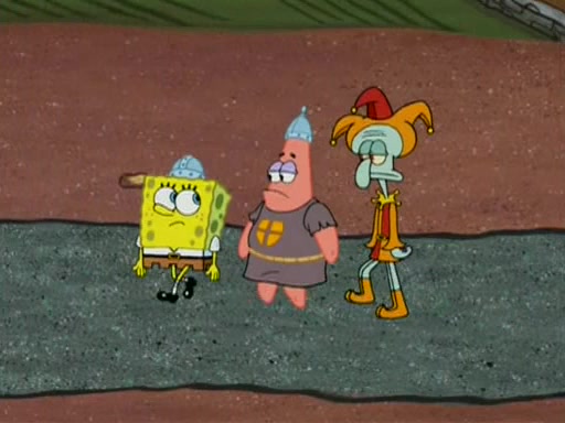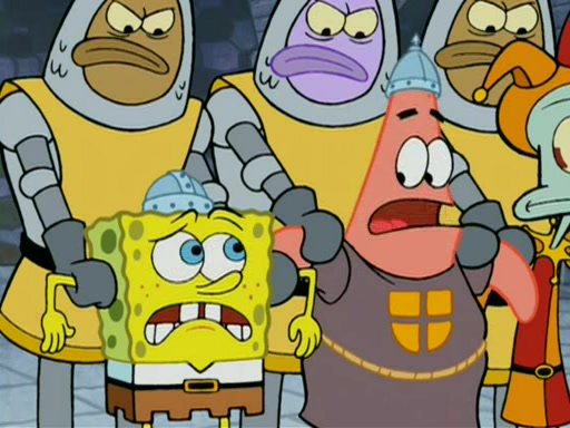 SpongeBob and Patrick are running up to the Medieval Moments stadium/restaurant to watch the jousting tournament. Upon their arrival, Morrie announces the tournament and asks for two volunteers to take part in the jousting, choosing SpongeBob and Patrick.