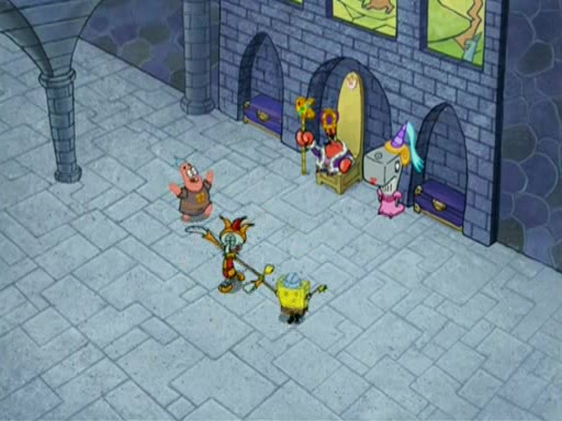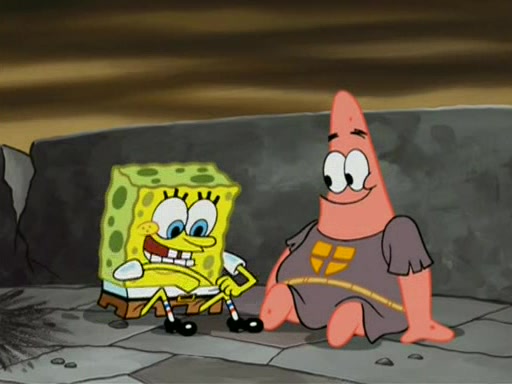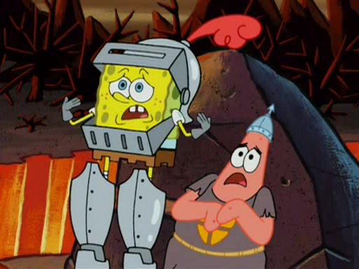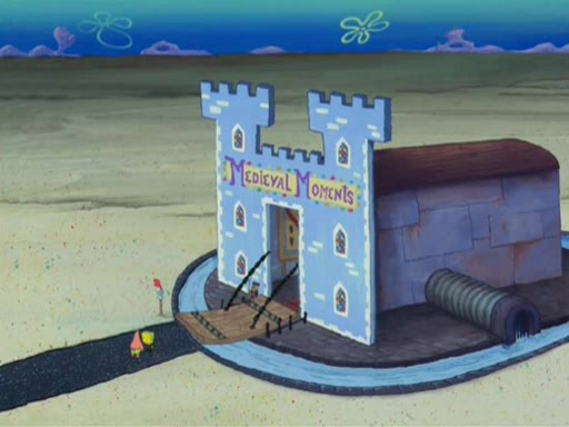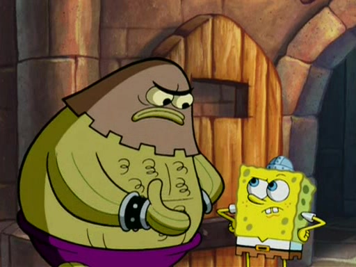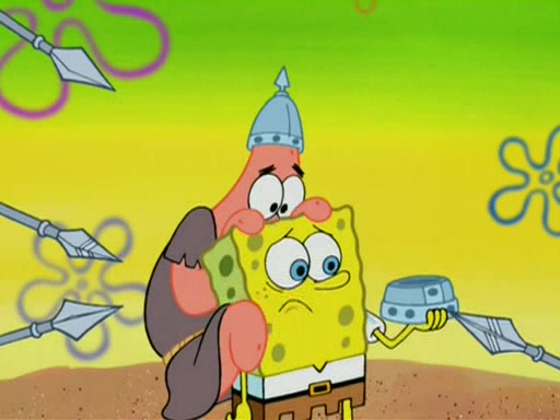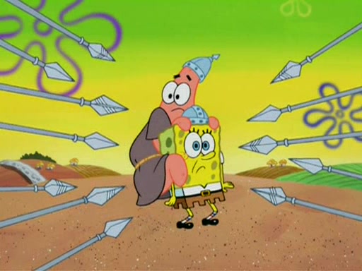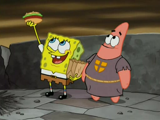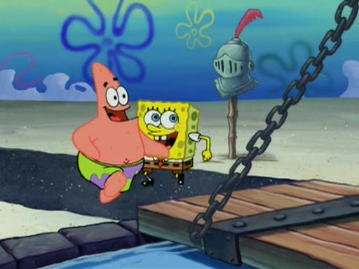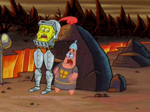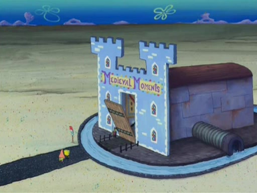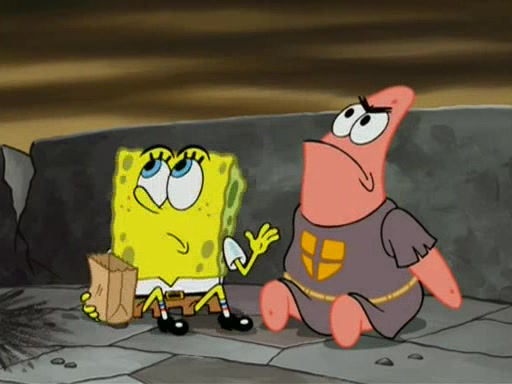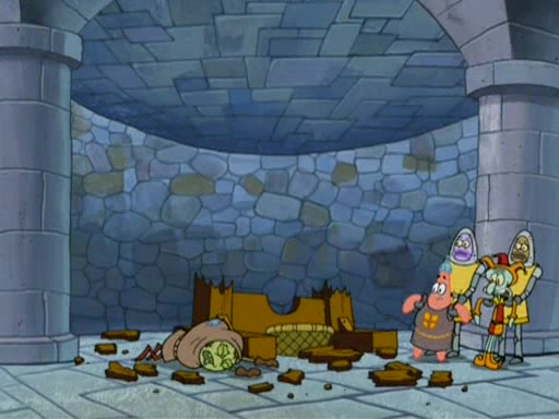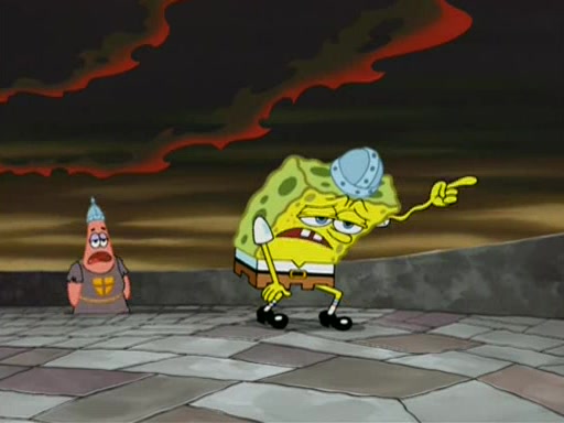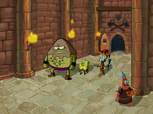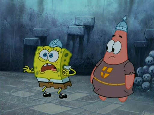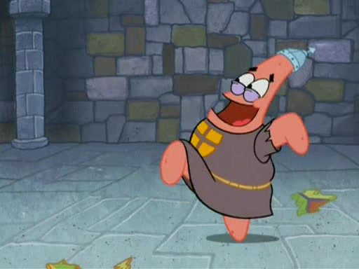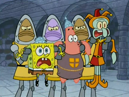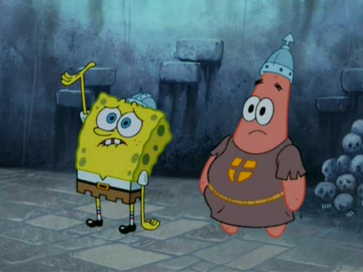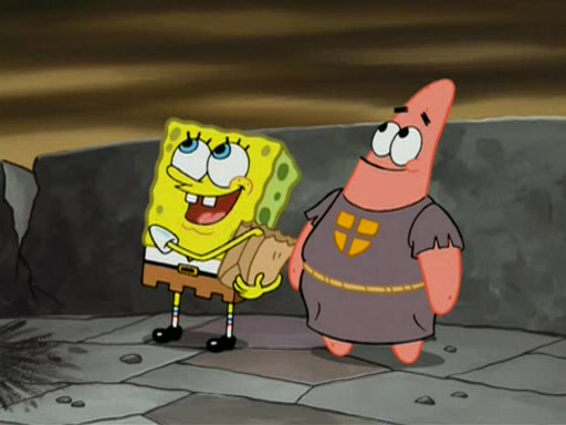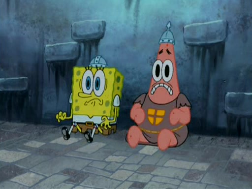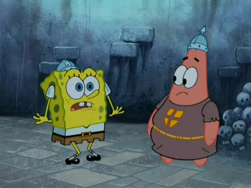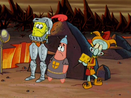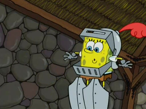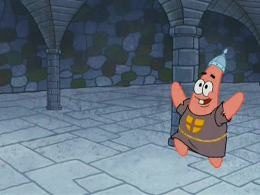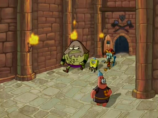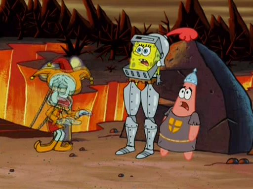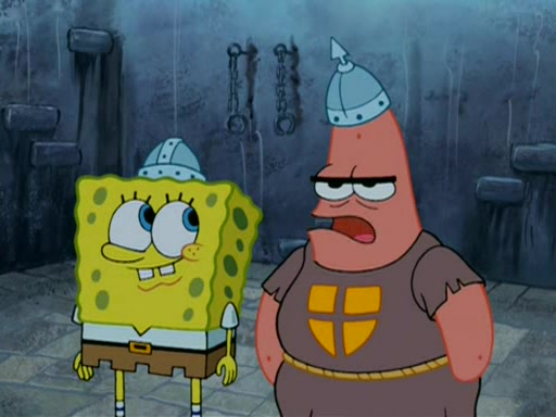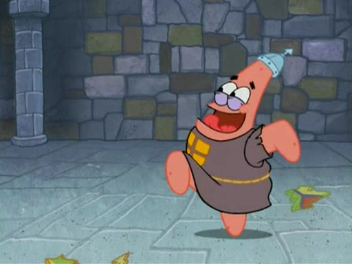 SpongeBob and Patrick are running up to the Medieval Moments stadium/restaurant to watch the jousting tournament. Upon their arrival, Morrie announces the tournament and asks for two volunteers to take part in the jousting, choosing SpongeBob and Patrick.