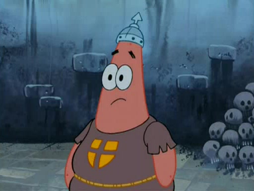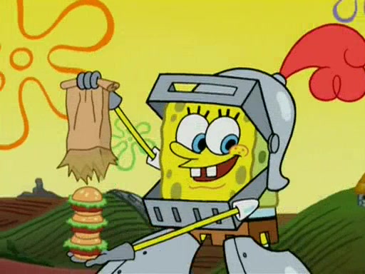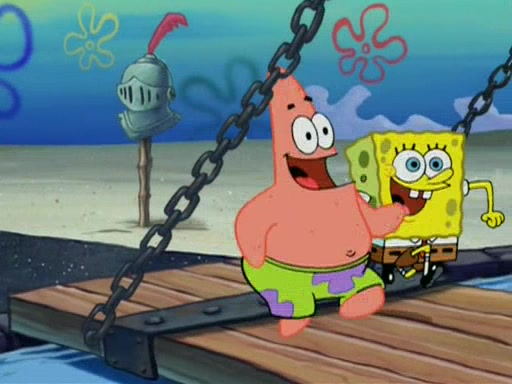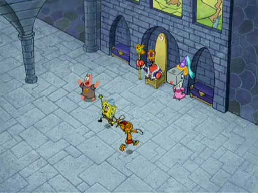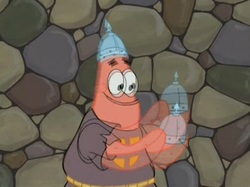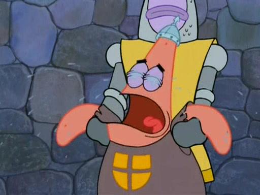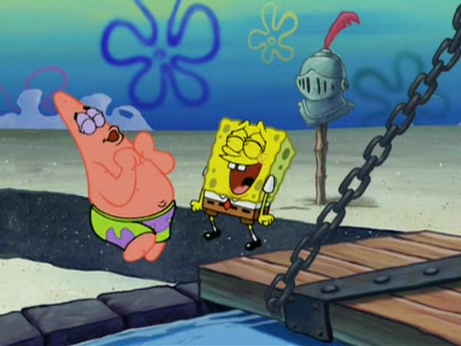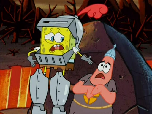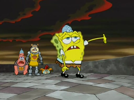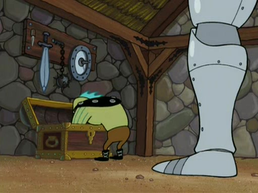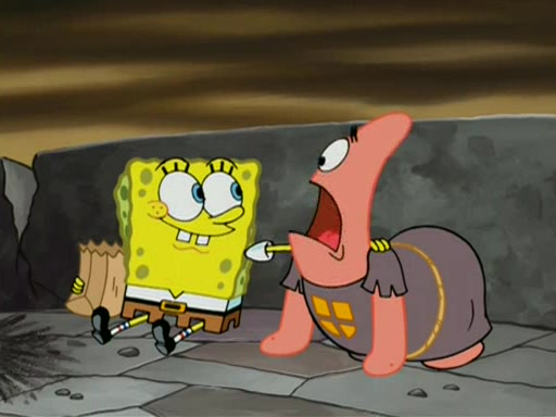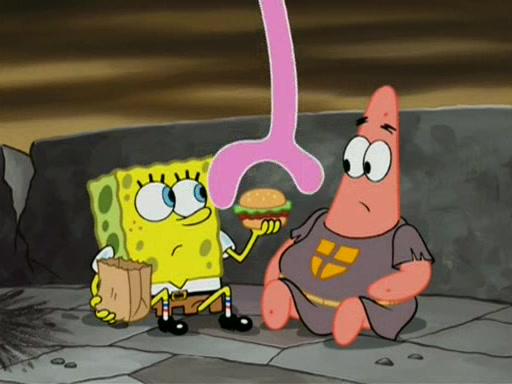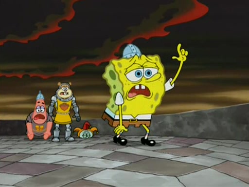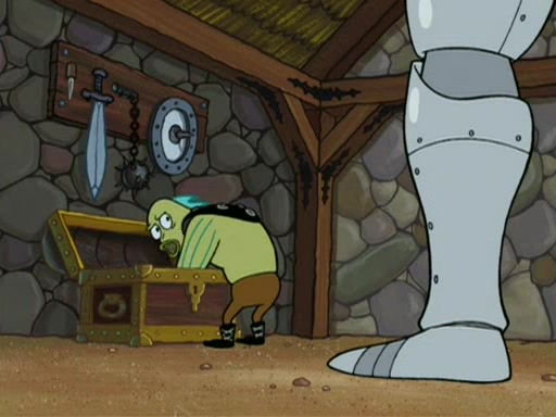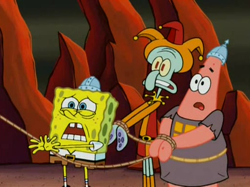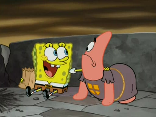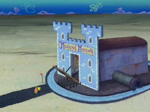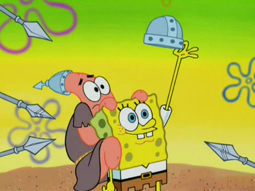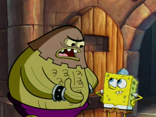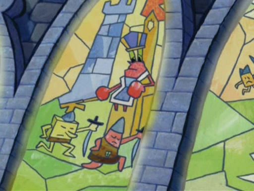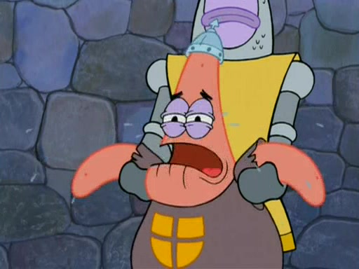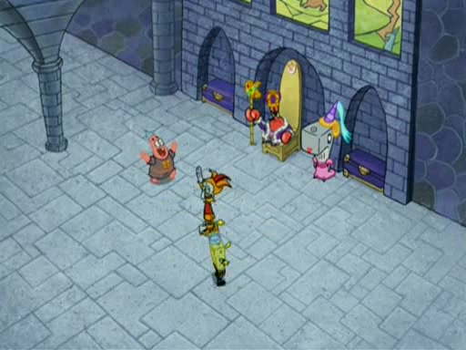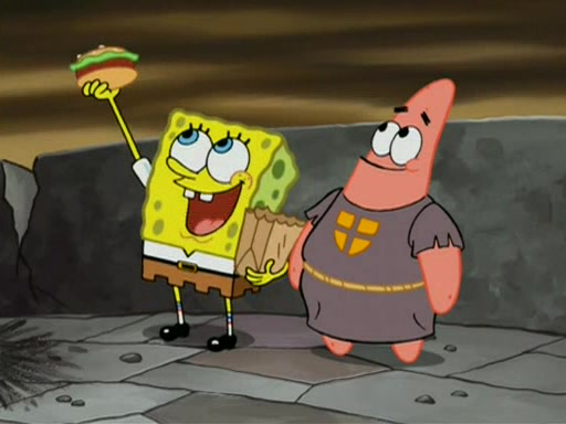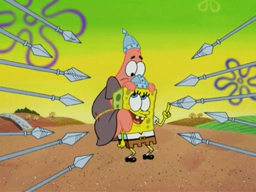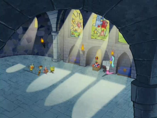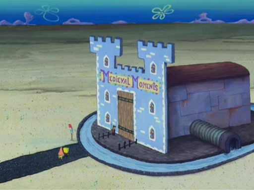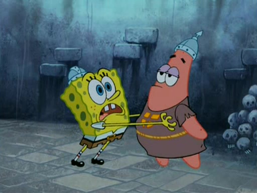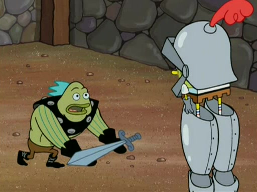 SpongeBob and Patrick are running up to the Medieval Moments stadium/restaurant to watch the jousting tournament. Upon their arrival, Morrie announces the tournament and asks for two volunteers to take part in the jousting, choosing SpongeBob and Patrick.