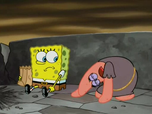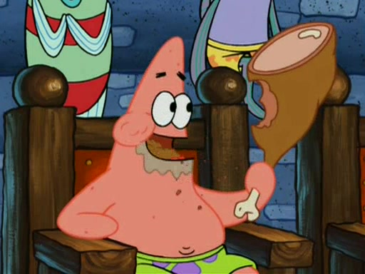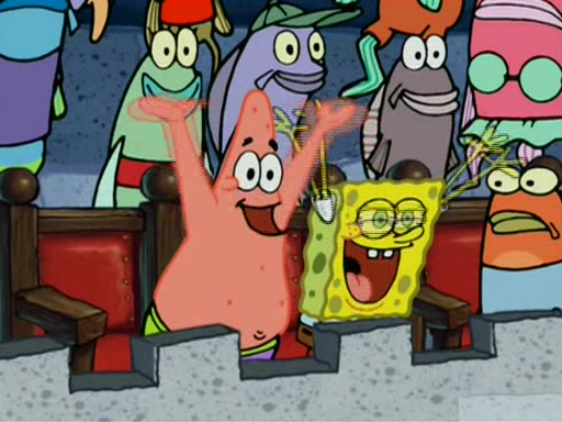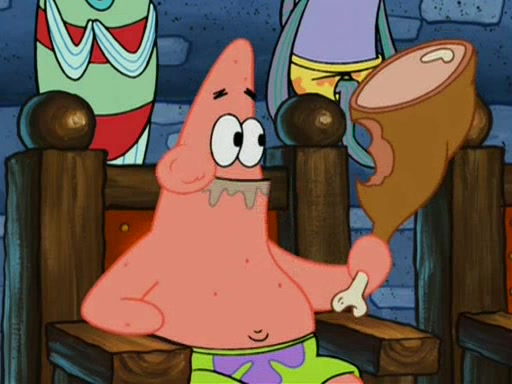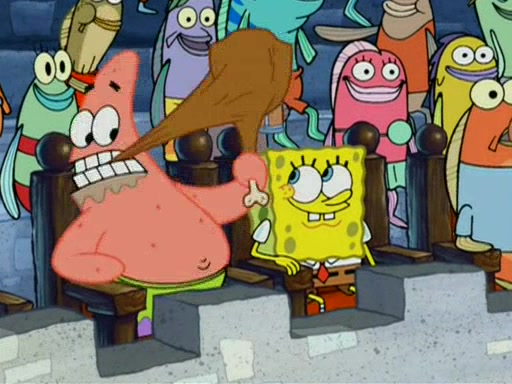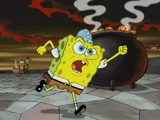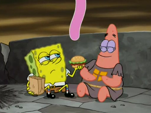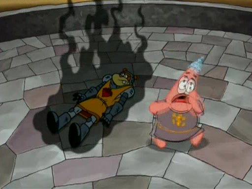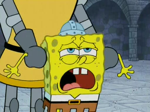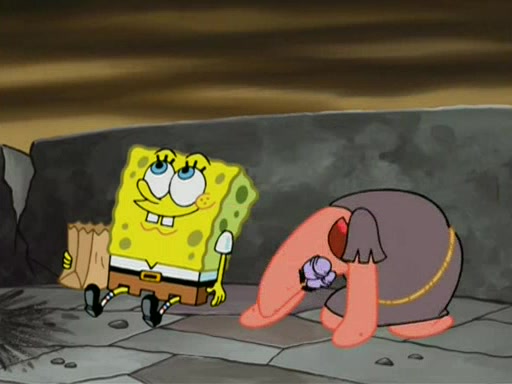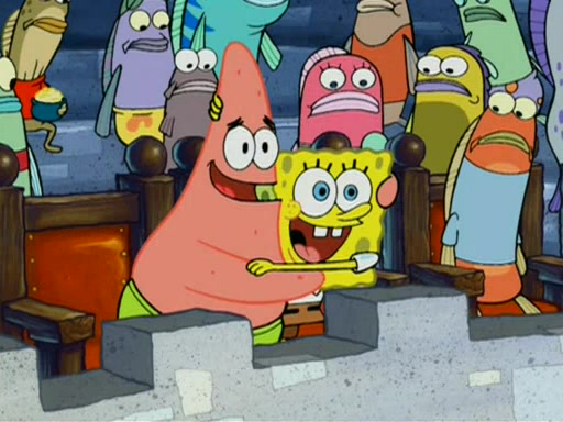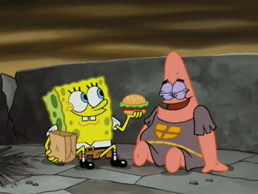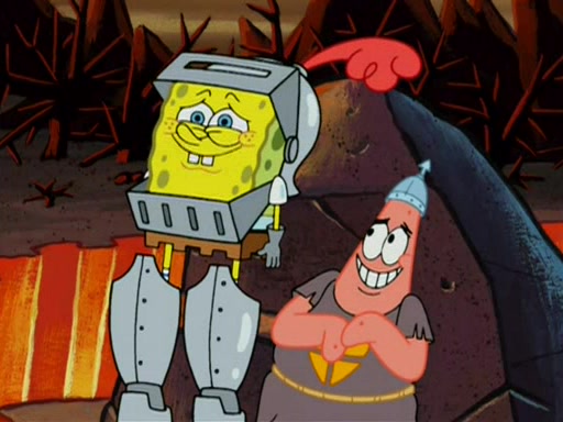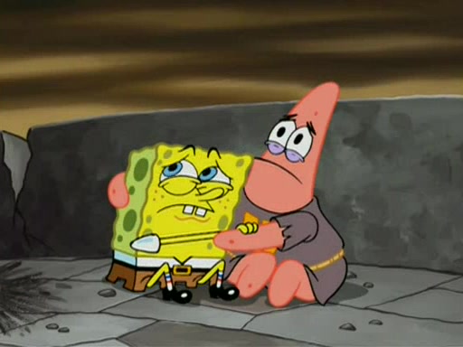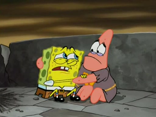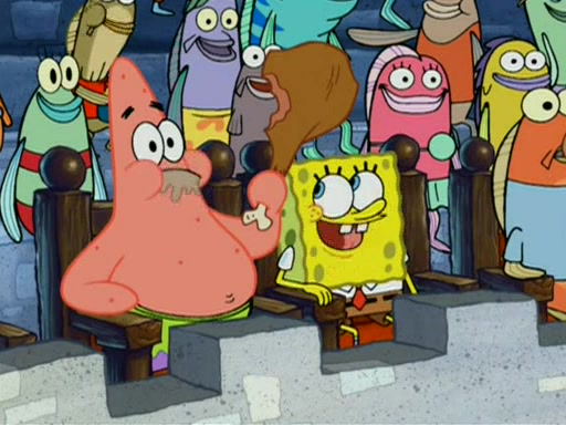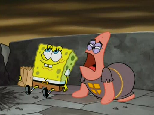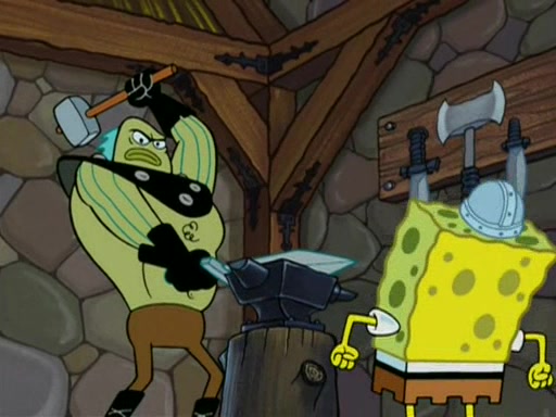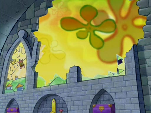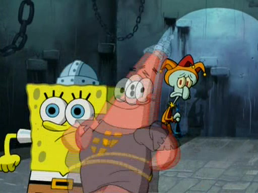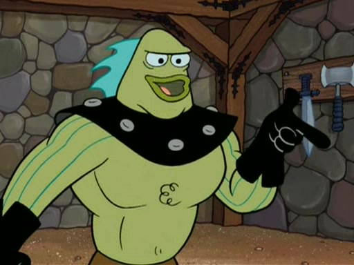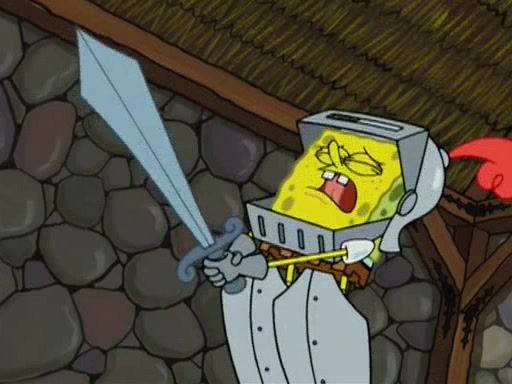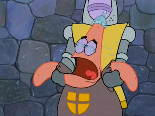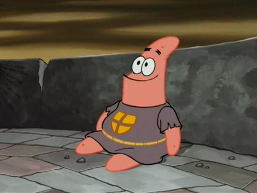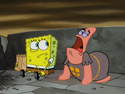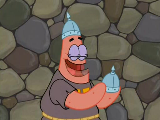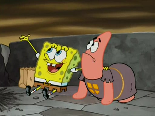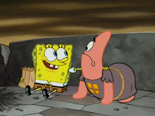 SpongeBob and Patrick are running up to the Medieval Moments stadium/restaurant to watch the jousting tournament. Upon their arrival, Morrie announces the tournament and asks for two volunteers to take part in the jousting, choosing SpongeBob and Patrick.