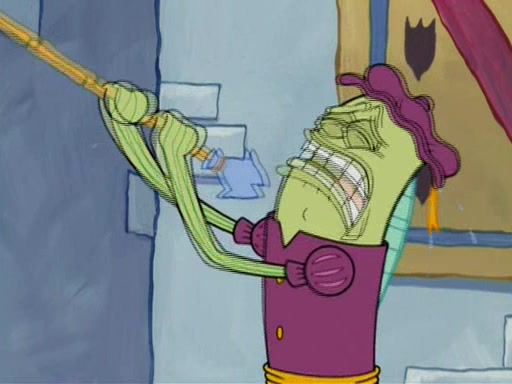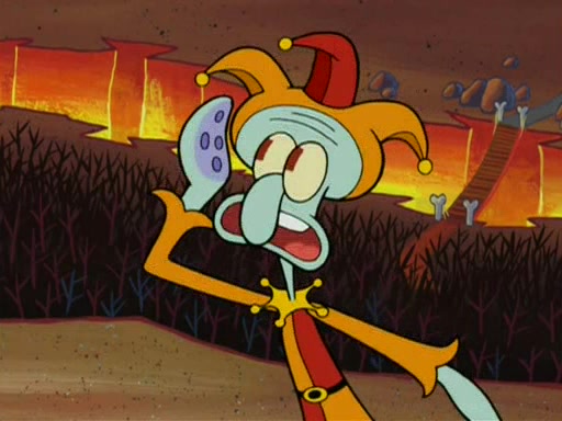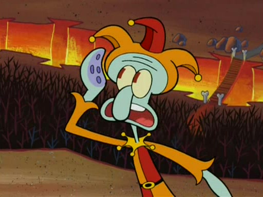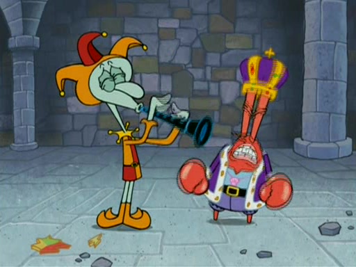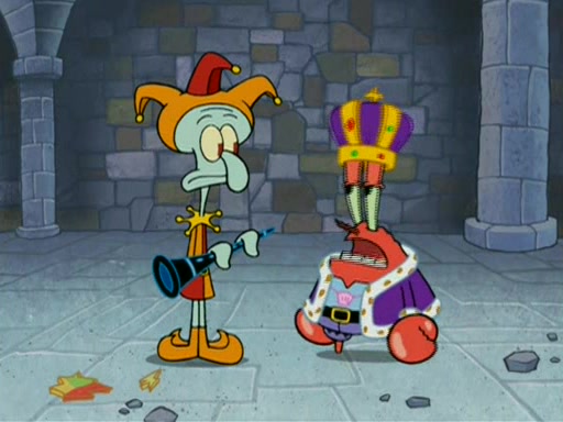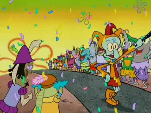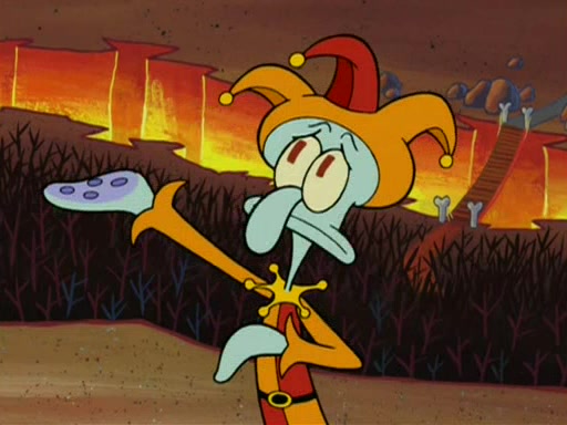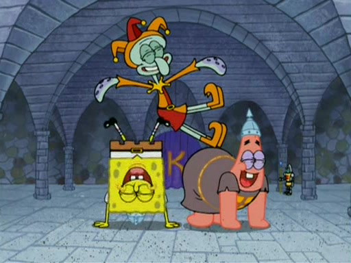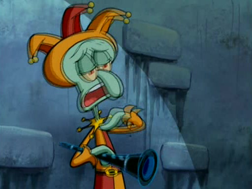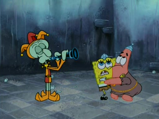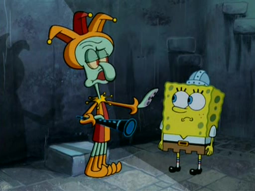 In the meantime, SpongeBob and Patrick still think this is part of the Medieval Moments tournament. Because Squidly cannot play the clarinet properly, he cursed his 7th great grandson, Squidward, to not being able to play the clarinet.