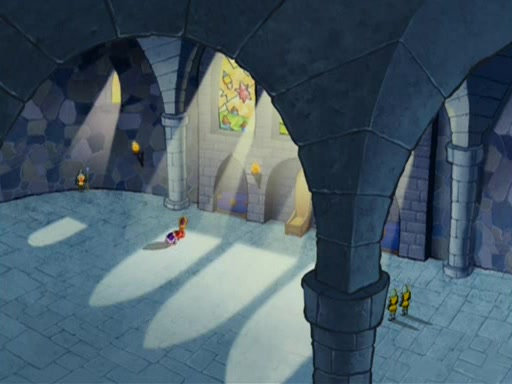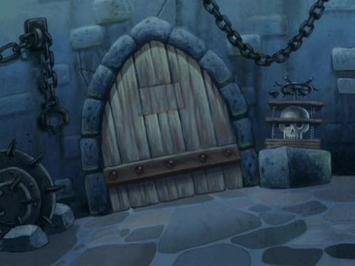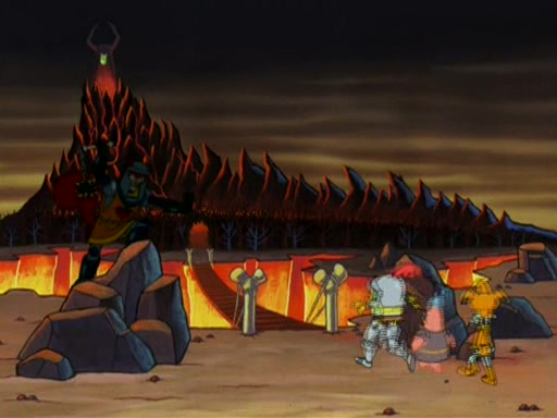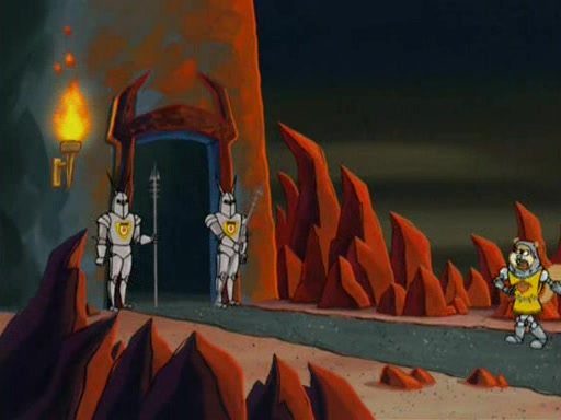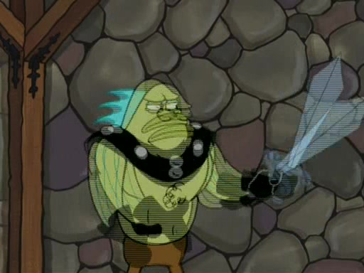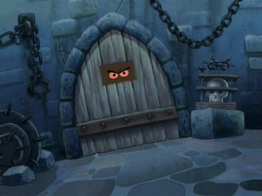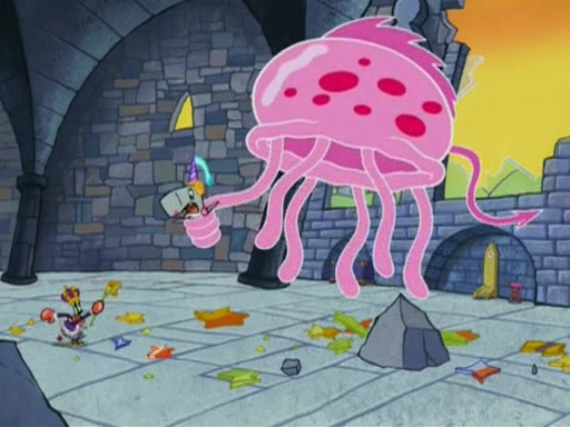 On the way, they stop off at the Blacksmith's shop to get some armor and weapons, only to find that all of the weapons are too heavy except for the jellyfish net. As they reach the bridge to Planktonamor's tower, they are attacked by a Dark Knight, who guards the bridge.