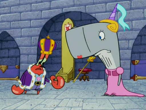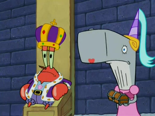 The dragon flies away, and King Krabs begs SpongeBob and company to rescue her, treating them like royalty, until seeing a section of the prophecy showing him kicking out SpongeBob and Patrick.