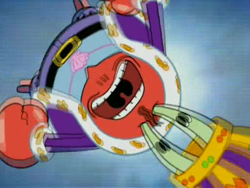 Under Planktonamor's orders, it kidnaps Pearl in order to kill her and effortlessly flicks King Krabs into the guillotine, smashing it just before SpongeBob can be executed.