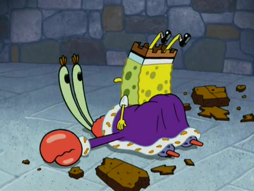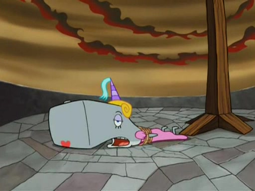 Back at the King's castle, Krabs receives a note saying that Princess Pearl will die if he does not hand over the village and his throne. SpongeBob, Patrick, Squidly and the Dark Knight make an incredibly long journey to the top of the tower, where SpongeBob distracts Planktonamor while Patrick, Squidly, and the Dark Knight try to rescue Pearl.