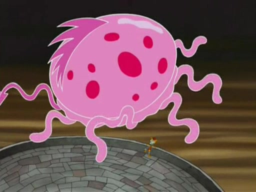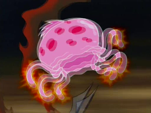 Just then, the Dragon Jellyfish smashes through the wall with the prophecy on it.